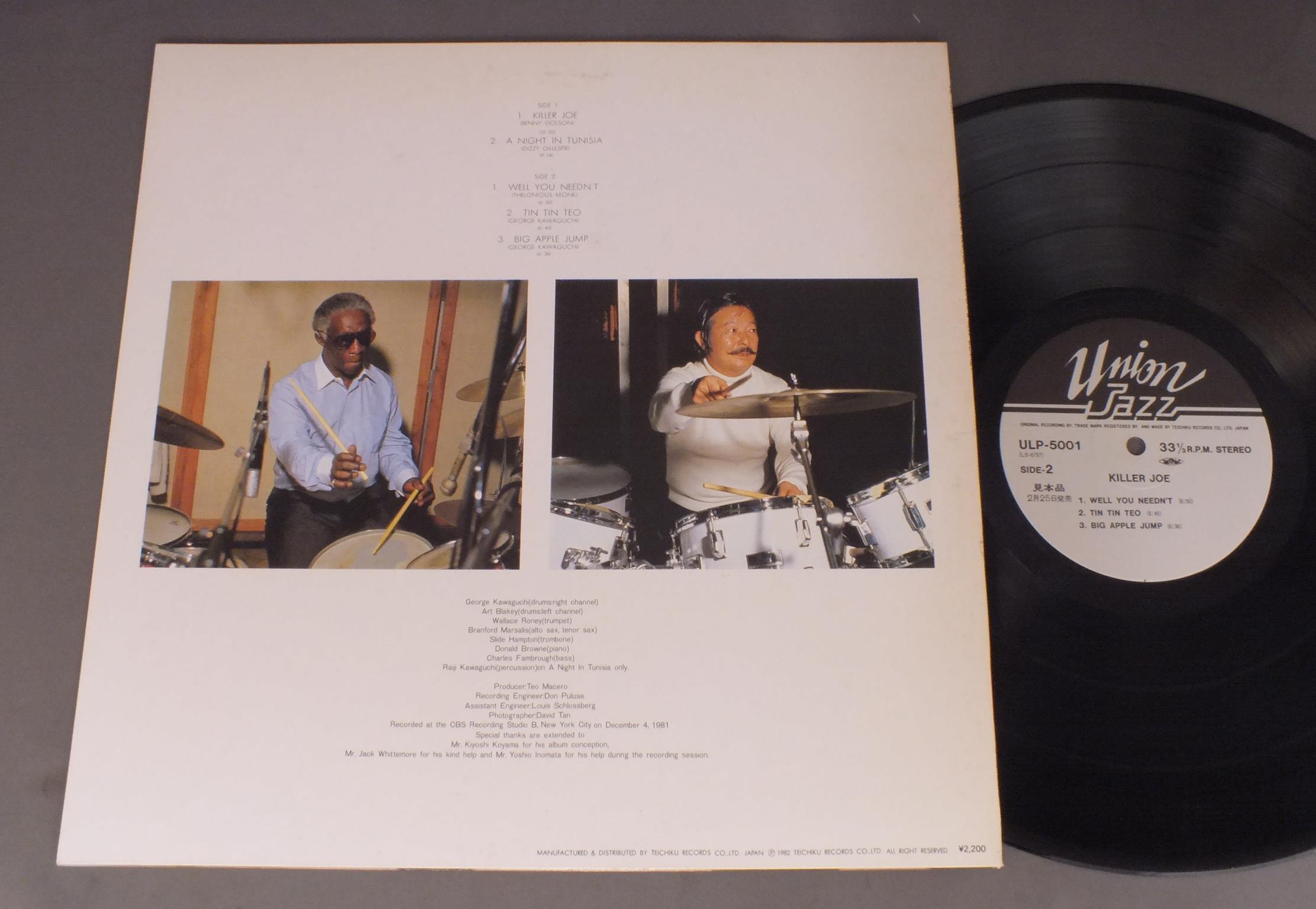 GEORGE KAWAGUCHI - ARTBLAKEYジョージ川口 - アート・ブレイキー/KILLER JOE ULP5001 製造国:日本盤 / Media:LP外観:EX盤の状態:EX+ 価格(税込):¥1,650(売約済) 送料 7inch:定形外郵便 360円~LP:定形外郵便 660円~送料は、注文の最終画面で確認頂けます。 > > GEORGE KAWAGUCHI - ARTBLAKEY/KILLER JOE 外観 (EX)特記事項:背スレ有り。外観EXの共通説明:ダメージが限定的。中古品としては保存状態がよい方。シミ、ヨゴレ、スレ 少し~軽度。 盤の状態 (EX+)特記事項:極薄いスリキズ・スレ少し。一見してきれいな状態です。盤EX+の共通説明:盤面の極薄いスリキズ、スレ少し程度 音に出そうなものは無いように見える(極軽微なソフトティック音は除く)。 その他:見本盤 Tweet それぞれの画像をクリックすると、大きい写真が見られます こちらの商品もお勧めです 1,650円 MODERN JAZZ QUARTETモダン・ジャズ・カルテット / CONCORDEコンコルド・デラックス 990円 RICHIE COLEリッチー・コール / ALIVE !アライヴ ! 1,210円 WYNTON KELLYウイントン・ケリー / KELLY BLUEケリー・ブルー 770円 BRUCE FORMANブルース・フォアマン / FIVER JOURNEYリヴァー・ジャーニー 440円 JONES BOYS / WHOLE TOWN`S TALKING ABOUT 1,210円 HERBIE MANNハービー・マン / MEMPHIS UNDERGROUNDメンフィス・アンダーグラウンド 770円 MUGGSY SPANIERマグシー・スパニア / MUGGSY SPANIERマグシー・スパニア 1,210円 LENNY WHITEレニー・ホワイト / STREAMLINEストリームライン