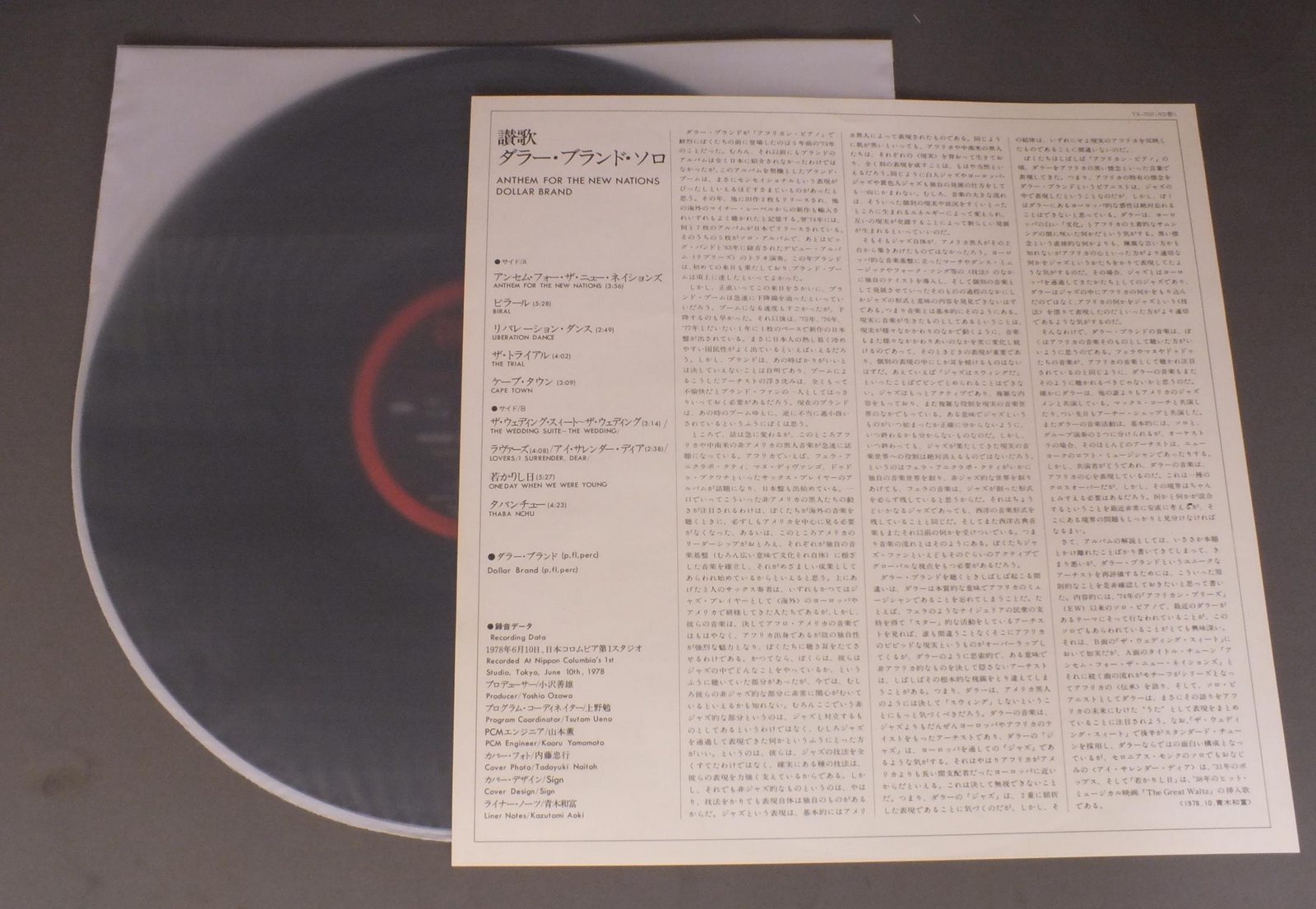 DOLLAR BRANDダラー・ブランド/ANTHEM FOR THE NEW NATIONS讃歌 YX7537ND 製造国:日本盤 / Media:LP外観:EX-盤の状態:EX+ 価格(税込):¥990(売約済) 送料 7inch:定形外郵便 360円~LP:定形外郵便 660円~送料は、注文の最終画面で確認頂けます。 > > DOLLAR BRAND/ANTHEM FOR THE NEW NATIONS 外観 (EX-)特記事項:ヘリスレ有り。表ジャケ背上付近にスレ。外観EX-の共通説明:ダメージ軽度~多少。 中古品としては普通の状態。シミ、ヨゴレ、スレなど軽く~多少。 盤の状態 (EX+)特記事項:極薄いスリキズ・スレ少し。一見してきれいな状態です。盤EX+の共通説明:盤面の極薄いスリキズ、スレ少し程度 音に出そうなものは無いように見える(極軽微なソフトティック音は除く)。 その他:見本盤 Tweet それぞれの画像をクリックすると、大きい写真が見られます こちらの商品もお勧めです 1,210円 BUCK CLAYTONバック・クレイトン・オールスターズ / HUCKLE-BUCK AND ROBBINS` NEST A BUCK CLAYTON JAM SESSIONバック・クレイトン・ジャム・セッション 880円 MODERN JAZZ QUARTETモダン・ジャズ・クワルテット / BASED ON BACH & THE BLUESバッハとブルースを基に 1,210円 JACK SHELDON & HIS WEST COAST FRIENDSジャック・シェルドンとヒズ・ウェスト・コースト・フレンズ / ANGEL WINGSエンジェル・ウィングス 990円 CHARLIE PARKERチャーリー・パーカー / CHARLIE PARKER ON SAVOY VOL4チャーリー・パーカー・オン・サヴォイVOL4 770円 ART TATUM AND HIS BANDアート・テイタム / FEATURING BIG JOETURNER JOE THOMAS EDMODHALL MARSHALL ROYALオール・スター・セッション 880円 SADAO WATANABE渡辺貞夫 / MY DEAR LIFEマイ・ディア・ライフ 770円 LAMBERT-HENDRICKS & ROSS / SING ALONG WITH BASIEシング・アロング・ウィズ・べイシー 770円 TEDDY WILSONテディ・ウイルソン / NOBLE ART OF TEDDY WILSONノーブル・アート・オブ・テディ・ウイルソン