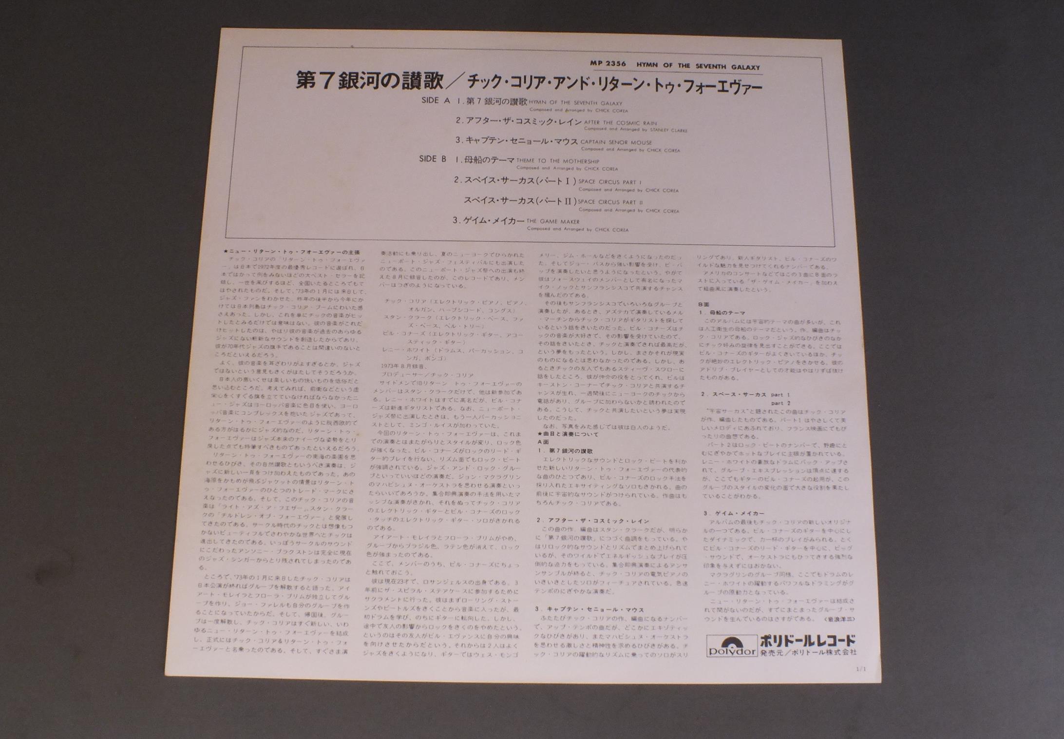 RETURN TO FOREVER FEATURING CHICK COREAチック・コリア・アンド・リターン・トゥ・フォーエヴァー/HYMN OF THE SEVENTH GALAXY第7銀河の讃歌 MP2356 製造国:日本盤 / Media:LP外観:VG+盤の状態:EX 価格(税込):¥660(売約済) 送料 7inch:定形外郵便 360円~LP:定形外郵便 660円~送料は、注文の最終画面で確認頂けます。 > > RETURN TO FOREVER FEATURING CHICK COREA/HYMN OF THE SEVENTH GALAXY 外観 (VG+)特記事項:ヘリスレ有り。表ジャケに剥がれ。外観VG+の共通説明:ダメージやや有り。シミ、ヨゴレ、スレなど多少~やや多め。 盤の状態 (EX)特記事項:薄いスリキズ・スレ軽くある感じ。プチ出そうなところは少しだけで、ほとんどが軽微なものの様子です。盤EXの共通説明:盤面のスリキズが薄いものが少し~軽度 音に出そうなものは無いように見える(軽微なソフトティック音は除く)。 Tweet それぞれの画像をクリックすると、大きい写真が見られます こちらの商品もお勧めです 770円 PACO DE LUCIA / CASTRO MARIN 1,320円 SPECIAL EFXスペシャルエフェクス / SPECIAL EFXスペシャルエフェクス 770円 LARRY CARLTONラリー・カールトン / SINGING/PLAYINGシンギング・プレイング 1,650円 NATIVE SONネイティブ・サン / GUMBOガンボ 770円 JEAN-LUC PONTYジャン・リュック・ホンティ / OPEN MINDオープン・マインド 770円 CRUSADERSクルセイダーズ / STANDING TALLスタンディング・トール 1,210円 SPYRO GYRAスパイロ・ジャイラ / FREE TIMEフリータイム 880円 CLUSADERSクルセイダーズ / RHAPSODY AND BLUESラプソディー&ブルース