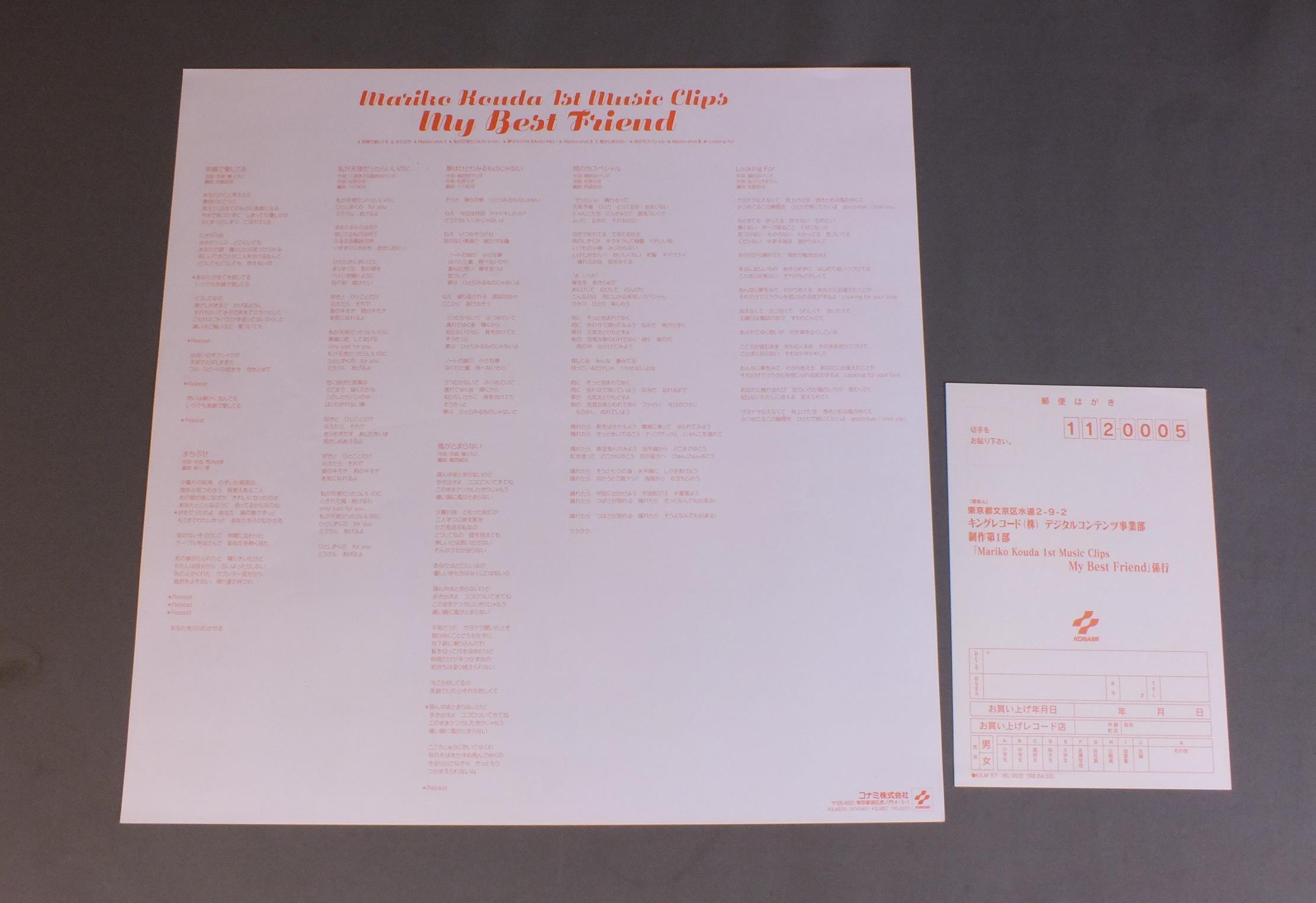 MARIKO KOUDA國府田マリ子/MY BEST FRIENDS 1st MUSIC CLIPS KILM57 製造国:日本盤 / Media:LD外観:EX+盤の状態:EX+ 価格(税込):¥550 送料 7inch:定形外郵便 360円~LP:定形外郵便 660円~送料は、注文の最終画面で確認頂けます。 > > MARIKO KOUDA/MY BEST FRIENDS 1st MUSIC CLIPS 外観 (EX+)特記事項:特記なし。外観EX+の共通説明:中古としては美品、一見してきれいでダメージが軽微。シミ、ヨゴレ、スレ有っても僅か~少し。 盤の状態 (EX+)特記事項:極薄いスリキズ・スレ少し。一見してきれいな状態です。盤EX+の共通説明:盤面の極薄いスリキズ、スレ少し程度 音に出そうなものは無いように見える(極軽微なソフトティック音は除く)。 Tweet それぞれの画像をクリックすると、大きい写真が見られます こちらの商品もお勧めです