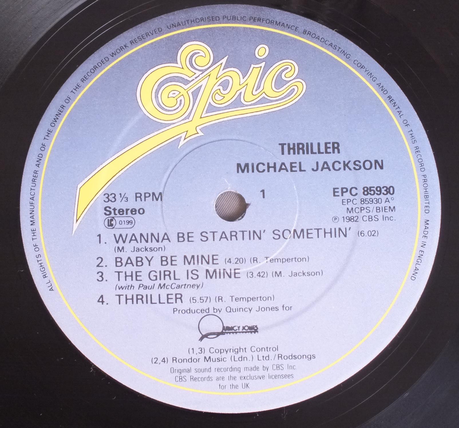 MICHAEL JACKSON/THRILLER EPC85930 製造国:英国盤 / Media:LPMatrix:A1 B2外観:EX盤の状態:EX 価格(税込):¥4,400(売約済) 送料 7inch:定形外郵便 360円~LP:定形外郵便 660円~送料は、注文の最終画面で確認頂けます。 > > MICHAEL JACKSON/THRILLER 外観 (EX)特記事項:全体的にスレやスリキズ、よごれ等は薄い感じ。きれいな状態です。オリジナルインナ−に多少ヨレやよごれ有りますが、抜けは無いです。外観EXの共通説明:ダメージが限定的。中古品としては保存状態がよい方。シミ、ヨゴレ、スレ 少し~軽度。 盤の状態 (EX)特記事項:薄いスリキズ・スレ軽くある感じ。ほとんどが軽微なものの様子です。曲間など、静かなところを中心に聴いて見ましたが、チリプチ軽度で音もしっかり鳴っていました。盤EXの共通説明:盤面のスリキズが薄いものが少し~軽度 音に出そうなものは無いように見える(軽微なソフトティック音は除く)。 Tweet それぞれの画像をクリックすると、大きい写真が見られます こちらの商品もお勧めです 7,700円 EQUALS / SENSATIONAL EQUALS 11,000円 IKE AND TINA TURNER / LIVE THE IKE AND TINA TURNER SHOW 4,950円 ARTHUR CONLEY / SHAKE RATTLE AND ROLL MONO 4,400円 PHIL SPECTOR / CHRISTMAS ALBUMCHRISTMAS ALBUM APPLE盤 6,050円 BILLY PRESTON / APPLE OF THEIR EYE 7,150円 SUPREMES / SING RODGERS AND HART