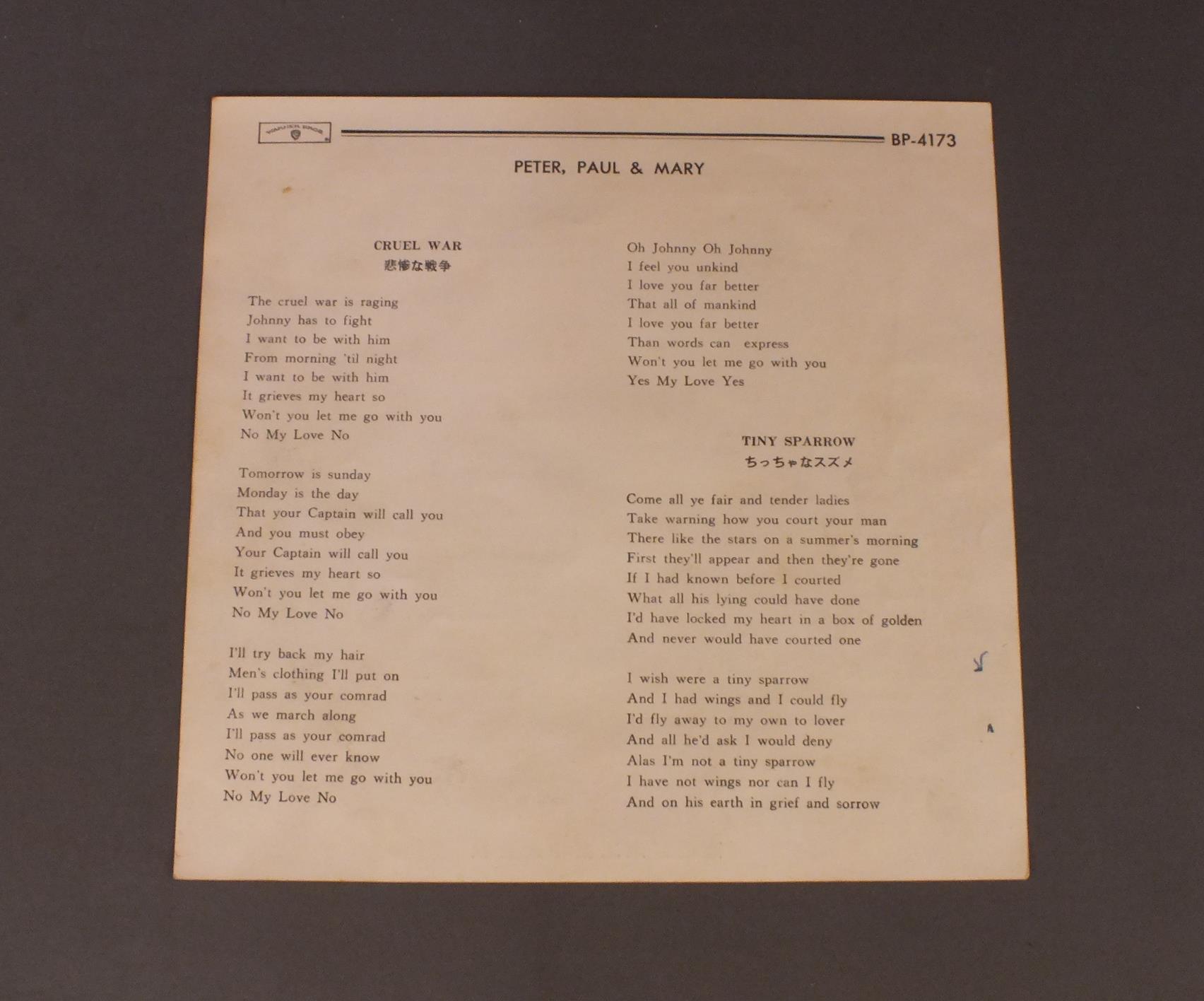 PETER. PAUL AND MARYピーター・ポール・アンド・マリー/CRUEL WAR EP悲惨な戦争 EP BP4173 製造国:日本盤 / Media:7inch外観:EX-盤の状態:EX 価格(税込):¥330 送料 7inch:定形外郵便 360円~LP:定形外郵便 660円~送料は、注文の最終画面で確認頂けます。 > > PETER. PAUL AND MARY/CRUEL WAR EP 外観 (EX-)特記事項:シミ有り外観EX-の共通説明:ダメージ軽度~多少。 中古品としては普通の状態。シミ、ヨゴレ、スレなど軽く~多少。 盤の状態 (EX)特記事項:薄いスリキズ・スレ軽くある感じ。軽微なものの様子です。盤EXの共通説明:盤面のスリキズが薄いものが少し~軽度 音に出そうなものは無いように見える(軽微なソフトティック音は除く)。 Tweet それぞれの画像をクリックすると、大きい写真が見られます こちらの商品もお勧めです 990円 BANJO BARONSバンジョー・バロンズ / IT`S A FOLK FOLK FOLK FOLK WORLDバンジョー. フォーク・ソングの世界 ペラジャケ 990円 KITTY WELLSキティ・ウェルズ / DUST ON THE BIBLEダスト・オン・ザ・バイブル 1,320円 JOAN BAEZジョーン・バエズ / GULF WINDSガルフ・ウィンズ 770円 NITTY GRITTY DIRT BANDニッティー・グリッティー・ダート・バンド / STARS&STRIPES FOREVER星条旗よ永遠なれ! 660円 JOAN BAEZジョーン・バエズ / JOAN自由の女神 990円 PETER PAUL & MARYピーター・ポール&マリー / IN CONCERT 770円 PETER PAUL&MARYピーター・ポール&マリー / LATE AGAINレイト・アゲイン 770円 NITTY GRITTY DIRT BANDニッティー・グリッティー・ダート・バンド / UNCLE CHARLIE & HIS DOG TEDDYアンクル・チャーリーと愛犬テディー