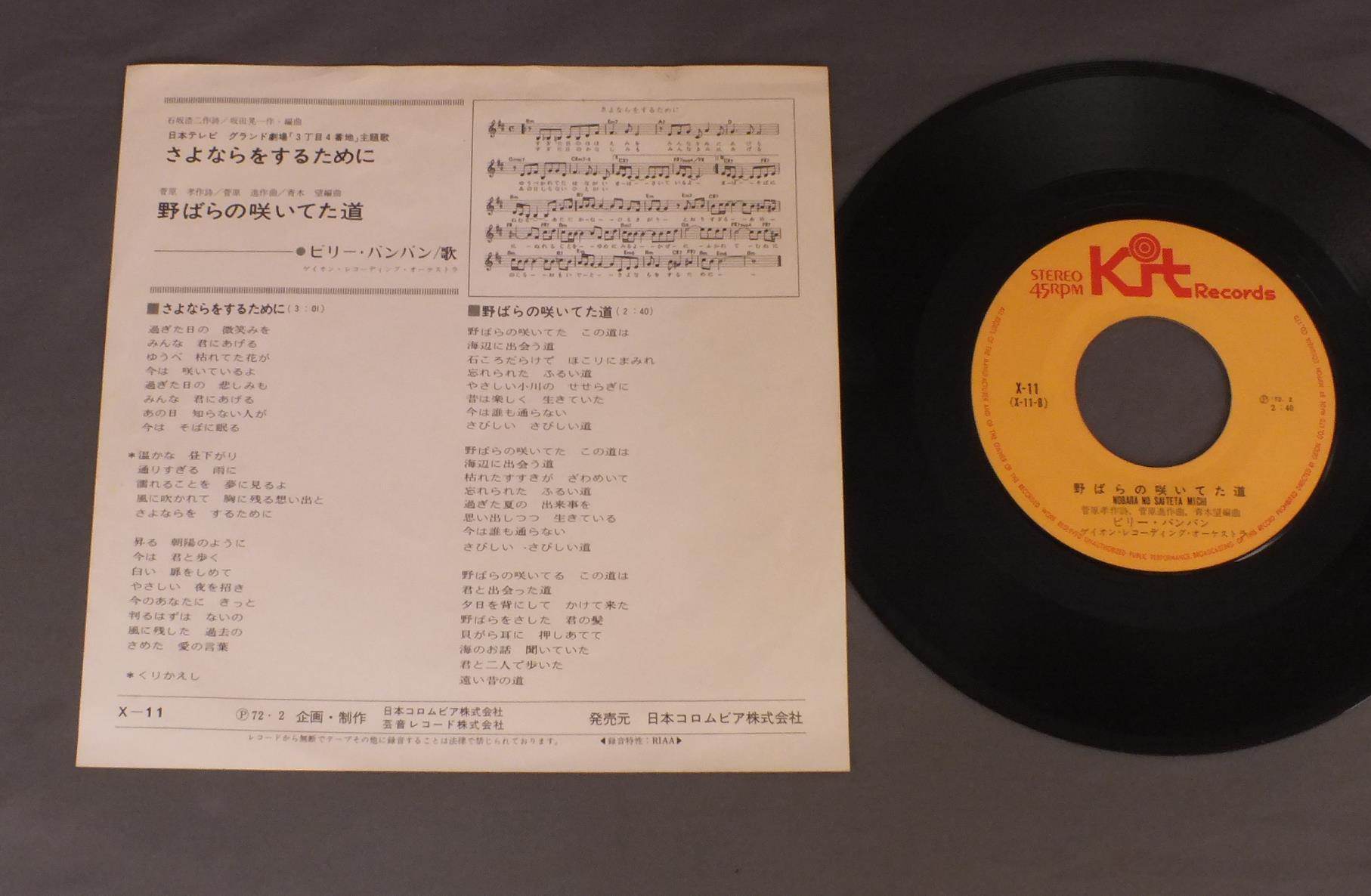 BILLY BANBANビリー・バンバン/SAYONARA O SURU TAMENIさよならをするために X11 製造国:日本盤 / Media:7inch外観:EX-盤の状態:EX- 価格(税込):¥330 送料 7inch:定形外郵便 360円~LP:定形外郵便 660円~送料は、注文の最終画面で確認頂けます。 > > BILLY BANBAN/SAYONARA O SURU TAMENI 外観 (EX-)特記事項:ヨレ多少有り。外観EX-の共通説明:ダメージ軽度~多少。 中古品としては普通の状態。シミ、ヨゴレ、スレなど軽く~多少。 盤の状態 (EX-)特記事項:薄いスリキズ・細かい表面スレ軽くある感じ。全体的には殆どが軽微なものの様子です。盤EX-の共通説明:盤面のスリキズが多少有り。音に出そうなものは殆ど無いように見える~さほど気にならないぐらいの軽いプチ数カ所程度。 Tweet それぞれの画像をクリックすると、大きい写真が見られます こちらの商品もお勧めです 1,320円 SHIGERU IZUMIYA泉谷しげる / 3rd ALBUM第三集 地球はお祭りさわぎ 880円 SHIGERU IZUMIYA泉谷しげる / LIVE IZUMIYAライブ!!泉谷 王様たちの夜 1,320円 JIRO`Sジローズ / FOR THE LOVE & YOU JIRO`S 1ジローズ登場 戦争を知らない子供たち 赤盤 1,210円 KIMIHIKO SATO佐藤公彦 / KEME VOL.11st ALBUM 午後のふれあい 1,320円 ITSUTSUNO AKAI FUSEN五つの赤い風船 / FOLK ALBUM VOL1フォーク・アルバム第1集 990円 TAKASHI NISHIOKA西岡たかし / SOUPスープ 2,200円 TAKUROU YOSHIDA吉田拓郎 / ON STAGEオン・ステージ 880円 N.S.P.ニュー・サディスティック・ピンク / N.S.P. 3N.S.P. ? ひとやすみ