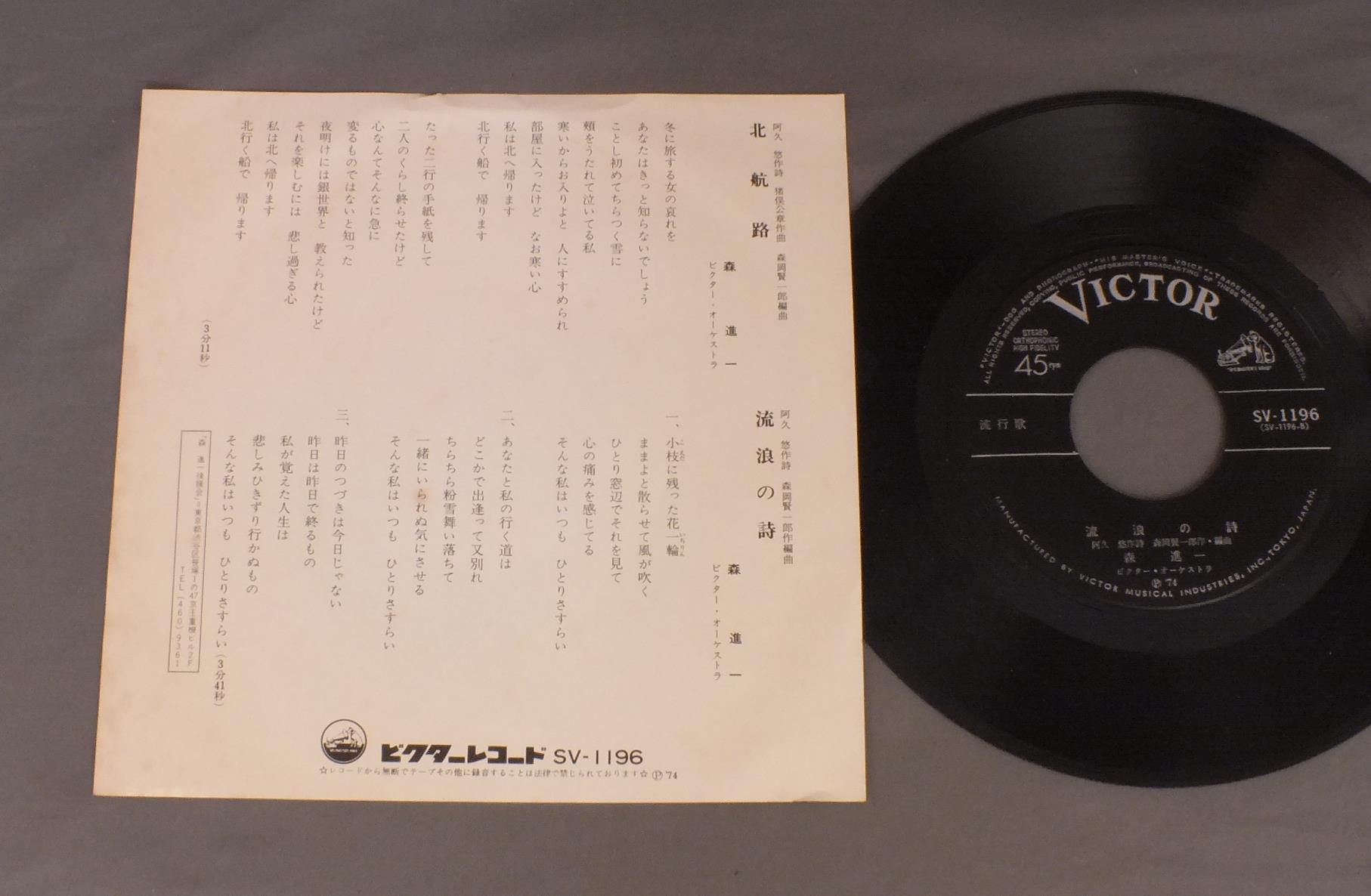 SHINICHI MORI森進一/KITAKOURO北航路 SV1196 製造国:日本盤 / Media:7inch外観:EX盤の状態:EX 価格(税込):¥330 送料 7inch:定形外郵便 360円~LP:定形外郵便 660円~送料は、注文の最終画面で確認頂けます。 > > SHINICHI MORI/KITAKOURO 外観 (EX)特記事項:裏ジャケ側にシミ外観EXの共通説明:ダメージが限定的。中古品としては保存状態がよい方。シミ、ヨゴレ、スレ 少し~軽度。 盤の状態 (EX)特記事項:薄いスリキズ・スレ軽くある感じ。軽微なものの様子です。盤EXの共通説明:盤面のスリキズが薄いものが少し~軽度 音に出そうなものは無いように見える(軽微なソフトティック音は除く)。 Tweet それぞれの画像をクリックすると、大きい写真が見られます こちらの商品もお勧めです 990円 YOSHIO TABATA田端義夫 / SHIMA SODACHI島育ち 880円 上原敏 / ポリドール(SP原盤)シリーズ -第6集- 哀愁の抒情・マドロス歌謡 660円 MISAO MATSUBARA松原操 / COLLECTION VOL2第ニ集-浮草の唄 770円 MIDORI SASA笹みどり / BEST HITS下町育ち 笹みどりヒット集 880円 TOSHIRO OKAMOTO岡本敦朗 / SHIROI HANA NO SAKUKORO白い花の咲く頃 1,210円 HACHIRO KASUGA春日八郎 / HACHIRO KASUGA HIT ALBUM春日八郎 -魅力のすべて- 880円 KEN TSUMURA津村謙 / KAYO ALBUM津村謙歌謡アルバム 660円 AKIRA MATSUDAIRA松平晃 / CIRCUS SONG懐かしの針音 松平晃 サーカスの唄