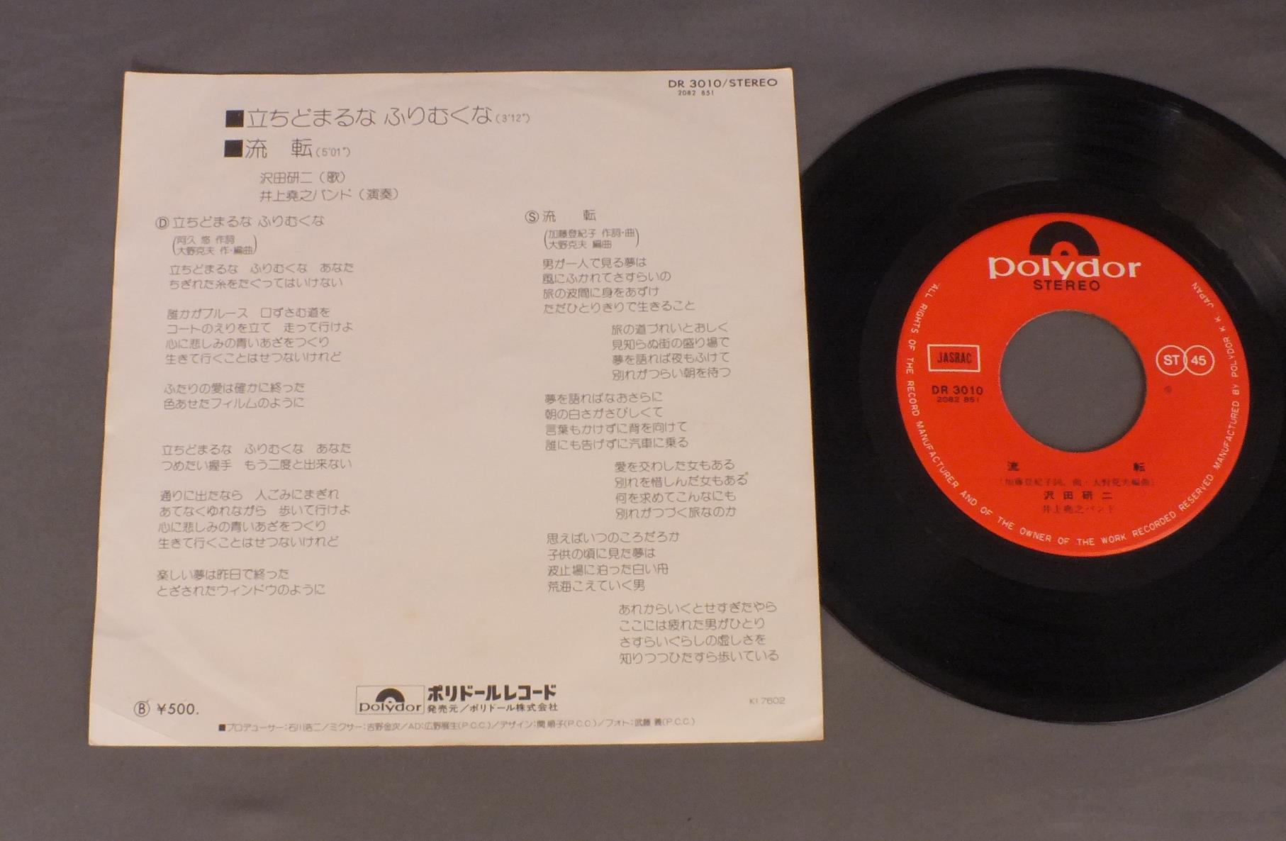 KENJI SAWADA沢田研二/TACHIDOMARUNA FURIKAERUNA立ちどまるなふりむくな DR3010 製造国:日本盤 / Media:7inch外観:EX盤の状態:EX- 価格(税込):¥330 送料 7inch:定形外郵便 360円~LP:定形外郵便 660円~送料は、注文の最終画面で確認頂けます。 > > KENJI SAWADA/TACHIDOMARUNA FURIKAERUNA 外観 (EX)特記事項:ヨレ有り外観EXの共通説明:ダメージが限定的。中古品としては保存状態がよい方。シミ、ヨゴレ、スレ 少し~軽度。 盤の状態 (EX-)特記事項:薄いスリキズ・細かい表面スレ軽くある感じ。全体的には殆どが軽微なものの様子です。盤EX-の共通説明:盤面のスリキズが多少有り。音に出そうなものは殆ど無いように見える~さほど気にならないぐらいの軽いプチ数カ所程度。 Tweet それぞれの画像をクリックすると、大きい写真が見られます こちらの商品もお勧めです 1,210円 TAKURO YOSHIDAよしだたくろう / HELLO !元気です。 770円 NOA HORIGUCHI堀ロノア / SHOKAN-BAKO書簡箱 660円 GO NAGABUCHI長渕 剛 / GYAKURYU逆流 660円 MAYUMI ITSUWA五輪真弓 / L`ETRANGERえとらんぜ 990円 TADUMI TOYOSHIUMA豊島たづみ / STILL NIGHT 880円 TAKURO YOSHIDA吉田拓郎 / ROLLING 30 + FREE 7inchローリング30+おまけ7インチ 770円 EMU絵夢 / 2nd ALBUMII 880円 YUMI MATSUTOYA松任谷由実 / RE INCARNATIONリ・インカーネイション