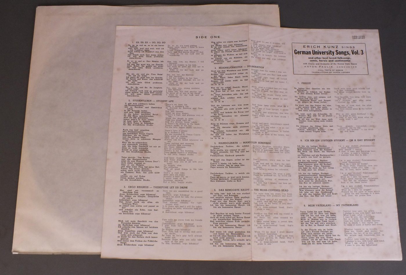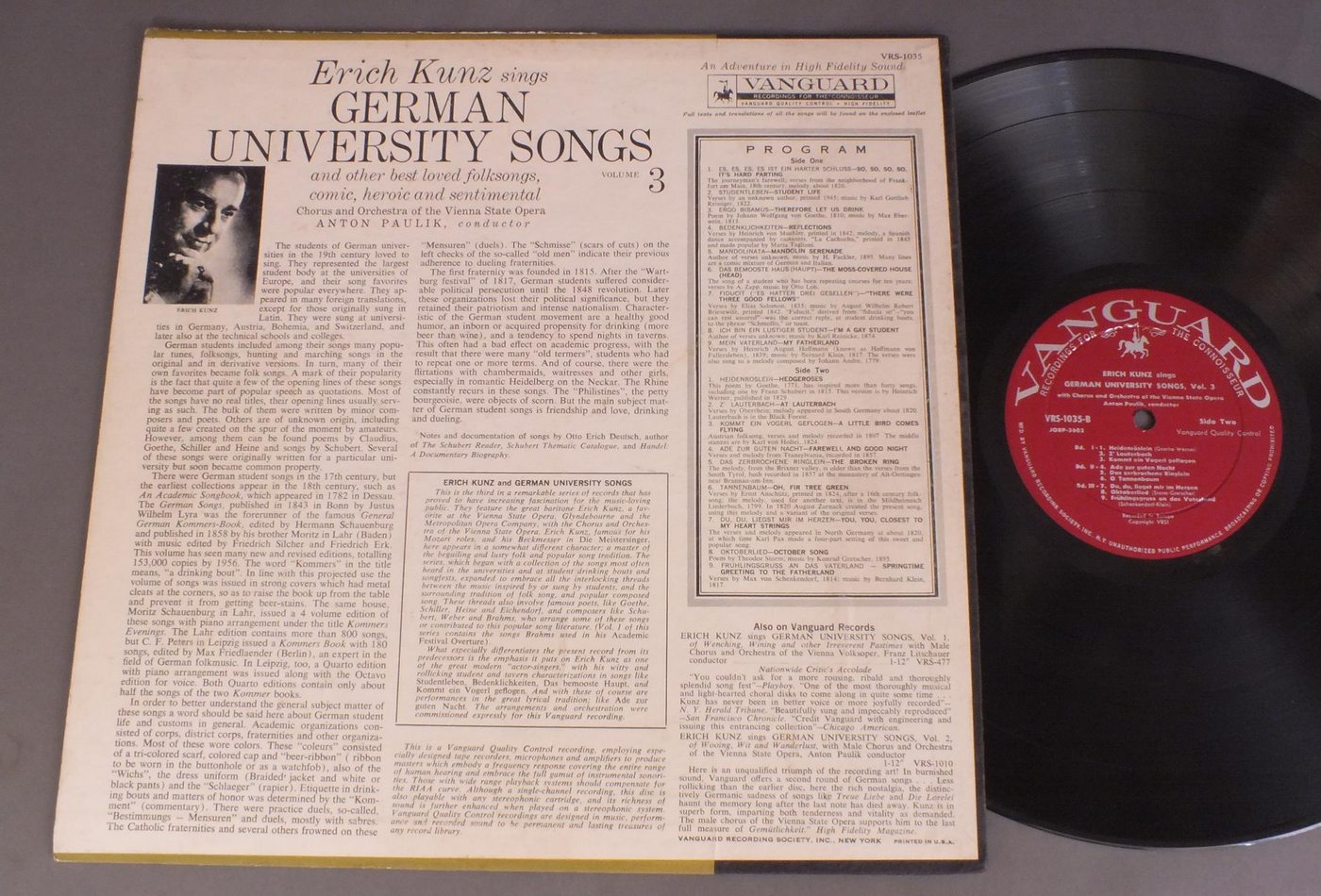 ERICH KUNZ/GERMAN UNIVERSITY SONGS VOL.3 VRS1035 製造国:米国盤 / Media:LP外観:VG+盤の状態:EX- 価格(税込):¥550(売約済) 送料 7inch:定形外郵便 360円~LP:定形外郵便 660円~送料は、注文の最終画面で確認頂けます。 > > ERICH KUNZ/GERMAN UNIVERSITY SONGS VOL.3 外観 (VG+)特記事項:上ヘリ割れ有り。カード付き。しみやや有り。外観VG+の共通説明:ダメージやや有り。シミ、ヨゴレ、スレなど多少~やや多め。 盤の状態 (EX-)特記事項:薄いスリキズ、スレ多少有りますが、軽微なものが中心の様子。チリは軽度、プチは殆ど無いか1〜2箇所の軽プチぐらいでしょう。盤EX-の共通説明:盤面のスリキズが多少有り。音に出そうなものは殆ど無いように見える~さほど気にならないぐらいの軽いプチ数カ所程度。 Tweet それぞれの画像をクリックすると、大きい写真が見られます こちらの商品もお勧めです 990円 JONEL PERLEA / OPERA BALLETS-GOUNOD FAUST etc 1,650円 SCHREIER / BACH KANTATEN BWV210 & 203 2,420円 CLUYTENS-SCHWARZKOPF etc. / OFFENBACH - HOFFMANNS ERZAHLUNGEN 1,980円 ELLY AMELING- COLLEGIUM AUREUM / BACH - WELTLICHE KANTATEN 2,860円 SCHWARZKOPF / ELISABETH SCHWARZKOPF 2LP SET 2,750円 SEEFRIED-FRICSAY ETC / NOZZE DI FIGARO 1,210円 JOHN ELIOT GARDINER / HAENDEL - DIXIT DOMINUS 990円 MARIA CALLAS-SCHWARZKOPF etc / GREAT HITS FROM GRAND OPERA VOL1