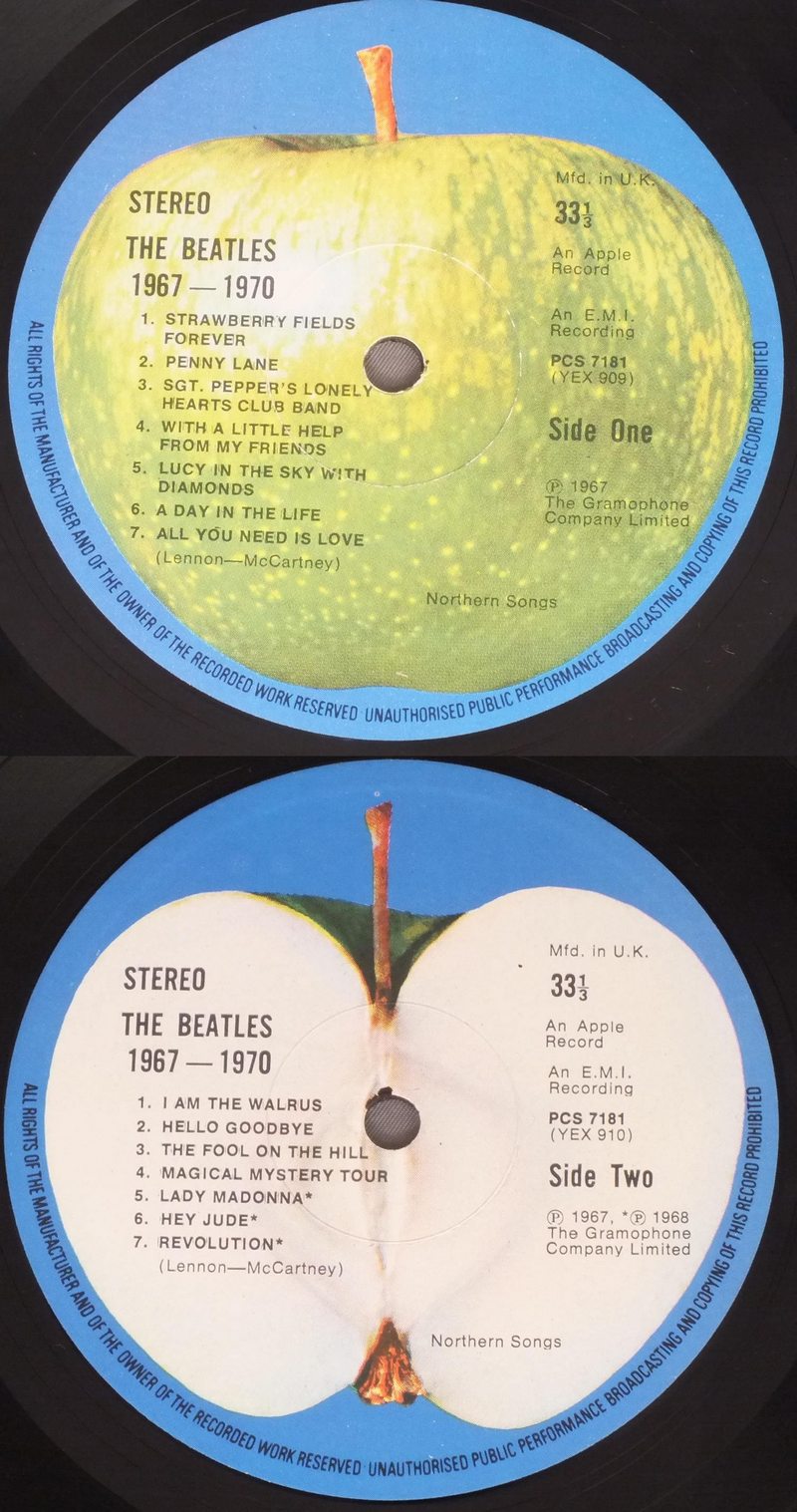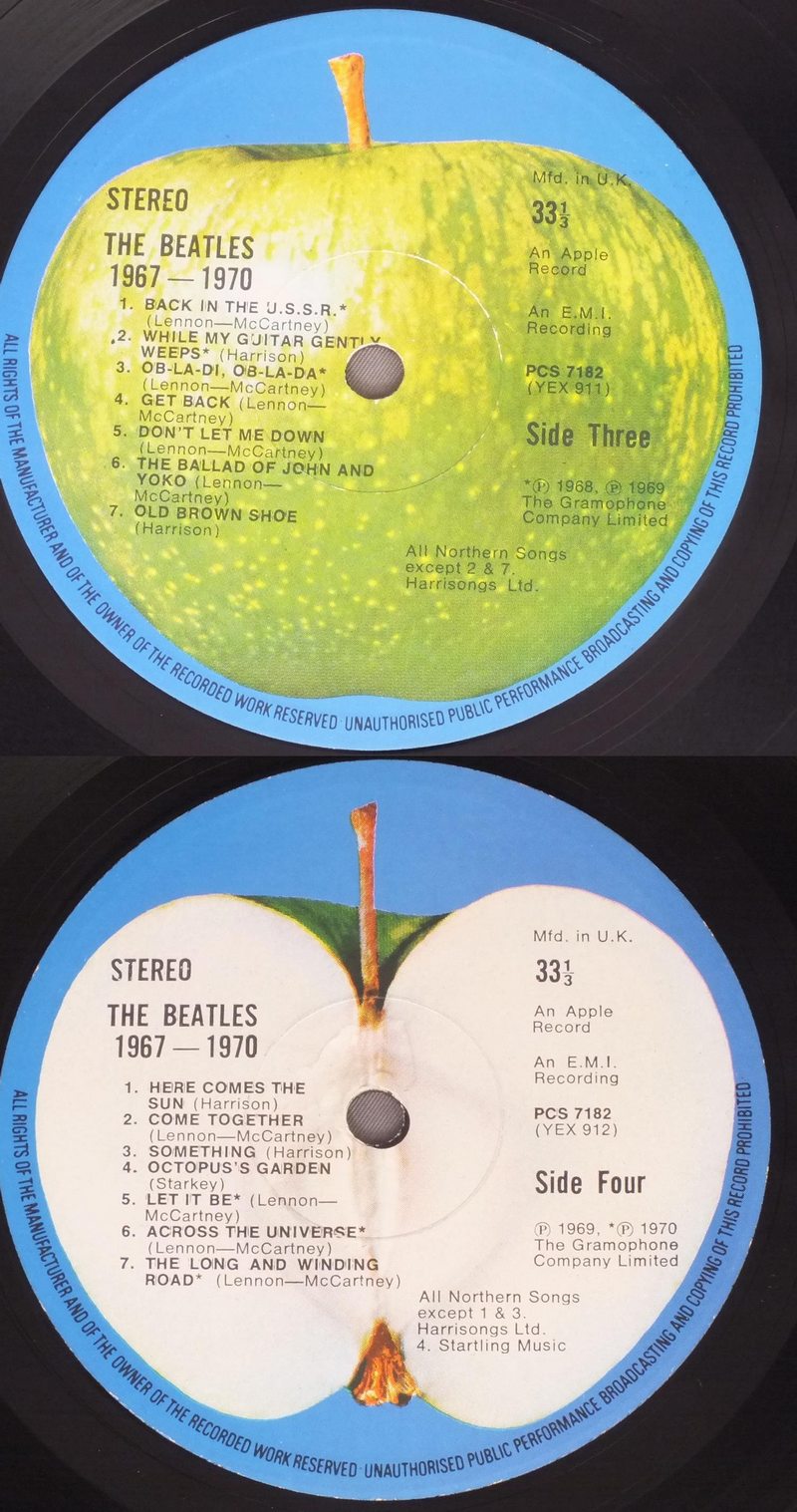 BEATLES/1967 - 1970 PCS7181 製造国:英国盤 / Media:LPMatrix: -1 -3 -3 -1外観:EX+盤の状態:EX 価格(税込):¥11,000(売約済) 送料 7inch:定形外郵便 360円~LP:定形外郵便 660円~送料は、注文の最終画面で確認頂けます。 > > BEATLES/1967 - 1970 外観 (EX+)特記事項:表裏ジャケが厚手のコーティング仕様の初期タイプ。全体的にコーティングのヨレシワもあまり無い状態。見開きもよごれやスレ少なく全体的に白い感じが残っています。オリジナルインナーは2枚ともレコード取り出し口の両角がカットされた初期タイプ。きれいな状態で抜けも無いです。(2枚目用の底にスレは有りますが、抜けてはいないです。)外観EX+の共通説明:中古としては美品、一見してきれいでダメージが軽微。シミ、ヨゴレ、スレ有っても僅か~少し。 盤の状態 (EX)特記事項:薄いスリキズ・スレ軽くある感じ。ほとんどが軽微なものの様子です。曲間など、静かなところを中心に聴いて見ましたが、チリプチ軽度で音もしっかり鳴っていました。盤EXの共通説明:盤面のスリキズが薄いものが少し~軽度 音に出そうなものは無いように見える(軽微なソフトティック音は除く)。 Tweet それぞれの画像をクリックすると、大きい写真が見られます こちらの商品もお勧めです 4,950円 JOHN & YOKO - PLASTIC ONO BANDF / SOME TIME IN NEW YORK CITY 5,500円 GEORGE HARRISON / THIRTY THREE & 1/3 5,500円 BEATLES / AT THE HOLLYWOOD BOWL 5,500円 GEORGE HARRISON / LIVING IN THE MATERIAL WORLD 5,500円 JOHN LENNON / SHAVED FISH