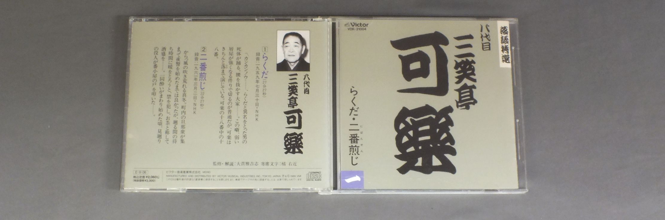 八代目 三笑亭可楽/らくだ・二番煎じ VDR21004 製造国:日本盤 / Media:CD外観:EX盤の状態:EX+ 価格(税込):¥1,100 送料 7inch:定形外郵便 360円~LP:定形外郵便 660円~送料は、注文の最終画面で確認頂けます。 レコード検索 > 全てのジャンル > / 外観 (EX)特記事項:ヨレ、スレ、シミなど小 - 軽度です。外観EXの共通説明:ダメージが限定的。中古品としては保存状態がよい方。シミ、ヨゴレ、スレ 少し~軽度。 盤の状態 (EX+)特記事項:微細なスリキズが少々。きれいな感じの盤面です。盤EX+の共通説明:盤面の極薄いスリキズ、スレ少し程度 音に出そうなものは無いように見える(極軽微なソフトティック音は除く)。 その他:在庫なし Tweet それぞれの画像をクリックすると、大きい写真が見られます こちらの商品もお勧めです