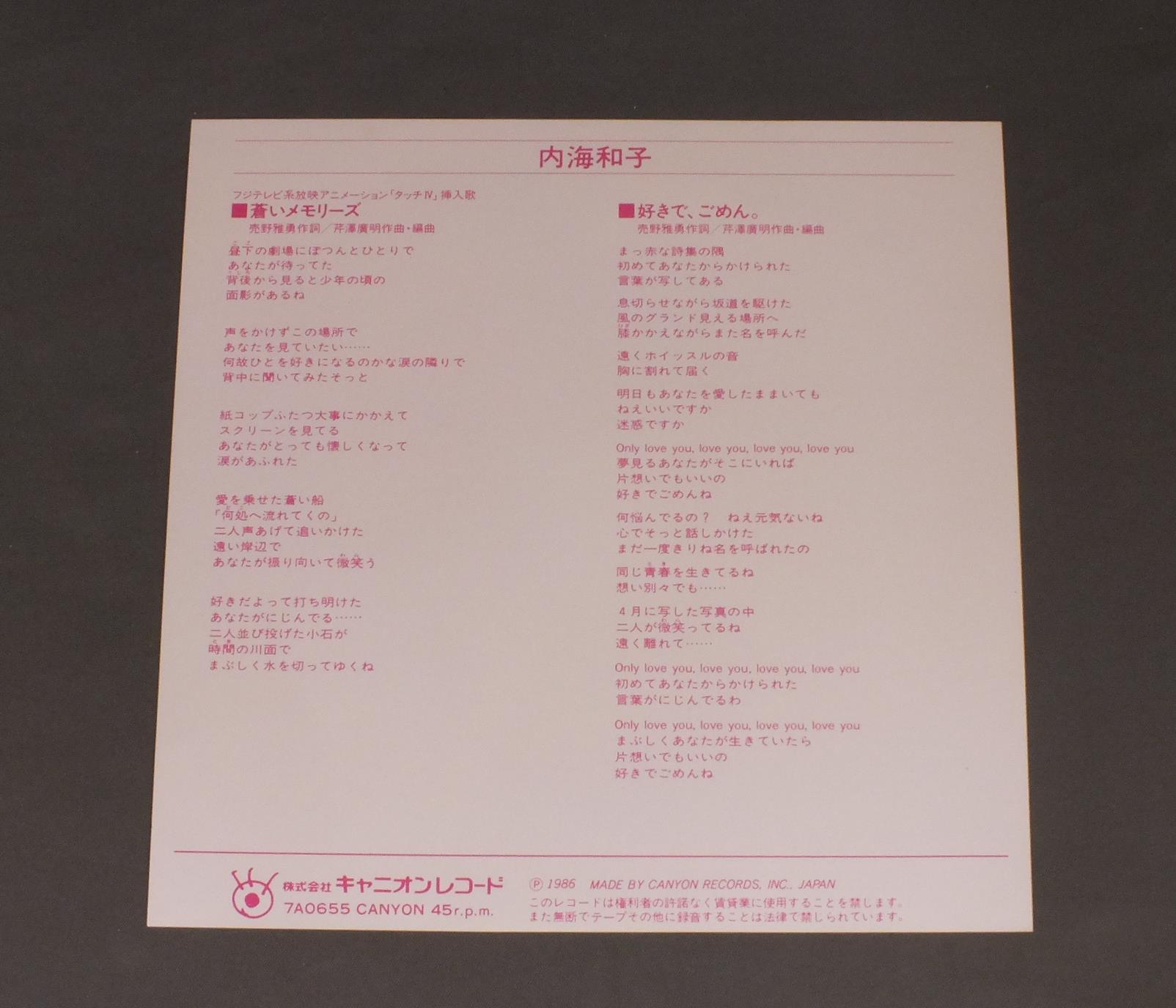 KAZUKO UTSUMI内海和子/ANIME TATCH IVアニメ タッチIV 主題歌 蒼いメモリーズ 7A0655 製造国:日本盤 / Media:7inch外観:EX+盤の状態:EX+ 価格(税込):¥495 送料 7inch:定形外郵便 360円~LP:定形外郵便 660円~送料は、注文の最終画面で確認頂けます。 レコード検索 > CLASSIC CHAMBER > KAZUKO UTSUMI/ANIME TATCH IV 外観 (EX+)特記事項:特記なし。外観EX+の共通説明:中古としては美品、一見してきれいでダメージが軽微。シミ、ヨゴレ、スレ有っても僅か~少し。 盤の状態 (EX+)特記事項:極薄いスリキズ・スレ少し。一見してきれいな状態です。盤EX+の共通説明:盤面の極薄いスリキズ、スレ少し程度 音に出そうなものは無いように見える(極軽微なソフトティック音は除く)。 Tweet それぞれの画像をクリックすると、大きい写真が見られます こちらの商品もお勧めです 1,210円 ANIME AONI PPRODUCTION青二プロ / VOICE VOICE VOICE10周年記念フェスティバル・ライヴ 990円 SHOTARO ISHINOMORI石ノ森章太郎 / CYBORG 009サイボーグ009 1,320円 ANIME GATCHAMANアニメ 科学忍者隊 ガッチャマン / GATCHAMAN 2 VOL2ガッチャマン? VOL2 1,650円 ANIME SYBORG 009アニメ サイボーグ009 / TV ORIGINAL SOUNDTRACKテレビ・オリジナル・サウンドトラック 1,320円 ANIME SIX GOD COMBINATION MARSアニメ 六神合体ゴッドマーズ / MARS AND MARG STORY + POSTERドラマ編マーズ&マーグ物語 770円 AMI-LAST CALL亜美・ラストコール / CREAM LEMON IMAGE ALBUMクリームレモン 770円 ANIME SPACE BATTLE SHIP YAMATOアニメ 宇宙戦艦ヤマト / NEW DEPARTURE新たなる旅立ち 550円 CRUSHER JOEクラッシャージョウ / ORIGINAL SOUND TRACKドラマ篇
