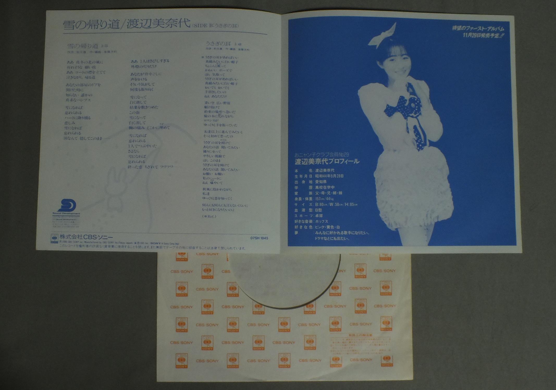 MINAYO WATANABE渡辺美奈代/雪の帰り道 07SH1845 製造国:日本盤 / Media:7inch外観:EX+盤の状態:EX+ 価格(税込):¥495 送料 7inch:定形外郵便 360円~LP:定形外郵便 660円~送料は、注文の最終画面で確認頂けます。 レコード検索 > J-POP > MINAYO WATANABE/ 外観 (EX+)特記事項:特記なし。外観EX+の共通説明:中古としては美品、一見してきれいでダメージが軽微。シミ、ヨゴレ、スレ有っても僅か~少し。 盤の状態 (EX+)特記事項:極薄いスリキズ・スレ少し。一見してきれいな状態です。盤EX+の共通説明:盤面の極薄いスリキズ、スレ少し程度 音に出そうなものは無いように見える(極軽微なソフトティック音は除く)。 Tweet それぞれの画像をクリックすると、大きい写真が見られます こちらの商品もお勧めです 770円 SEIKO MATSUDA松田聖子 / CANDYキャンディー 660円 YOU HAYAMI早見優 / IMAGEイマージュ 770円 MIKI ASAKURA麻倉未希 / DANCIN` M. 1,210円 YUKO TOMITAとみたゆう子 / CLASSICAL HEARTクラシカル・ハート 770円 YUKO ISHIKAWA石川優子 / YUKO TOKIMEKU-KORO優子ときめくころ 1,210円 TSUKASA ITOH伊藤つかさ / SAYONARA KONNICHIWAさよなら、こんにちは 770円 YUKO ISHIKAWA石川優子 / SPICYスパイシィ 1,210円 ERI NITTA新田恵利 / ERI