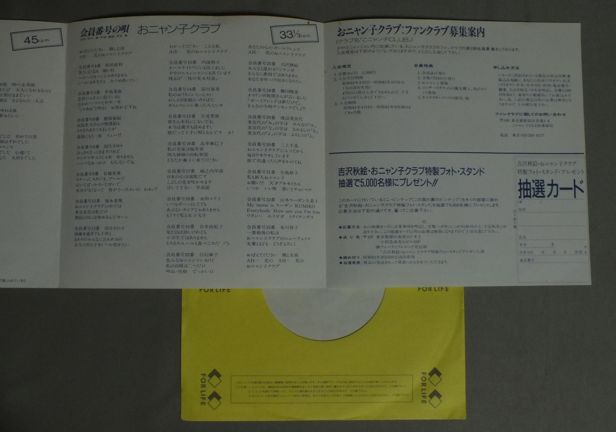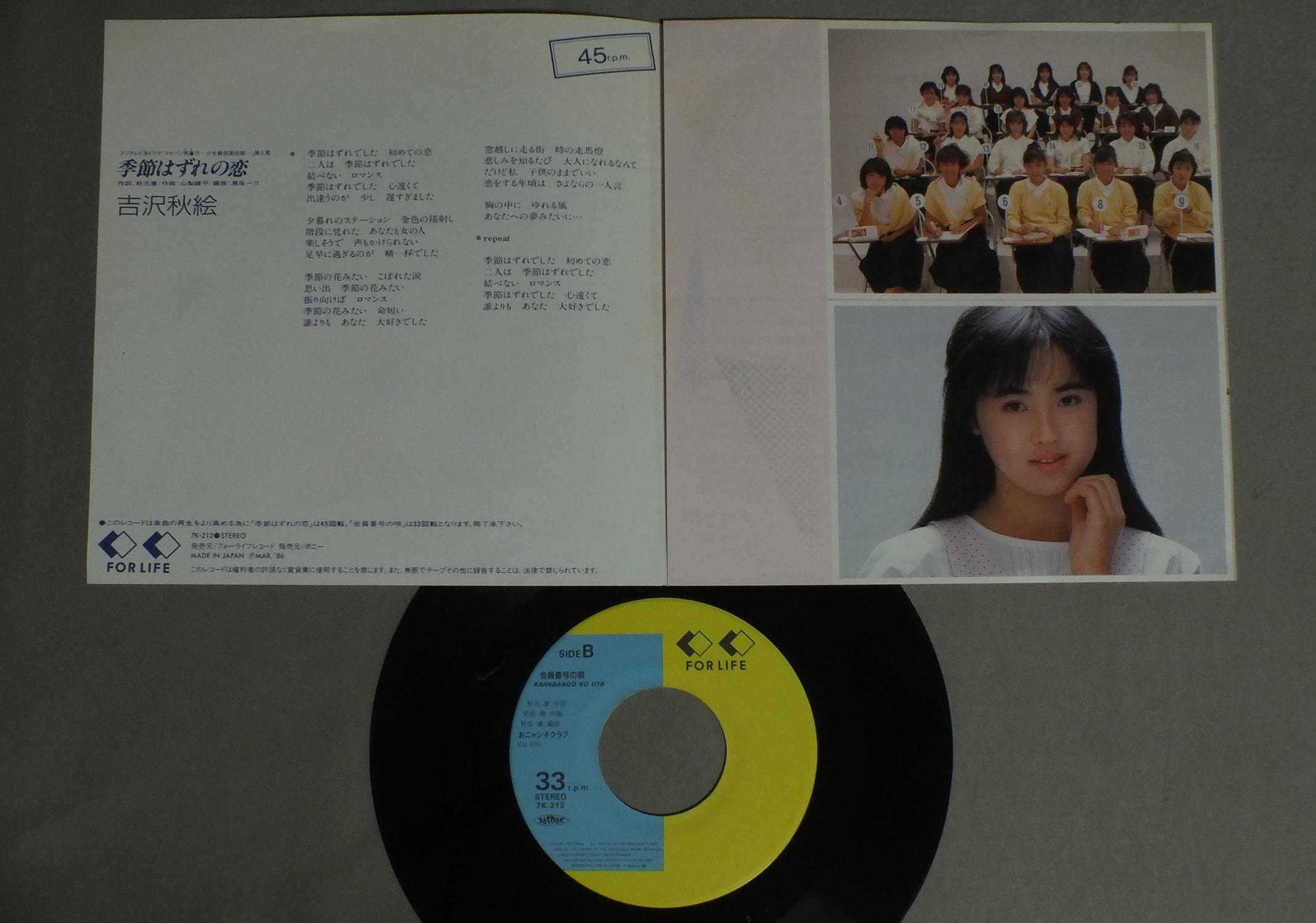 AKIE YOSHIZAWA吉沢秋絵/KISETSUHAZURE NO KOI季節はずれの恋 7K212 製造国:日本盤 / Media:7inch外観:EX盤の状態:EX+ 価格(税込):¥330 送料 7inch:定形外郵便 360円~LP:定形外郵便 660円~送料は、注文の最終画面で確認頂けます。 > > AKIE YOSHIZAWA/KISETSUHAZURE NO KOI 外観 (EX)特記事項:特記なし。外観EXの共通説明:ダメージが限定的。中古品としては保存状態がよい方。シミ、ヨゴレ、スレ 少し~軽度。 盤の状態 (EX+)特記事項:極薄いスリキズ・スレ少し。一見してきれいな状態です。盤EX+の共通説明:盤面の極薄いスリキズ、スレ少し程度 音に出そうなものは無いように見える(極軽微なソフトティック音は除く)。 Tweet それぞれの画像をクリックすると、大きい写真が見られます こちらの商品もお勧めです 990円 PINK LADYピンク・レディー / CHALLENGE CONCERTチャレンジ・コンサート 660円 YOU HAYAMI早見優 / IMAGEイマージュ 660円 YUKO ISHIKAWA石川優子 / SENTIMENTAL ROADセンチメンタル・ロード 770円 YOSHIE KASHIWABARA柏原よしえ / SUMMER SENSATIONサマー・センセイション 1,210円 USHIRO-YUBI SASAREGUMIうしろゆびさされ組 / 1st LP ( FUWAFURA )ふ・わ・ふ・ら 880円 MAKO ISHINO石野真子 / MAKO2 770円 TSUKASA ITOH伊藤つかさ / TSUKASA IN WONDERLANDふしぎの国のつかさ 550円 SONOKO KAWAI河合その子 / SONOKOその子