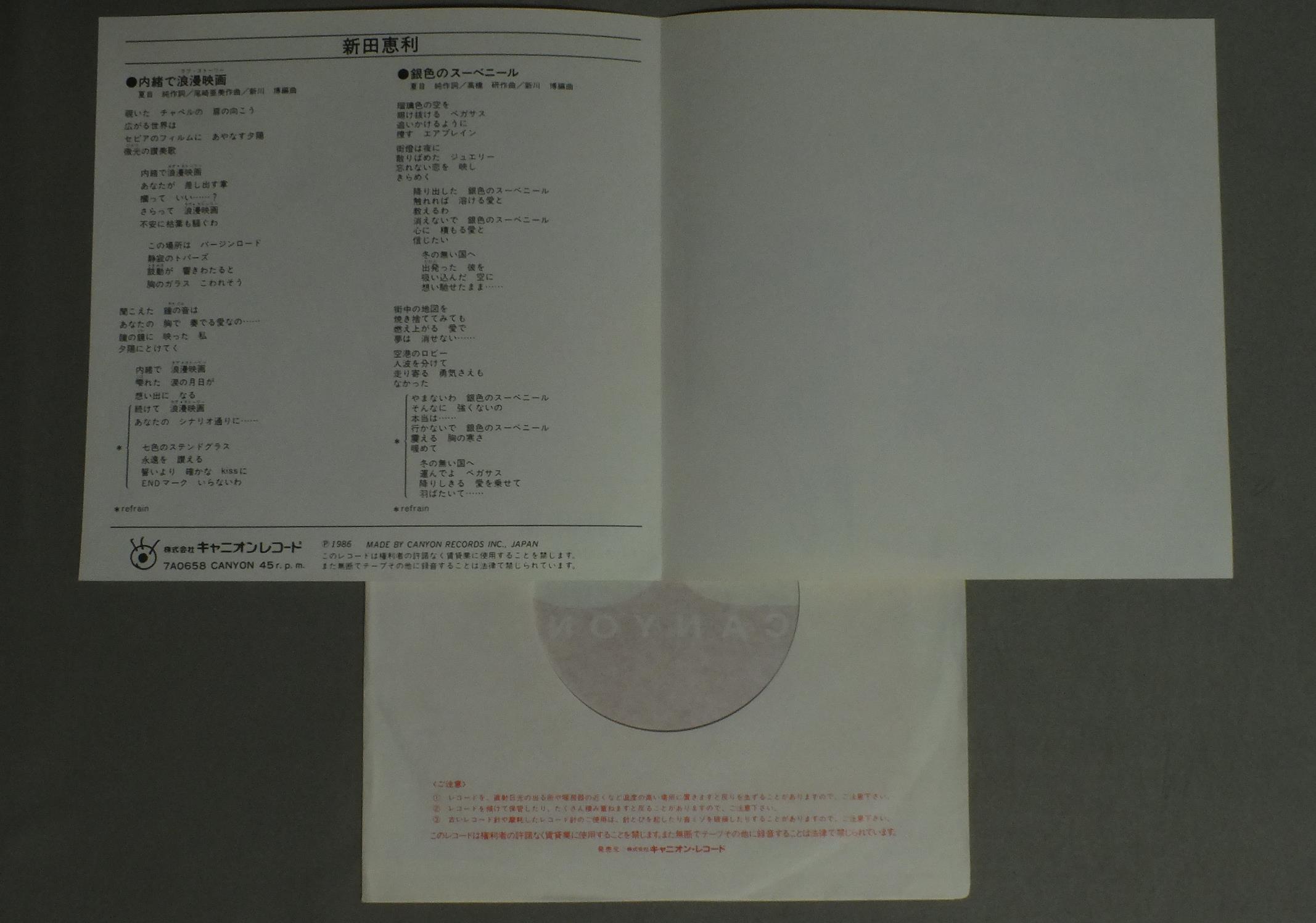 ERI NITTA新田恵利/NAISHO DE ROMAN EIGA内緒で浪漫映画 7A0658 製造国:日本盤 / Media:7inch外観:EX+盤の状態:EX+ 価格(税込):¥495 送料 7inch:定形外郵便 360円~LP:定形外郵便 660円~送料は、注文の最終画面で確認頂けます。 > > ERI NITTA/NAISHO DE ROMAN EIGA 外観 (EX+)特記事項:特記なし。外観EX+の共通説明:中古としては美品、一見してきれいでダメージが軽微。シミ、ヨゴレ、スレ有っても僅か~少し。 盤の状態 (EX+)特記事項:極薄いスリキズ・スレ少し。一見してきれいな状態です。盤EX+の共通説明:盤面の極薄いスリキズ、スレ少し程度 音に出そうなものは無いように見える(極軽微なソフトティック音は除く)。 Tweet それぞれの画像をクリックすると、大きい写真が見られます こちらの商品もお勧めです 1,320円 MIKI ASAKURA麻倉未稀 / SEXY ELEGANCEセクシー・エレガント 1,210円 SAYURI KOKUSHO国生さゆり / TRANSIT 770円 NAOKO KAWAI河合奈保子 / STARDUST GARDEN千年庭園 660円 HIROKO TANIYAMA谷山浩子 / MOUHITORI NO ALICEもうひとりのアリス 1,210円 PINK LADYピンク・レディー / PINK LADY CHALLENGE CONCERTピンク・レディー・チャレンジ・コンサート 1,320円 MAKO ISHINO石野真子 / MY COLLECTIONマイ・コレクション 770円 ERI NITTA新田恵利 / ERI 1,210円 HIROMI IWASAKI岩崎宏美 / ROMANTIC CONCERT 2ロマンティック・コンサート2 + ピンナップ付
