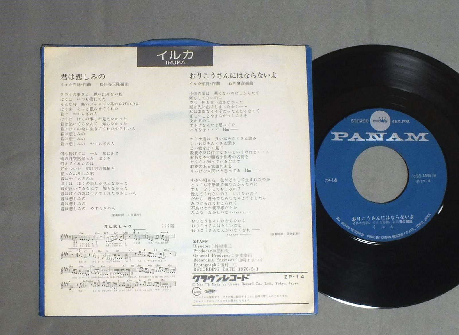IRUKAイルカ/KIMIHA KANASHIMINO君は悲しみの ZP14 製造国:日本盤 / Media:7inch外観:EX盤の状態:EX 価格(税込):¥330 送料 7inch:定形外郵便 360円~LP:定形外郵便 660円~送料は、注文の最終画面で確認頂けます。 > > IRUKA/KIMIHA KANASHIMINO 外観 (EX)特記事項:特記なし。外観EXの共通説明:ダメージが限定的。中古品としては保存状態がよい方。シミ、ヨゴレ、スレ 少し~軽度。 盤の状態 (EX)特記事項:薄いスリキズ・スレ軽くある感じ。軽微なものの様子です。盤EXの共通説明:盤面のスリキズが薄いものが少し~軽度 音に出そうなものは無いように見える(軽微なソフトティック音は除く)。 Tweet それぞれの画像をクリックすると、大きい写真が見られます こちらの商品もお勧めです 770円 NOBUYASU OKABAYASHI岡林信康 / SERENADEセレナーデ 770円 IRUKAイルカ / WAGA KOKORNO TOMOHE我が心の友へ 440円 KEMEケメ / KEME VOL.5愛そして卒業 ケメ-VOL.5 880円 SHIGERU IZUMIYA泉谷しげる / LIVE IZUMIYAライブ!!泉谷 王様たちの夜 880円 N.S.Pニュー・サディスティック・ピンク / N.S.P. 2N.S.P. II 990円 TOI ET MOIトワ・エ・モワ / SORAYO空よ 1,320円 TOKIKO KATOH AND KIYOSHI HASEGAWA加藤登紀子と長谷川きよし / LIVE 1,210円 HAKUDO OHTSUKA大塚博堂 / 過ぎ去りし想い出は