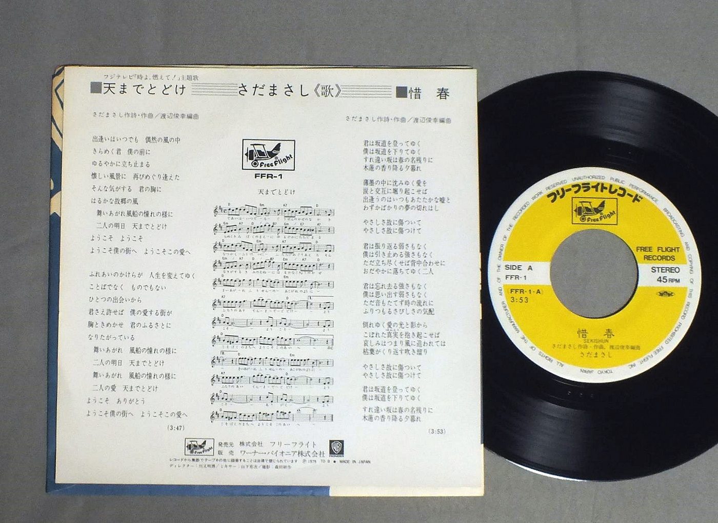 MASASHI SADAさだまさし/TEN MADE TODOKE天までとどけ FFR1 製造国:日本盤 / Media:7inch外観:EX盤の状態:EX+ 価格(税込):¥330 送料 7inch:定形外郵便 360円~LP:定形外郵便 660円~送料は、注文の最終画面で確認頂けます。 > > MASASHI SADA/TEN MADE TODOKE 外観 (EX)特記事項:ヨレ有り。外観EXの共通説明:ダメージが限定的。中古品としては保存状態がよい方。シミ、ヨゴレ、スレ 少し~軽度。 盤の状態 (EX+)特記事項:極薄いスリキズ・スレ少し。一見してきれいな状態です。盤EX+の共通説明:盤面の極薄いスリキズ、スレ少し程度 音に出そうなものは無いように見える(極軽微なソフトティック音は除く)。 Tweet それぞれの画像をクリックすると、大きい写真が見られます こちらの商品もお勧めです 770円 ALFEEアルフィー / PAGE ONE -13 PIECES OF ALFEE- 1,210円 MACHIKO WATANABE渡辺真知子 / MEMORIESメモリ−ズ 770円 TULIPチューリップ / BOKU GATSUKUTTA AINO UTAぼくがつくった愛のうた 1,210円 EIKICHI YAZAWA矢沢永吉 / KISS ME PLEASEキス・ミー・プリーズ 770円 YUKO OHTOMO大友裕子 / KIZUNA絆 1,980円 GOODBYE / FIFTH DIMENSION 990円 HIROMI IWASAKI岩崎ひろみ / YUUGUREKARA夕暮れからひとり 770円 YOSHITAROU KANAZAKI加奈崎芳太郎 (古井戸) / AIGA MOSHI SUBETENARA愛がもしすべてなら