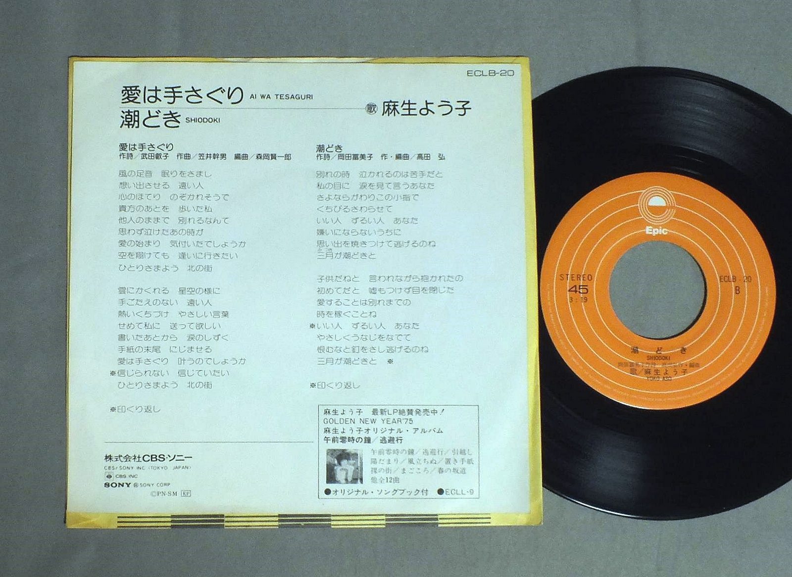 YOKO ASO麻生よう子/AI WA TESAGURI愛は手さぐり ECLB20 製造国:日本盤 / Media:7inch外観:EX+盤の状態:EX 価格(税込):¥396 送料 7inch:定形外郵便 360円~LP:定形外郵便 660円~送料は、注文の最終画面で確認頂けます。 レコード検索 > CLASSIC ORCH. > YOKO ASO/AI WA TESAGURI 外観 (EX+)特記事項:特記なし。外観EX+の共通説明:中古としては美品、一見してきれいでダメージが軽微。シミ、ヨゴレ、スレ有っても僅か~少し。 盤の状態 (EX)特記事項:薄いスリキズ・スレ少しある感じ。一見してきれいな感じです。盤EXの共通説明:盤面のスリキズが薄いものが少し~軽度 音に出そうなものは無いように見える(軽微なソフトティック音は除く)。 Tweet それぞれの画像をクリックすると、大きい写真が見られます こちらの商品もお勧めです 880円 TAKURO YOSHIDA吉田拓郎 / ROLLING 30 + FREE 7inchローリング30+おまけ7インチ 440円 MARI AMACHI天地真理 / BRIDGE OF A RAINBOW虹をわたって 770円 CIRCUSサーカス / NEW HORIZON 1,210円 PEDRO & CAPRICIOUSペドロ &カプリシャス / BEST ALBUMスター・ベスト・ヒット・コレクション 880円 TULIPチューリップ / LIVE ACT TULIPライヴ アクト・チューリップ 1,320円 TAMAKI SAWA沢たまき / DON`T SMOKE IN BEDベッドで煙草を吸わないで 440円 OFF COURSEオフコース / THREE AND TWOスリー・アンド・トゥ 990円 TAKASHI SATO佐藤隆 / UN HOMME ET UNE FEMME男と女