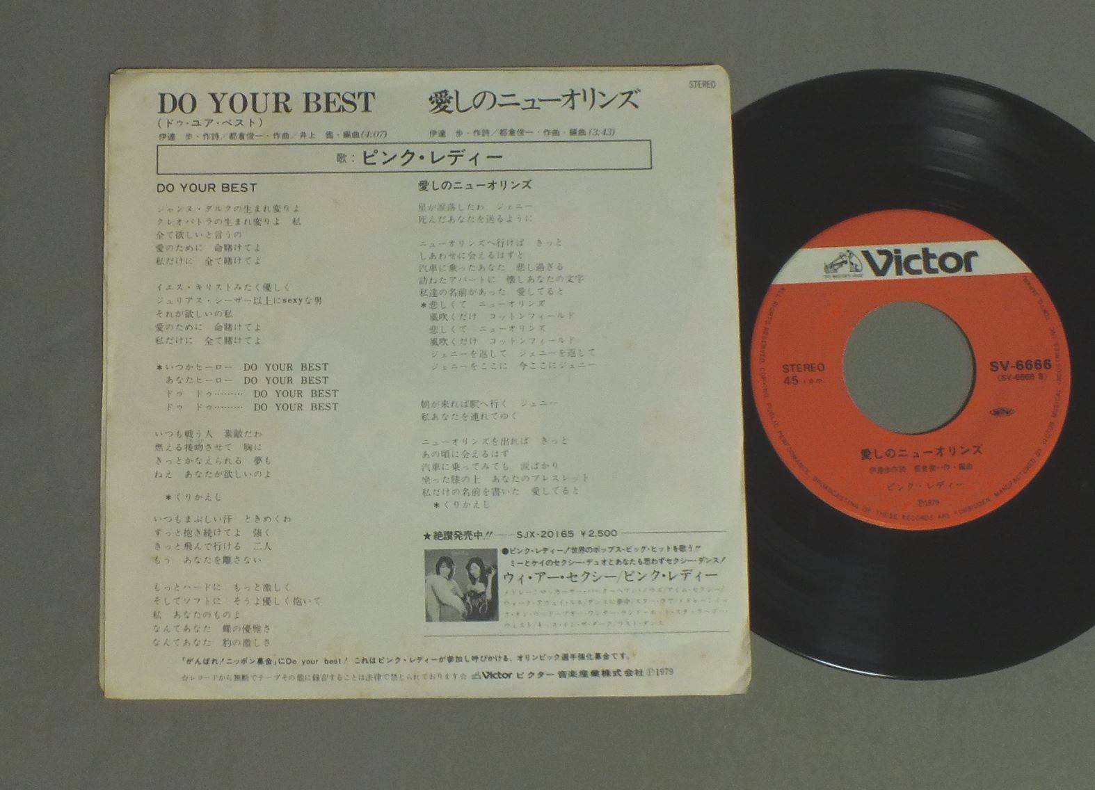 PINK LADYピンク・レディー/DO YOUR BESTドゥ・ユア・ベスト SV6666 製造国:日本盤 / Media:7inch外観:EX盤の状態:EX+ 価格(税込):¥330 送料 7inch:定形外郵便 360円~LP:定形外郵便 660円~送料は、注文の最終画面で確認頂けます。 > > PINK LADY/DO YOUR BEST 外観 (EX)特記事項:特記なし。外観EXの共通説明:ダメージが限定的。中古品としては保存状態がよい方。シミ、ヨゴレ、スレ 少し~軽度。 盤の状態 (EX+)特記事項:薄いスリキズ・スレ少し。一見してきれいな状態です。盤EX+の共通説明:盤面の極薄いスリキズ、スレ少し程度 音に出そうなものは無いように見える(極軽微なソフトティック音は除く)。 Tweet それぞれの画像をクリックすると、大きい写真が見られます こちらの商品もお勧めです 660円 MIYOKO ASADA浅田美代子 / TRAVELLING AROUND THE WORLD WITH MIYOKOしあわせの一番星-恋は真珠いろ -(美代子と世界の旅) 770円 NAOKO KAWAI河合奈保子 / LOVEラブ 550円 SONOKO KAWAI河合その子 / SONOKOその子 1,320円 MIKI ASAKURA麻倉未稀 / LOVE AGAIN 770円 NAOKO KAWAI河合奈保子 / STARDUST GARDEN千年庭園 990円 PINK LADYピンク・レディー / BYE BYE CARNIVALバイ・バイ・カーニバル 1,320円 MIKI ASAKURA麻倉未稀 / SEXY ELEGANCEセクシー・エレガント 550円 ONYANKO CLUBおニャン子クラブ / KICK OFFキックオフ