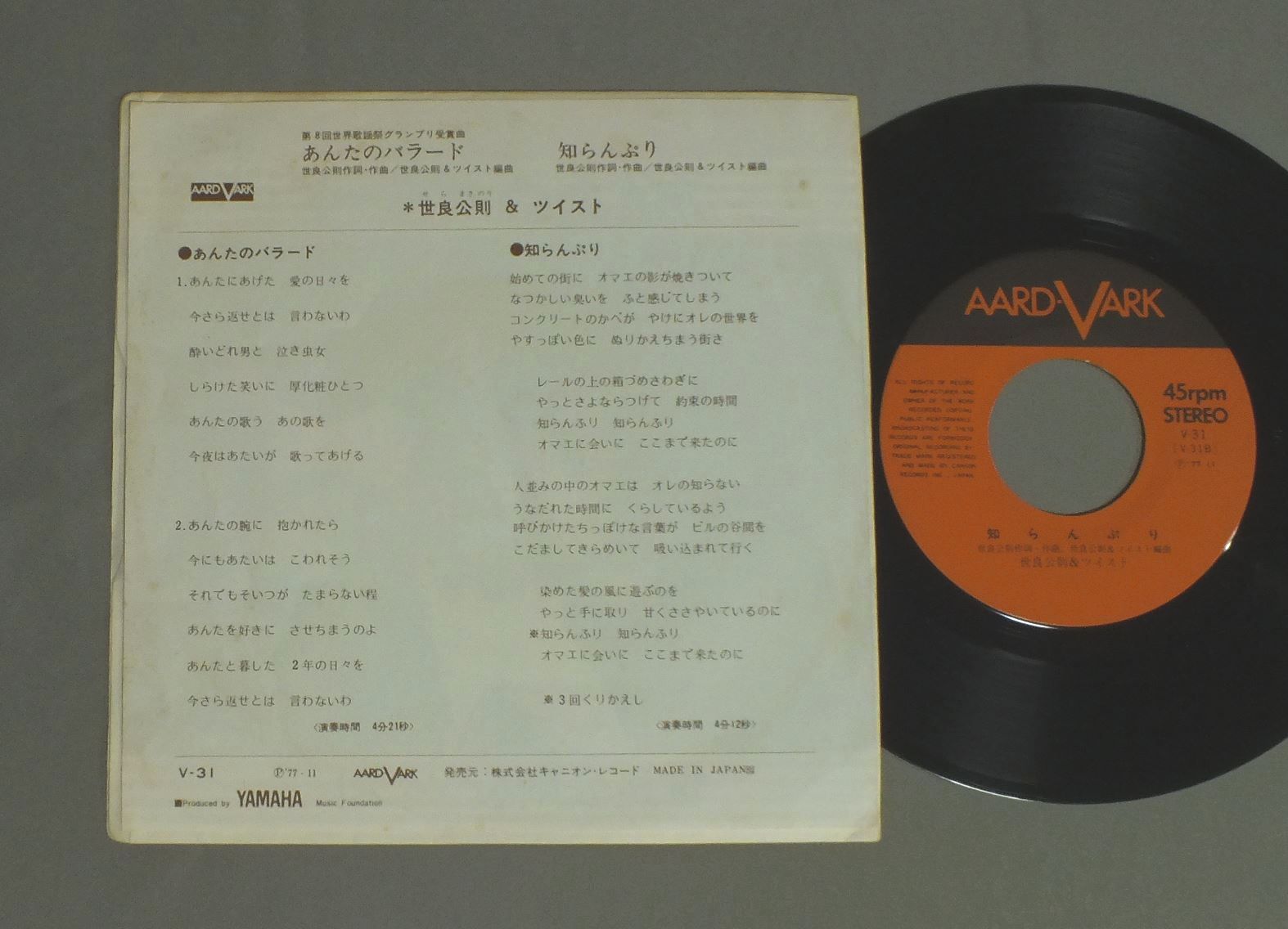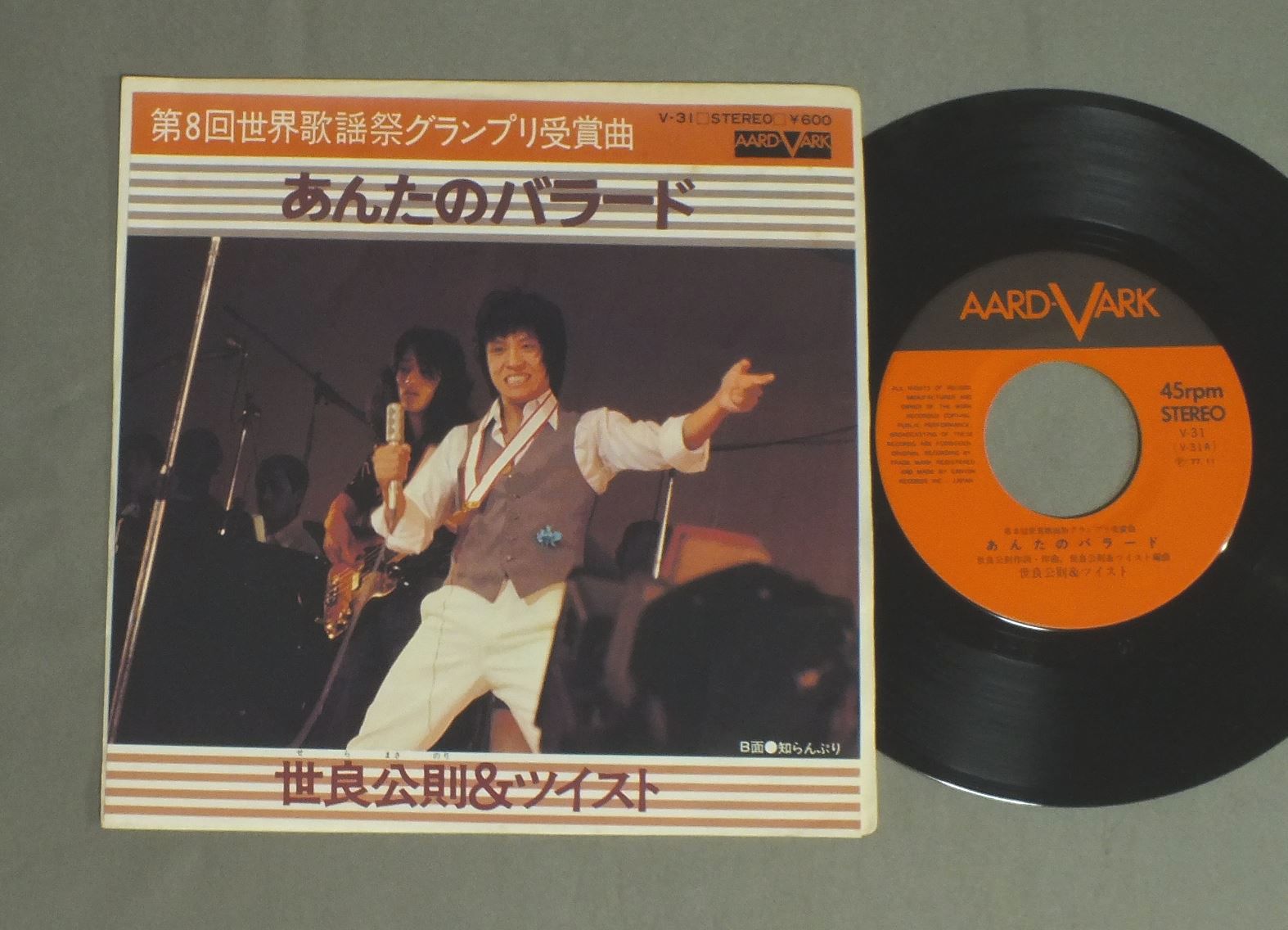 KIMINORI SERA & TWIST世良公則&ツイスト/ANTA NO BALLADEあんたのバラード V31 製造国:日本盤 / Media:7inch外観:EX盤の状態:EX 価格(税込):¥330 送料 7inch:定形外郵便 360円~LP:定形外郵便 660円~送料は、注文の最終画面で確認頂けます。 > > KIMINORI SERA & TWIST/ANTA NO BALLADE 外観 (EX)特記事項:特記なし。外観EXの共通説明:ダメージが限定的。中古品としては保存状態がよい方。シミ、ヨゴレ、スレ 少し~軽度。 盤の状態 (EX)特記事項:薄いスリキズ・スレ軽くある感じ。軽微なものの様子です。盤EXの共通説明:盤面のスリキズが薄いものが少し~軽度 音に出そうなものは無いように見える(軽微なソフトティック音は除く)。 Tweet それぞれの画像をクリックすると、大きい写真が見られます こちらの商品もお勧めです 770円 KUMIKO YAMASHITA山下久美子 / AME NO H IHA IENIITE雨の日は家にいて 1,430円 ZIG ZAG / FLAMINGO 440円 OFF COURSEオフコース / THREE AND TWOスリー・アンド・トゥ 660円 TULIPチューリップ / MUGEN KIDO無限軌道 1,210円 TAKURO YOSHIDAよしだたくろう / ON STAGEオン・ステージ - ともだち 770円 KUMIKO YAMASHITA山下久美子 / DAKISHIMETE ONLY YOU抱きしめてオンリィ・ユー 770円 I SEONG-AE季成愛 / SAYONARAさよなら - 演歌の源流を探る 550円 HIDEKI SAIJO西城秀樹 / KOU NO BOUSOU恋の暴走