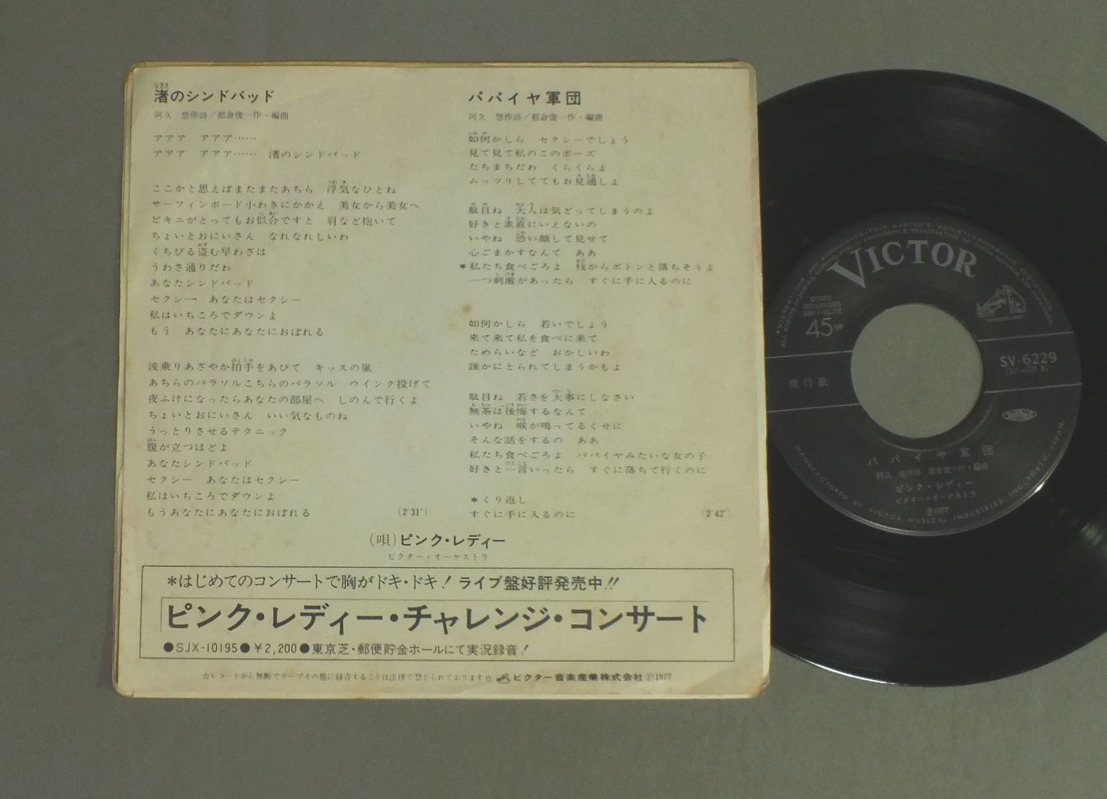 PINK LADYピンク・レディー/NAGIA NO SINBAD渚のシンドバッド SV6229 製造国:日本盤 / Media:7inch外観:EX盤の状態:EX 価格(税込):¥330 送料 7inch:定形外郵便 360円~LP:定形外郵便 660円~送料は、注文の最終画面で確認頂けます。 レコード検索 > J-POP > PINK LADY/NAGIA NO SINBAD 外観 (EX)特記事項:特記なし。外観EXの共通説明:ダメージが限定的。中古品としては保存状態がよい方。シミ、ヨゴレ、スレ 少し~軽度。 盤の状態 (EX)特記事項:薄いスリキズ・スレ軽くある感じ。殆どが軽微なものの様子です。盤EXの共通説明:盤面のスリキズが薄いものが少し~軽度 音に出そうなものは無いように見える(軽微なソフトティック音は除く)。 Tweet それぞれの画像をクリックすると、大きい写真が見られます こちらの商品もお勧めです 880円 SEIKO MATSUDA松田聖子 / WINDY SHADOW 770円 NAOKO KAWAI河合奈保子 / NAOKO IN CONCERT河合奈保子 カナリー・コンサート PART 2 770円 SHOKO SAWADA沢田聖子 / SHOKO LIVE 660円 MIYOKO ASADA浅田美代子 / TRAVELLING AROUND THE WORLD WITH MIYOKOしあわせの一番星-恋は真珠いろ -(美代子と世界の旅) 1,210円 SAYURI KOKUSHO国生さゆり / TRANSIT 880円 MAKO ISHINO石野真子 / MAKO2 1,320円 MIKI ASAKURA麻倉未稀 / LOVE AGAIN 880円 MOMOE YAMAGUCHI山口百恵 / BEST HITS山口百恵ヒット全曲集
