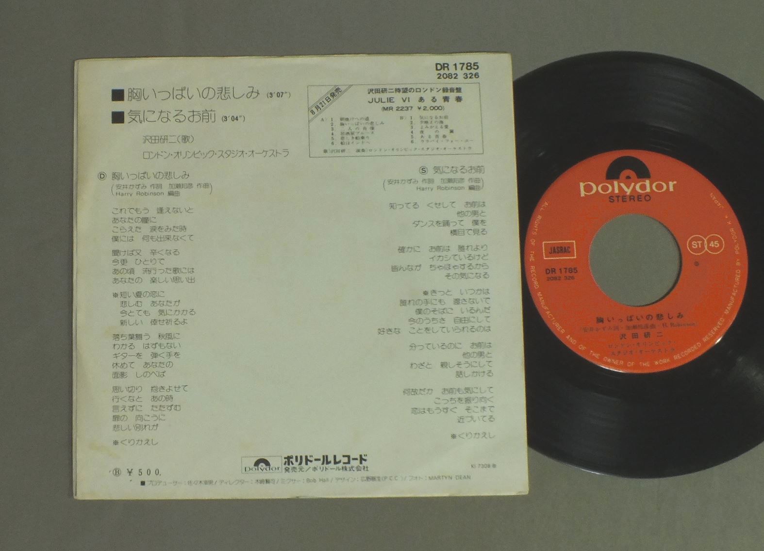 KENJI SAWADA沢田研二/MUNE IPPAI NO KANASHIMI胸いっぱいの悲しみ DR1785 製造国:日本盤 / Media:7inch外観:EX盤の状態:EX- 価格(税込):¥330 送料 7inch:定形外郵便 360円~LP:定形外郵便 660円~送料は、注文の最終画面で確認頂けます。 > > KENJI SAWADA/MUNE IPPAI NO KANASHIMI 外観 (EX)特記事項:特記なし。外観EXの共通説明:ダメージが限定的。中古品としては保存状態がよい方。シミ、ヨゴレ、スレ 少し~軽度。 盤の状態 (EX-)特記事項:薄いスリキズ・細かい表面スレ軽くある感じ。全体的には殆どが軽微なものの様子です。盤EX-の共通説明:盤面のスリキズが多少有り。音に出そうなものは殆ど無いように見える~さほど気にならないぐらいの軽いプチ数カ所程度。 Tweet それぞれの画像をクリックすると、大きい写真が見られます こちらの商品もお勧めです 880円 SQUAREスクエア / ROCKOONロックーン 1,210円 MACHIKO WATANABE渡辺真知子 / MEMORIESメモリ−ズ 1,210円 PEDRO & CAPRICIOUSペドロ &カプリシャス / BEST ALBUMスター・ベスト・ヒット・コレクション 1,980円 GOODBYE / FIFTH DIMENSION 1,650円 RC SUCCESIONRCサクセション / BEAT POPSBEAT POPS-RCサクセション 770円 HIROMI OHTA大田裕美 / 12 PAGES POETRY12ページの詩集 770円 MASAMICHI SUGI杉真理 / MISTONE 1,320円 BOROボロ / COMING SOON