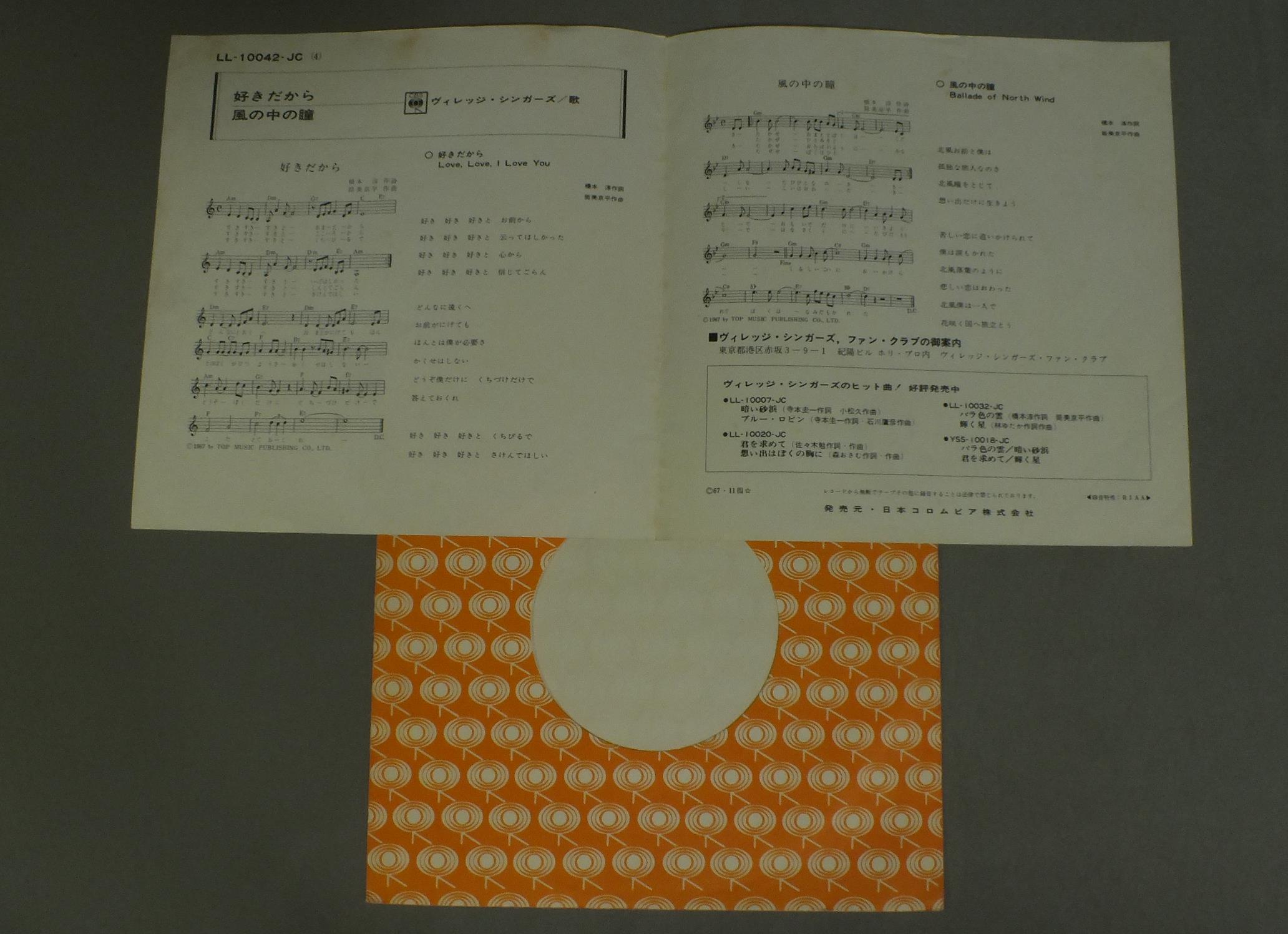 VILLAGE SINGERSヴィレッジ・シンガーズ/LOVE. LOVE. I LOVE YOU好きだから LL10042JC 製造国:日本盤 / Media:7inch外観:EX-盤の状態:EX 価格(税込):¥330 送料 7inch:定形外郵便 360円~LP:定形外郵便 660円~送料は、注文の最終画面で確認頂けます。 レコード検索 > J-POP > VILLAGE SINGERS/LOVE. LOVE. I LOVE YOU 外観 (EX-)特記事項:ヨレやシミ有り。外観EX-の共通説明:ダメージ軽度~多少。 中古品としては普通の状態。シミ、ヨゴレ、スレなど軽く~多少。 盤の状態 (EX)特記事項:薄いスリキズ・スレ軽くある感じ。軽微なものの様子です。盤EXの共通説明:盤面のスリキズが薄いものが少し~軽度 音に出そうなものは無いように見える(軽微なソフトティック音は除く)。 Tweet それぞれの画像をクリックすると、大きい写真が見られます こちらの商品もお勧めです 1,650円 MUNETAKA INOUE & HIS SHARP FIVE井上宗孝とシャープ・ファイヴ / SHARP FIVE SCREEN GO GOシャープ・ファイヴ・スクリーン・ゴーゴー 660円 YUZO KAYAMA加山雄三 / AISURUTOKIHA IMA愛する時は今 660円 YUZO KAYAMA加山雄三 / 15TH ANNIVERSARY加山雄三1976 武道館ライブ 1,210円 WILD ONES加瀬邦彦とワイルドワンズ / ON THE BEACH`82オン・ザ・ビーチ`82 550円 TAKESHI TERAUCHI & THE BUNNYS寺内タケシとバニーズ / LET`S GO CLASSICSレッツ・ゴー運命 2,420円 OXオックス / TELL ME-OX ON STAGE No1テルミー-オックス・オン・ステージ No1 1,320円 YUZO KAYAMA & LAUNCHERS加山雄三とランチャーズ / 1st ALBUM ( REISSUE )青春・愛その時 (幻の1st ALBUM ) 3,850円 OXオックス / FIRST ALBUMファースト・アルバム