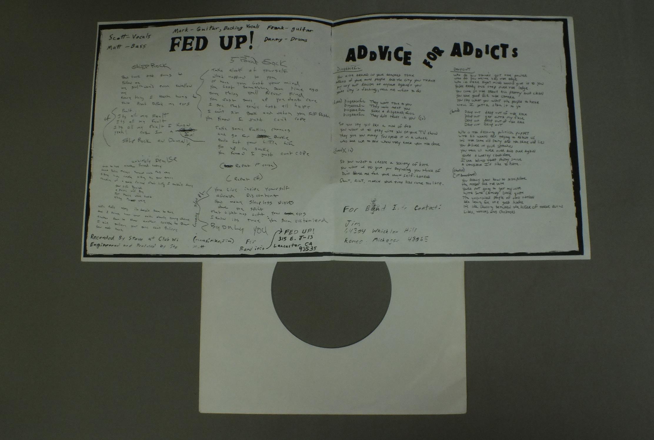FEDUP & ADDVICE FOR SDDICTS/SCHIEPROCK FOO9 製造国:輸入盤 / Media:7inch外観:EX盤の状態:EX+ 価格(税込):¥330(売約済) 送料 7inch:定形外郵便 360円~LP:定形外郵便 660円~送料は、注文の最終画面で確認頂けます。 > > FEDUP & ADDVICE FOR SDDICTS/SCHIEPROCK 外観 (EX)特記事項:特記なし。外観EXの共通説明:ダメージが限定的。中古品としては保存状態がよい方。シミ、ヨゴレ、スレ 少し~軽度。 盤の状態 (EX+)特記事項:薄いスリキズ・スレ少し。一見してきれいな状態です。盤EX+の共通説明:盤面の極薄いスリキズ、スレ少し程度 音に出そうなものは無いように見える(極軽微なソフトティック音は除く)。 Tweet それぞれの画像をクリックすると、大きい写真が見られます こちらの商品もお勧めです 770円 DAVY JONES LOCKER / GREEN ALBUM 2,750円 FRENZYフレンジー / HALL OF MIRRORSホール・オブ・ミラーズ 1,320円 STRAY CATS / GONNA BALL 770円 VARIOUS ARTISTS / HARDCORE BREAKOUT U.S.A 1,650円 VARIOUS UK PUNK GROUPS / KIDS ARE UNITED 1,650円 NINE NINE NINE999 / BIGGEST PRIZE IN SPORT 770円 DUKES / DUKES 1,980円 CONFLICT / TURNING REBELLION INTO MONEY