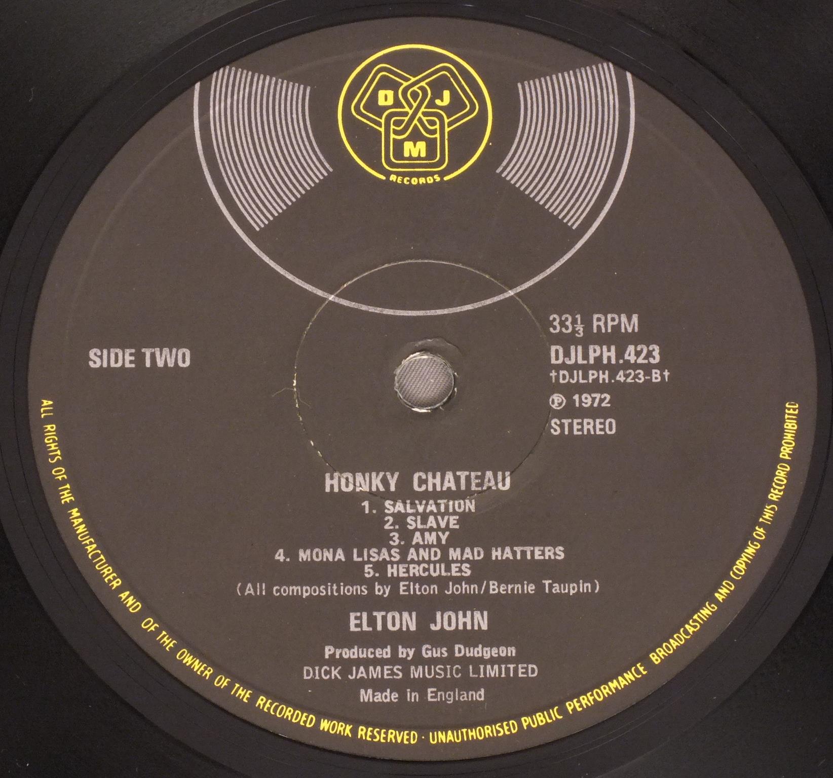 ELTON JOHN/HONKY CHATEAU DJLPH423 製造国:英国盤 / Media:LPMatrix:A3 B3外観:EX盤の状態:EX- 価格(税込):¥4,400(売約済) 送料 7inch:定形外郵便 360円~LP:定形外郵便 660円~送料は、注文の最終画面で確認頂けます。 > > ELTON JOHN/HONKY CHATEAU 外観 (EX)特記事項:見開きも含めてエンボス入り。裏ジャケに差し込みが有る最初期タイプ。上下ヘリスレ多少有り。裏ジャケの差し込み口にヨレ。表ジャケ背上付近にステッカー剥がれ跡小。外観EXの共通説明:ダメージが限定的。中古品としては保存状態がよい方。シミ、ヨゴレ、スレ 少し~軽度。 盤の状態 (EX-)特記事項:A2にプチ出る小さめのキズ有りますが、他は薄いスリキズ・スレ軽く有る感じ。殆どが軽微なものの様子で、きれいな印象。曲間など、静かなところを中心に聴いて見ましたが、チリノイズ少ないきれいな再生具合でした。盤EX-の共通説明:盤面のスリキズが多少有り。音に出そうなものは殆ど無いように見える~さほど気にならないぐらいの軽いプチ数カ所程度。 Tweet それぞれの画像をクリックすると、大きい写真が見られます こちらの商品もお勧めです 5,500円 JIM WEBB / SINGS JIM WEBB 4,180円 NILLSON / SANDMAN 7,700円 VAN MORRISON / T. B. SHEETS 3,850円 VAN MORRISON / PERIOD OF TRANSITION 6,600円 RORY GALLAGHER / BLUE PRINT初回LBL 3,300円 CLIFF RICHARD / CLIFF`S HIT ALBUM 3,850円 TIM BACKLEY / LOOK AT THE FOOL 3,850円 CAT STEVENCE / CATCH BUL AT FOUR