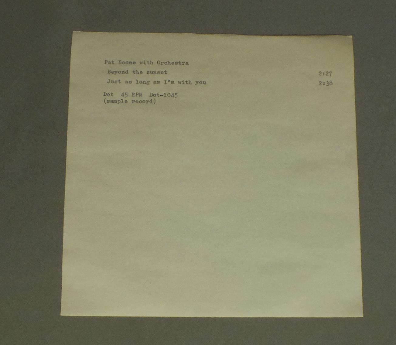PAT BOONE/BEYOND THE SUNSET夕陽のかなたに DOT1045 製造国:日本盤 / Media:7inch盤の状態:EX 価格(税込):¥330 送料 7inch:定形外郵便 360円~LP:定形外郵便 660円~送料は、注文の最終画面で確認頂けます。 > > PAT BOONE/BEYOND THE SUNSET 盤の状態 (EX)特記事項:薄いスリキズ・スレ軽くある感じ。軽微なものの様子です。盤EXの共通説明:盤面のスリキズが薄いものが少し~軽度 音に出そうなものは無いように見える(軽微なソフトティック音は除く)。 Tweet それぞれの画像をクリックすると、大きい写真が見られます こちらの商品もお勧めです 660円 PAUL ANKAポール・アンカ / BEST OF PAUL ANKAポール・アンカのすべて 1,320円 ELVIS PRESLEY / THAT`S THE WAY IT ISこの胸のときめきを 1,210円 EVERLY BROTHERSエヴァリー・ブラザース / DATE WITH EVERY BROTHERSデイト・ウィズ・エヴァリー・ブラザーズ 770円 ELVIS PRESLEYエルヴィス・プレスリー / ELVIS-THAT`S THE WAY IT ISこの胸のときめきを -MGM映画 エルヴィス・オン・ステージ 主題歌集 1,210円 ELVIS PRESLEY / IN PERSON AT THE INTERNATIONAL HOTEL LAS VEGAS.NEVADA 770円 VARIOUS ARTISTS / YESTERDAY`S HITSイエスタデイズ・ヒッツ 440円 VENTURESベンチャーズ / POPS IN JAPANポップス・イン・ジャパン 880円 LETTERMENレターメン / LOVE BOOK愛の世界