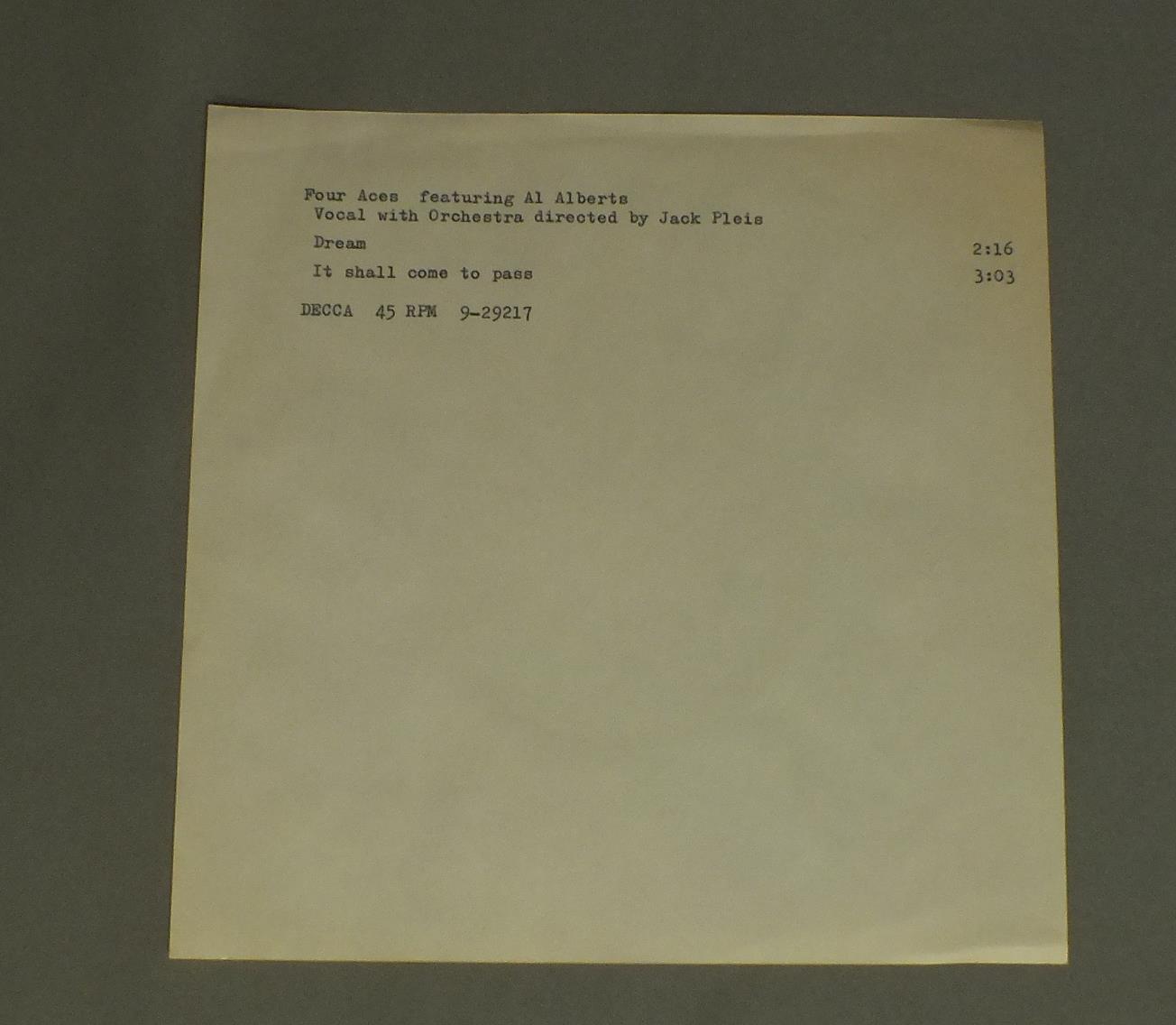 FOUR ACES/DREAM 9 29217 製造国:米国盤 / Media:7inch盤の状態:EX- 価格(税込):¥330(売約済) 送料 7inch:定形外郵便 360円~LP:定形外郵便 660円~送料は、注文の最終画面で確認頂けます。 > > FOUR ACES/DREAM 盤の状態 (EX-)特記事項:薄いスリキズ・細かい表面スレ軽くある感じ。全体的には殆どが軽微なものの様子です。盤EX-の共通説明:盤面のスリキズが多少有り。音に出そうなものは殆ど無いように見える~さほど気にならないぐらいの軽いプチ数カ所程度。 Tweet それぞれの画像をクリックすると、大きい写真が見られます こちらの商品もお勧めです 770円 JOHN GARY / CATCH A RISING STAR 550円 JEANETTE MacDONALD & NELSON EDDY / SAME TITLE 770円 MILDRED BAILEY-TERRY ALLEN / RED NORVO&HIS ORCHESTRA 1938 770円 SWINGLE SINGERS / GOING BAROQUE SWINGING HITS OF HANDEL 440円 DICK HAYMES / DICK HAYMES SINGS 550円 MEL TORME / `ROUND MIDNIGHT 990円 LES BROWN AND HIS ORCHESTRA WITH DORIS DAY / SENTIMENTAL JOURNEY 1,210円 BOB CROSBYボブ・クロスビー / BOB CROSBY`S BOB CATSボブ・クロスビーのボブ・キャッツ