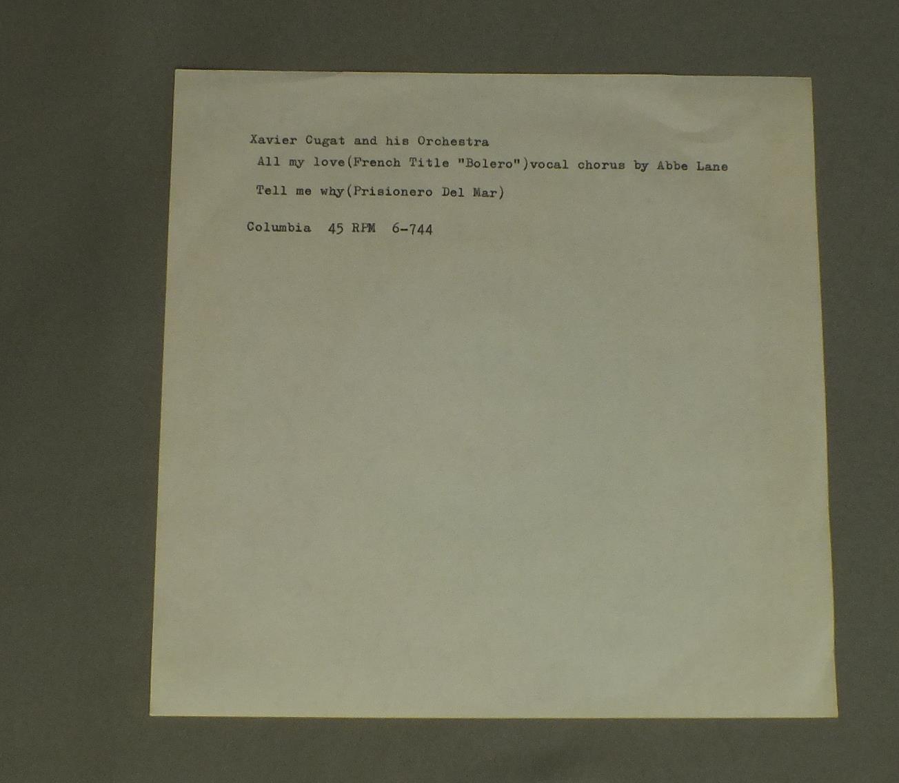 XAVIER CUGAT/ALL MY LOVE 6 744 製造国:米国盤 / Media:7inch盤の状態:EX- 価格(税込):¥550(売約済) 送料 7inch:定形外郵便 360円~LP:定形外郵便 660円~送料は、注文の最終画面で確認頂けます。 > > XAVIER CUGAT/ALL MY LOVE 盤の状態 (EX-)特記事項:薄いスリキズ・細かい表面スレ多少ある感じ。殆どが軽微なものの様子です。盤EX-の共通説明:盤面のスリキズが多少有り。音に出そうなものは殆ど無いように見える~さほど気にならないぐらいの軽いプチ数カ所程度。 Tweet それぞれの画像をクリックすると、大きい写真が見られます こちらの商品もお勧めです 5,500円 RUBY BRAFF / HUSTLIN` & BUSTLIN` 1,210円 HARRY JAMES etc / BIG BANDS GREATEST HITS VOLUME 2 770円 VARIOUS ARTISTS / JAZZ ROUND 1,100円 HARRY JAMESハリー・ジェイムズ / ALL ABOUT HARRY JAMES 1,210円 YANK LAWSON & BOB HAGGART / WHAT`S NEW AUTOGRAPHEDWHAT`S NEW RALPH SUTTONサイン付 1,210円 MONTE BALLOU AND HIS NEW CASTLE JAZZ BAND / THEY`RE MOVING WILLIE`S GRAVE TO DIG A SEWER (BUTCH THOMPSON AUTOGRAPHED )THEY`RE MOVING WILLIE`S GRAVE TO DIG A SEWER(BUTCH THOMPSONサイン付) 990円 FRANKIE CARLE / GOLDEN TOUCH 990円 MEL LEWIS AND THE JAZZ ORCHESTRA / NATURALLY