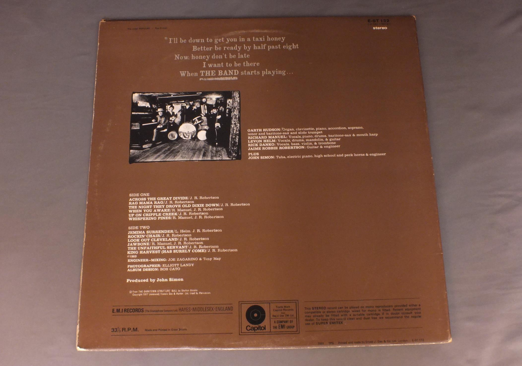 BAND/BAND ( 2nd ALBUM ) E-ST132 製造国:英国盤 / Media:LPMatrix:H1 H1外観:EX-盤の状態:EX 価格(税込):¥11,000(売約済) 送料 7inch:定形外郵便 360円~LP:定形外郵便 660円~送料は、注文の最終画面で確認頂けます。 > > BAND/BAND ( 2nd ALBUM ) 外観 (EX-)特記事項:上下ヘリスレやや有り。背スレも多少。ジャケ表面は薄いレコードリングスレ多少有り。全体的にはスリキズやよごれ等は少ない感じ。見開きは背付近に日焼けシミ軽が少し。外観EX-の共通説明:ダメージ軽度~多少。 中古品としては普通の状態。シミ、ヨゴレ、スレなど軽く~多少。 盤の状態 (EX)特記事項:薄いスリキズ・スレ軽く有る感じ。殆どが軽微なものの様子で、きれいな印象。曲間など、静かなところを中心に聴いて見ましたが、チリノイズ少ないきれいな再生具合でした。盤EXの共通説明:盤面のスリキズが薄いものが少し~軽度 音に出そうなものは無いように見える(軽微なソフトティック音は除く)。 その他:69年のEMI-Capitolの1マーク盤はこの年だけの非常に短い期間のレーベルです。 Tweet それぞれの画像をクリックすると、大きい写真が見られます こちらの商品もお勧めです 7,700円 BLUE JAG / SAME TITLE 4,400円 AREA CODE 615 / TRIP IN THE COUNTRY 9,900円 BIG BROTHER AND HOLDING COMPAMY / SAME TITLE / MONO 5,500円 HUMIMGBIRD / HUMIMNGBIRD 6,050円 ALLMAN BROTHERS BAND / WIPE THE WINDOWS 4,950円 BIG BROTHER AND THE HOLDING CO / BE A BROTHER 2,750円 RASCALS / TIME PEACE RASCALS GREATEST HITS