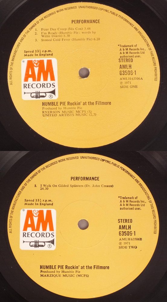 HUMBLE PIE/PERFORMANCE ROCKIN` THEFILLMORE AMLH63506 製造国:英国盤 / Media:LPMatrix:A-1 B-1 C-1 D-1外観:EX盤の状態:EX 価格(税込):¥8,250(売約済) 送料 7inch:定形外郵便 360円~LP:定形外郵便 660円~送料は、注文の最終画面で確認頂けます。 > > HUMBLE PIE/PERFORMANCE ROCKIN` THEFILLMORE 外観 (EX)特記事項:上下ヘリスレ多め。背スレも多少。ジャケ表面は表ジャケ側にレコードリングスレ多少有り。見開きや裏ジャケはあまりスレ等無く良い感じです。よごれ等は少ない感じ。外観EXの共通説明:ダメージが限定的。中古品としては保存状態がよい方。シミ、ヨゴレ、スレ 少し~軽度。 盤の状態 (EX)特記事項:薄いスリキズ・スレ少しある程度。音に出そうなものもなく一見してきれいな状態です。曲間など、静かなところを中心に聴いて見ましたが、チリノイズ少ないきれいな再生具合でした。盤EXの共通説明:盤面のスリキズが薄いものが少し~軽度 音に出そうなものは無いように見える(軽微なソフトティック音は除く)。 Tweet それぞれの画像をクリックすると、大きい写真が見られます こちらの商品もお勧めです 16,500円 GRAPEFRUIT / DEEP WATER 8,250円 MARK BOLAN / BOLAN`S ZIP GUN 8,250円 FREE / AT LAST 3,850円 BAD COMPANY / RUN WITH THE PACK 4,400円 BAD COMPANY / RUN WITH THE PACK 3,300円 ABBA / GREATEST HITS 3,300円 ABBA / GREATEST HITS 3,520円 PIGEON PIE / LIEUTENANT PIGEON