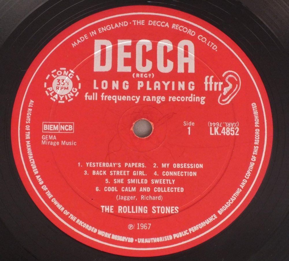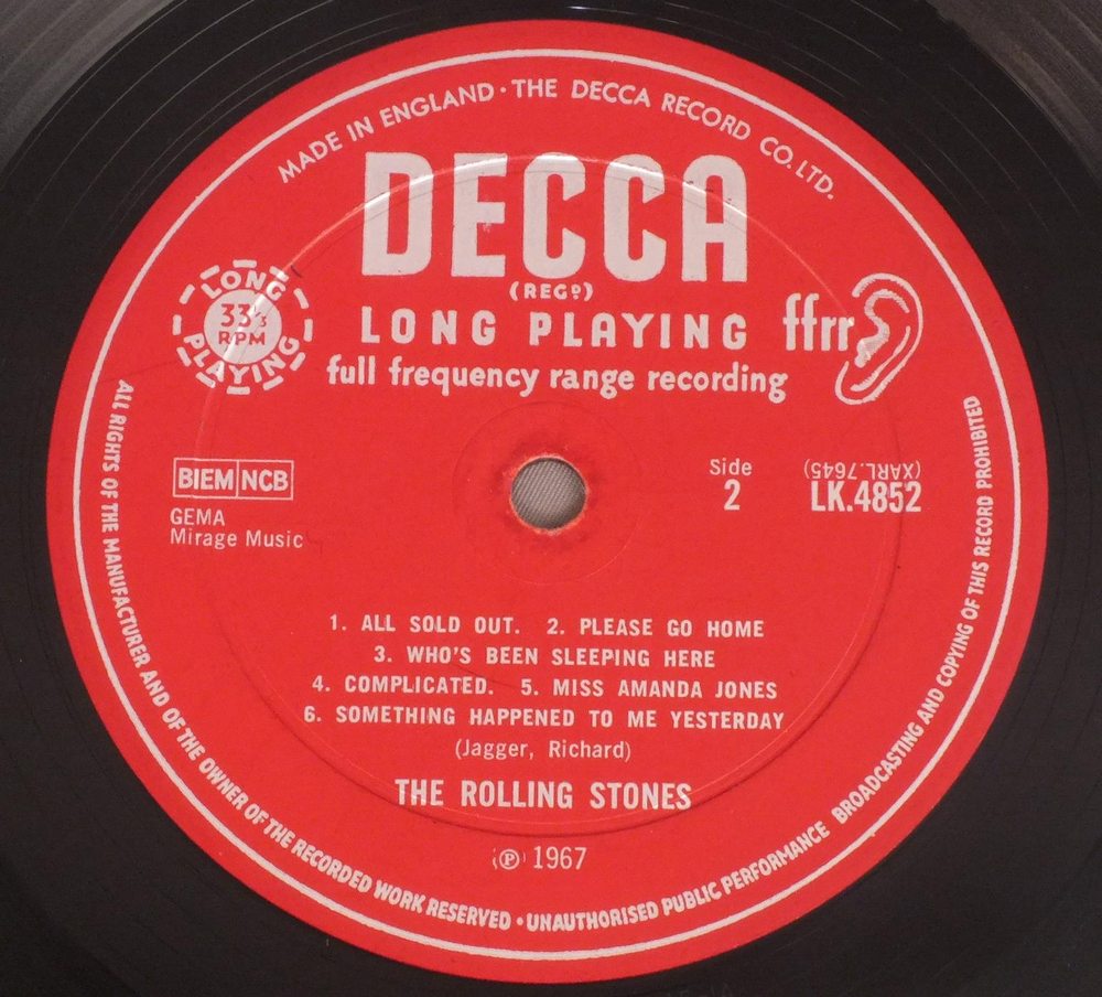 ROLLING STONES/BETWEEN THE BUTTONS MONO LK4852 製造国:英国盤 / Media:LPMatrix:2A 1A外観:EX盤の状態:VG 価格(税込):¥3,850(売約済) 送料 7inch:定形外郵便 360円~LP:定形外郵便 660円~送料は、注文の最終画面で確認頂けます。 > > ROLLING STONES/BETWEEN THE BUTTONS MONO 外観 (EX)特記事項:表ジャケのコーティングのヨレシワは背やレコード取り出し口に多少程度で全体的には少ない印象。スレやスリキズ等も薄いものが中心です。裏ジャケ側もよごれは少なめ。外観EXの共通説明:ダメージが限定的。中古品としては保存状態がよい方。シミ、ヨゴレ、スレ 少し~軽度。 盤の状態 (VG)特記事項:B面3曲目の冒頭部分に針飛び直しキズ有り。10回転ぐらいプチでます。また、Stereo針の針圧高いもの等や装置によっては針飛びします。モノ針は大丈夫そうですが、装置によっては微妙かと思います。他の曲の箇所はあまりスリキズ等濃いもの無く音的には特段問題はないように思います。盤VGの共通説明:盤面にスリキズがやや有り、音に出そうなものも所々有る。 Tweet それぞれの画像をクリックすると、大きい写真が見られます こちらの商品もお勧めです 2,750円 ROLLING STONES / EMOTIONAL RESCUE + POSTEREMOTIONAL RESCUE ポスター付