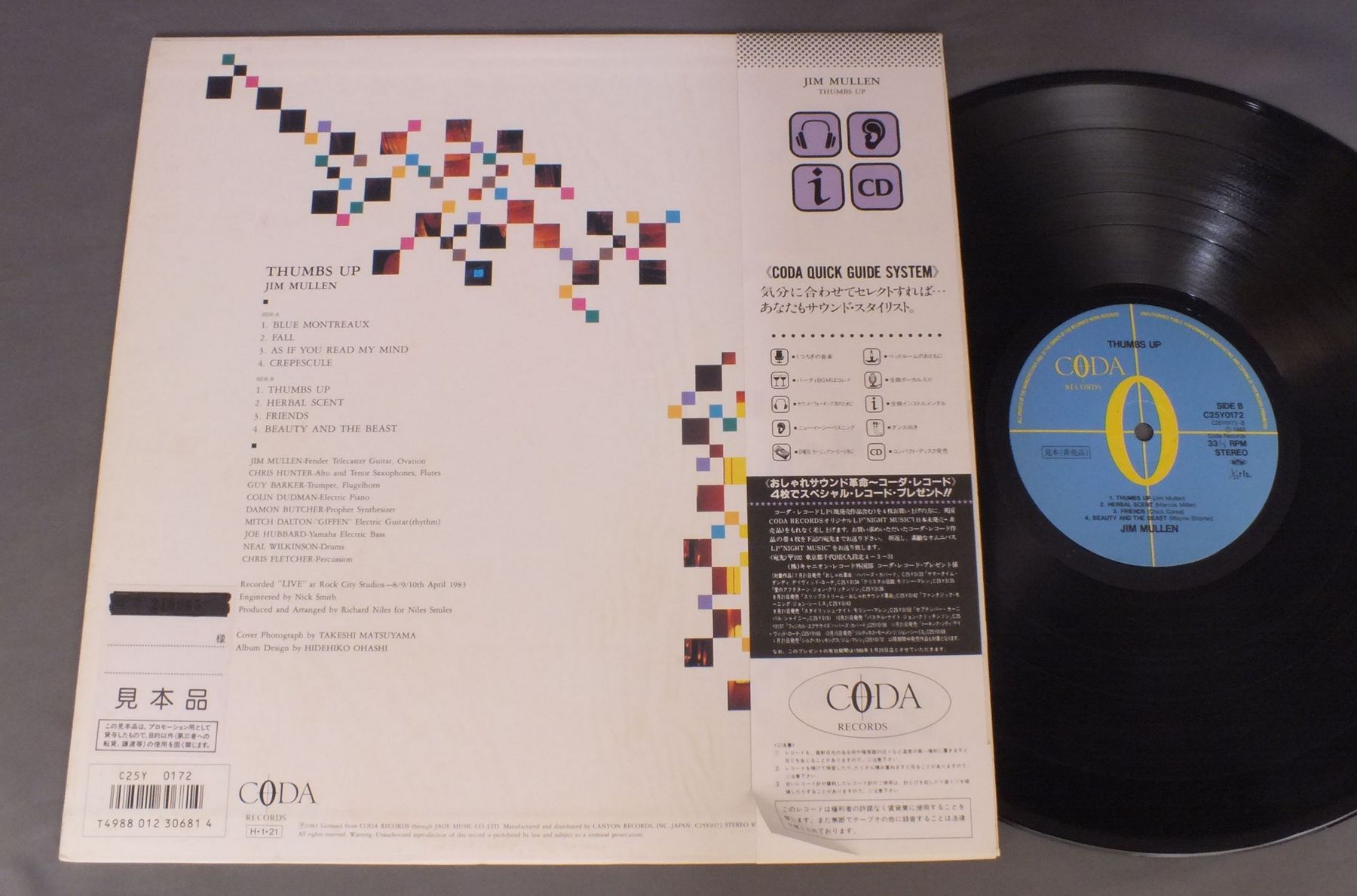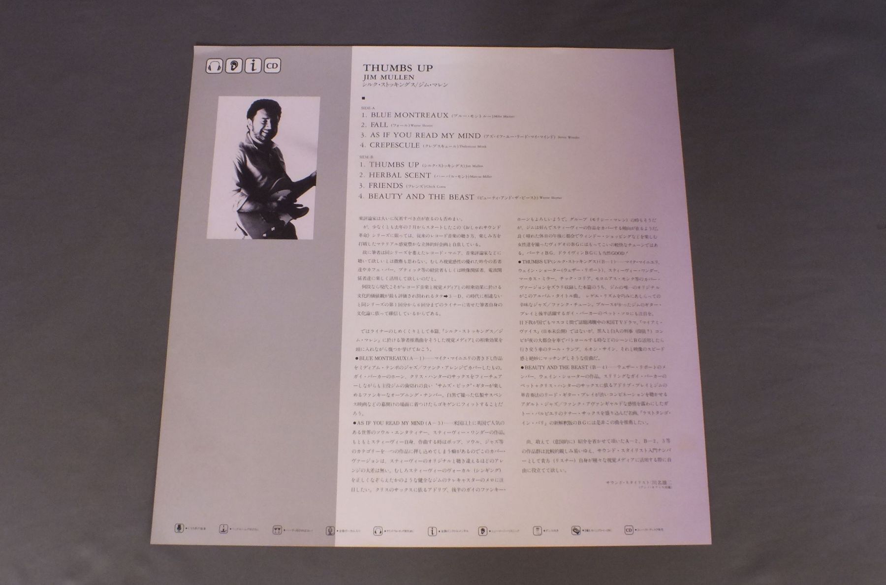 JIM MULLENジム・マレン/THUMBS UP シルク・ストッキングス C25Y0172 製造国:日本盤 / Media:LP外観:EX-盤の状態:EX+帯:EX+ 価格(税込):¥2,827(売約済) 送料 7inch:定形外郵便 360円~LP:定形外郵便 660円~送料は、注文の最終画面で確認頂けます。 > > JIM MULLEN/THUMBS UP 外観 (EX-)特記事項:シミ有り外観EX-の共通説明:ダメージ軽度~多少。 中古品としては普通の状態。シミ、ヨゴレ、スレなど軽く~多少。 盤の状態 (EX+)特記事項:極薄いスリキズ・スレ少し。一見してきれいな状態です。盤EX+の共通説明:盤面の極薄いスリキズ、スレ少し程度 音に出そうなものは無いように見える(極軽微なソフトティック音は除く)。 帯の状態 (EX+):特記なし。 その他:見本盤 Tweet それぞれの画像をクリックすると、大きい写真が見られます こちらの商品もお勧めです 1,210円 ENGELBERT HUMPERDINCKエンゲルベルト・フンパーディンク / MY LOVEマイ・ラヴ 990円 SHAUN CASSIDYショーン・キャシディ / ROOM SERVICEルーム・サーヴィス 1,210円 TACOタコ / LET`S FACE THE MUSICフェイス・ザ・ミュージック 990円 SALVATORE ADAMOサルヴァトーレ・アダモ / DELUXE IN SALVATORE ADAMOデラックス イン サルヴァトーレ・アダモ 880円 TONY BENETTトニー・ベネット / BEAT OF MY HEARTビート・オブ・マイ・ハード 660円 BERTIE HIGGINSバーティ・ヒギンズ / JUST ANOTHER DAY IN PARADISEカサブランカ 770円 DON HOドン・ホー / DON HO LIVE AT THE POLYNESIAN PALACEドン・ホー・ライヴ・アット・ザ・ポリネシアン・パレス 770円 TOM ROBINSONトム・ロビンソン / STILL LOVING YOUスティル・ラヴィング・ユー