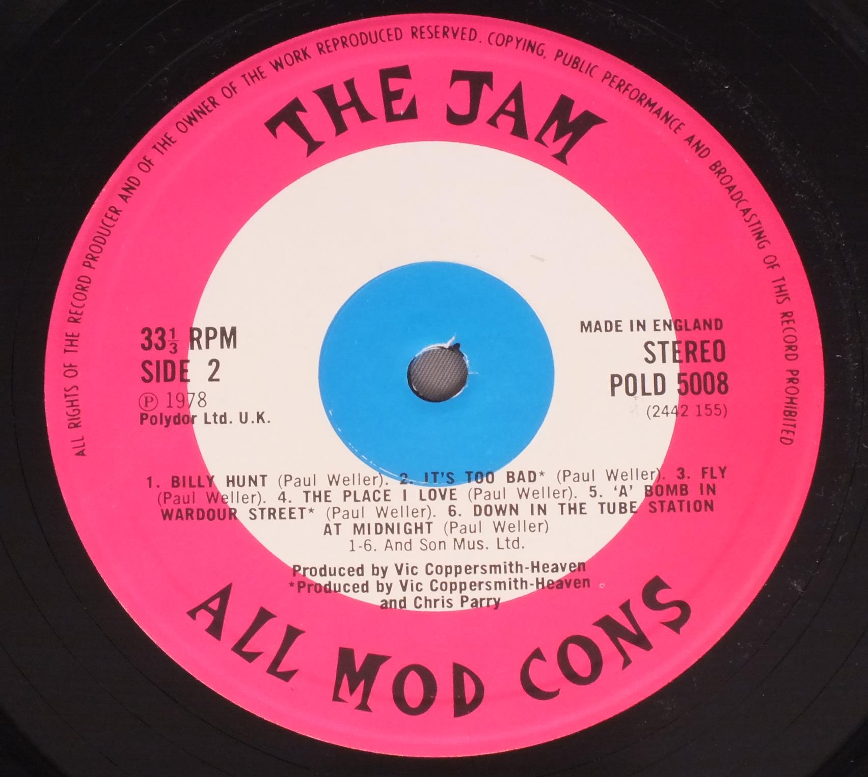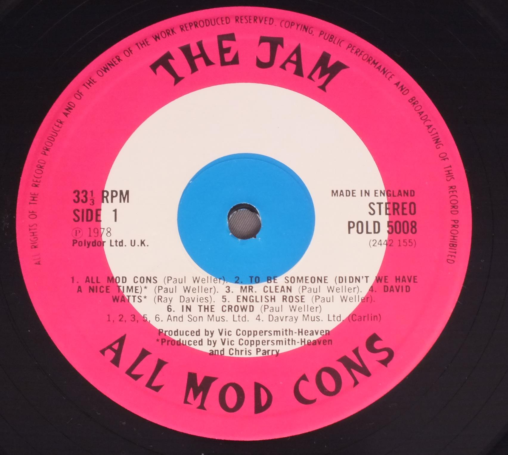 JAM/ALL MOD CONS POLD5008 製造国:英国盤 / Media:LPMatrix:A//1 B//1外観:EX盤の状態:EX 価格(税込):¥4,400(売約済) 送料 7inch:定形外郵便 360円~LP:定形外郵便 660円~送料は、注文の最終画面で確認頂けます。 > > JAM/ALL MOD CONS 外観 (EX)特記事項:角スレが少々。表裏ジャケ共に全体的にスレやスリキズ、よごれ等の少ないなかなかきれいな状態です。オリジナルインナーもよごれやヨレの無いしっかりした状態。抜けも無いです。外観EXの共通説明:ダメージが限定的。中古品としては保存状態がよい方。シミ、ヨゴレ、スレ 少し~軽度。 盤の状態 (EX)特記事項:薄いスリキズ・スレ少しある程度。音に出そうなものもなく一見してきれいな状態です。曲間など、静かなところを中心に聴いて見ましたが、チリノイズ少ないきれいな再生具合でした。盤EXの共通説明:盤面のスリキズが薄いものが少し~軽度 音に出そうなものは無いように見える(軽微なソフトティック音は除く)。 Tweet それぞれの画像をクリックすると、大きい写真が見られます こちらの商品もお勧めです