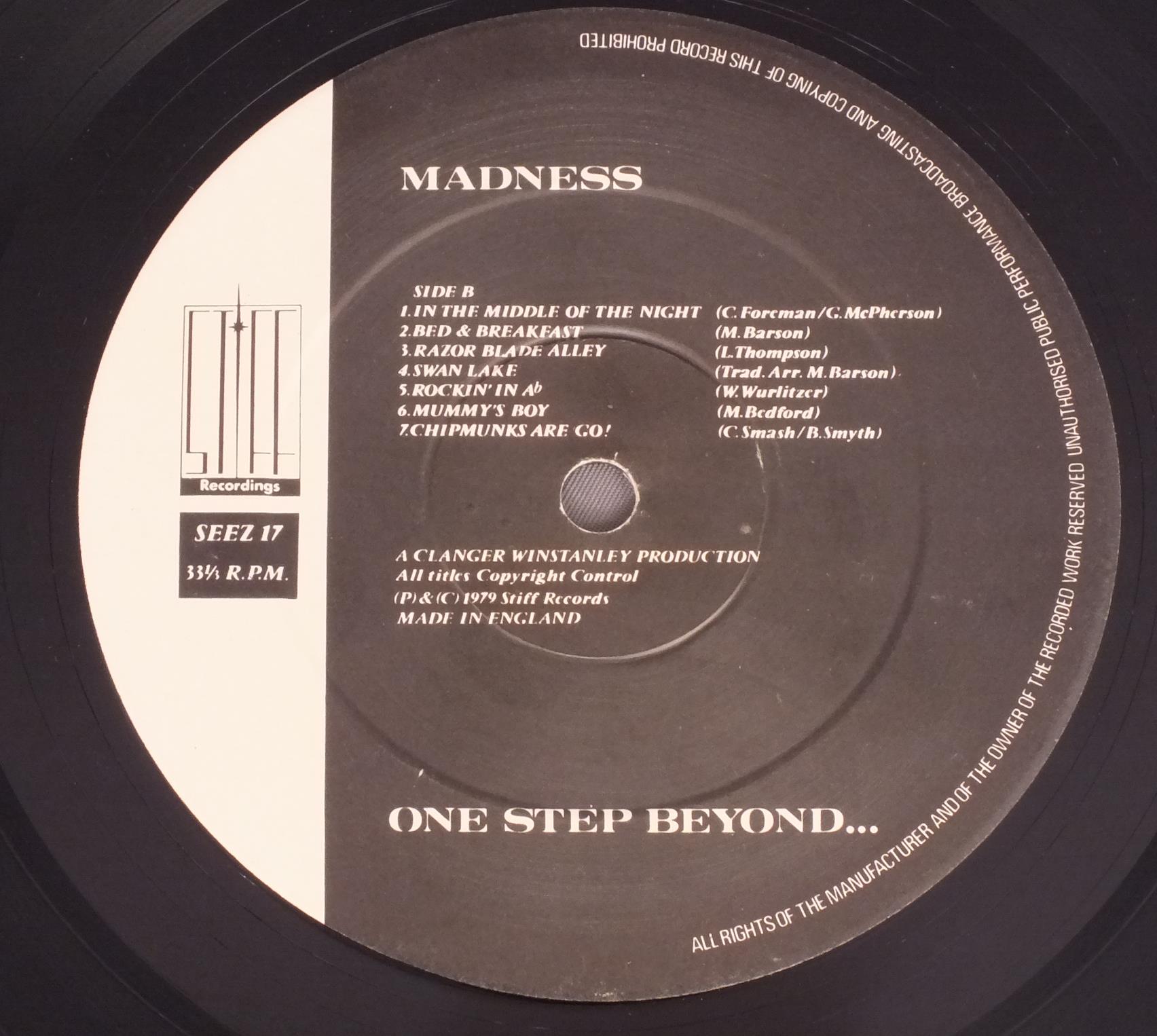 MADNESS/ONE STEP BEYOND SEEZ17 製造国:英国盤 / Media:LPMatrix:A2 B5外観:EX盤の状態:EX 価格(税込):¥4,400(売約済) 送料 7inch:定形外郵便 360円~LP:定形外郵便 660円~送料は、注文の最終画面で確認頂けます。 > > MADNESS/ONE STEP BEYOND 外観 (EX)特記事項:表裏ジャケ共によごれ等少ないきれいな状態。スレやスリキズ等も少ないと思います。オリジナルインナーに薄いシミ軽少し有り。抜けは無いです。外観EXの共通説明:ダメージが限定的。中古品としては保存状態がよい方。シミ、ヨゴレ、スレ 少し~軽度。 盤の状態 (EX)特記事項:薄いスリキズ・スレ軽くある感じ。ほとんどが軽微なものの様子です。曲間など、静かなところを中心に聴いて見ましたが、チリプチ軽度で音もしっかり鳴っていました。盤EXの共通説明:盤面のスリキズが薄いものが少し~軽度 音に出そうなものは無いように見える(軽微なソフトティック音は除く)。 Tweet それぞれの画像をクリックすると、大きい写真が見られます こちらの商品もお勧めです 7,700円 ABRASIVE WHEELS / WHEN THE PUNKS GO MARCHING INサイン付 3,520円 STRANGLERS / LIVE ( X CERT ) 4,400円 STRAPS / STRAPS 3,080円 POLECATS WITH ROBIN SCOTT / CULT HEROES 4,950円 JOLT / JOLT 4,400円 ACCURSED / LAUGHING AT YOU 3,520円 STRANGLERS / AURAL SCULPTURE 3,850円 DR FEELGOOD / BE SEENING YOU