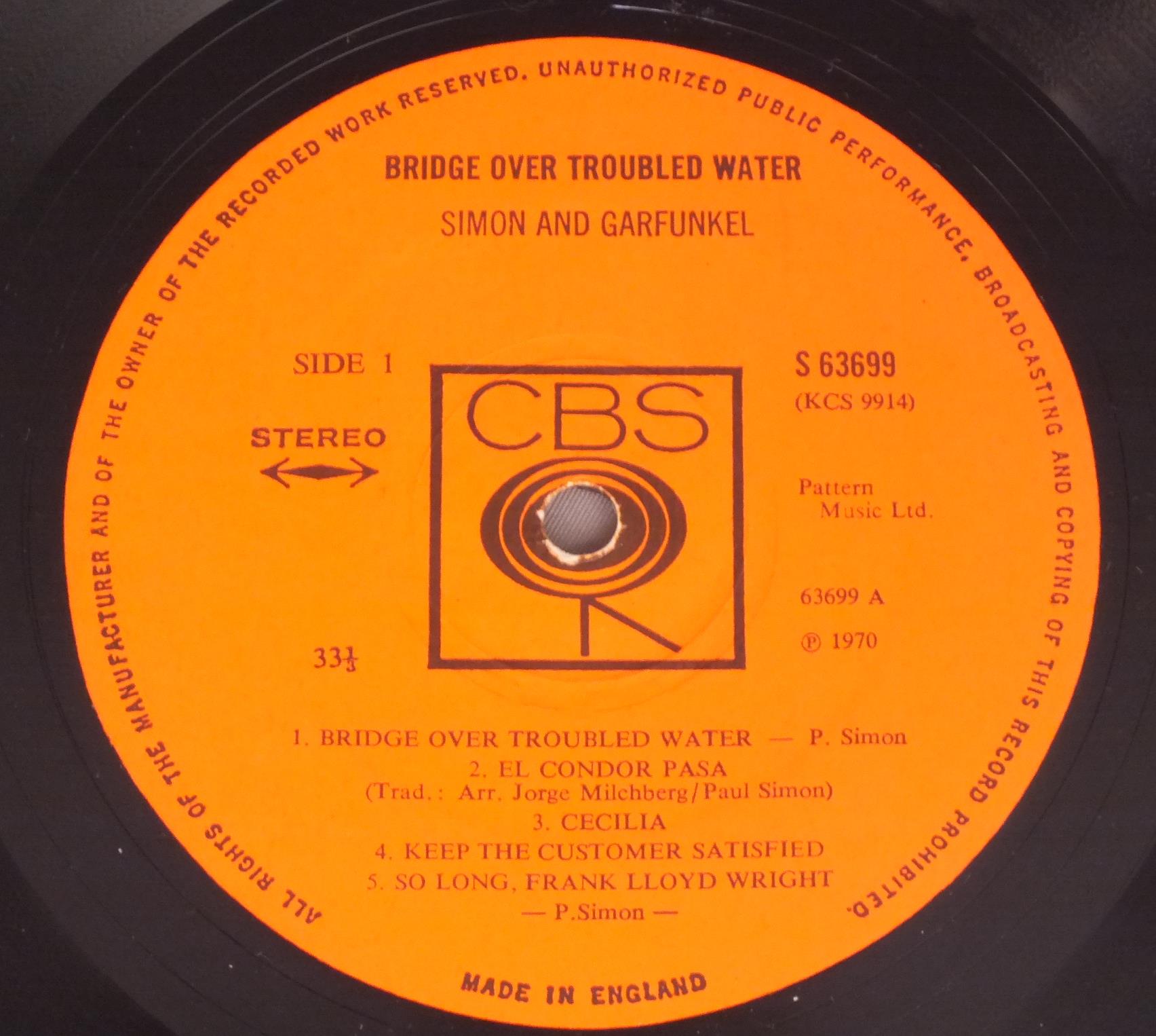 SIMON & GARFUNKEL/BRIDGE OVER TROUBLE WATER初回マト 63699 製造国:英国盤 / Media:LPMatrix:A1 B1外観:EX盤の状態:EX- 価格(税込):¥6,050(売約済) 送料 7inch:定形外郵便 360円~LP:定形外郵便 660円~送料は、注文の最終画面で確認頂けます。 > > SIMON & GARFUNKEL/BRIDGE OVER TROUBLE WATER 外観 (EX)特記事項:表ジャケが厚手のコーティング仕様。初期ジャケです。表ジャケはコーティングのヨレシワも少なめで、スレやスリキズ、よごれ等も全体的に薄い感じ。裏ジャケ側は薄いよごれやスレ軽多少有り。外観EXの共通説明:ダメージが限定的。中古品としては保存状態がよい方。シミ、ヨゴレ、スレ 少し~軽度。 盤の状態 (EX-)特記事項:薄いスリキズ・細かい表面スレ多少ある感じ。殆どが軽微なものの様子です。所々聴いてみましたが、チリプチは軽度で音もしっかりなっています。盤EX-の共通説明:盤面のスリキズが多少有り。音に出そうなものは殆ど無いように見える~さほど気にならないぐらいの軽いプチ数カ所程度。 Tweet それぞれの画像をクリックすると、大きい写真が見られます こちらの商品もお勧めです 2,750円 RASCALS / TIME PEACE RASCALS GREATEST HITS 6,050円 ALLMAN BROTHERS BAND / WIPE THE WINDOWS 4,400円 AREA CODE 615 / TRIP IN THE COUNTRY 7,700円 BLUE JAG / SAME TITLE 4,950円 BIG BROTHER AND THE HOLDING CO / BE A BROTHER 5,500円 HUMIMGBIRD / HUMIMNGBIRD 9,900円 BIG BROTHER AND HOLDING COMPAMY / SAME TITLE / MONO