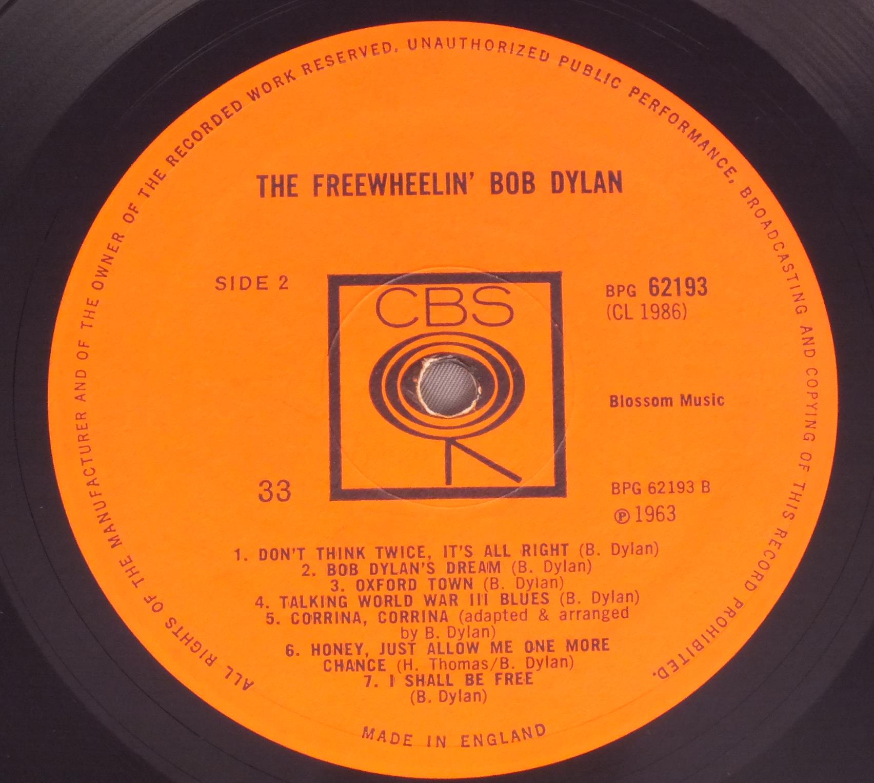 BOB DYLAN/FREEWHEELIN` MONOザラザラレーベル BPG62193 製造国:英国盤 / Media:LPMatrix:A//1 B//1外観:EX-盤の状態:EX 価格(税込):¥13,200(売約済) 送料 7inch:定形外郵便 360円~LP:定形外郵便 660円~送料は、注文の最終画面で確認頂けます。 > > BOB DYLAN/FREEWHEELIN` MONO 外観 (EX-)特記事項:背スレやヘリスレ多少有り。表ジャケは厚手のコーティング仕様で全体的にコーティングのヨレシワは少なめ。スレやスリキズ等も薄い感じです。レコード取り出し口淵にヨレ多少有り。裏ジャケはやはりレコード取り出し口付近に薄いよごれ有り。全体的には薄い経年風のよごれ。外観EX-の共通説明:ダメージ軽度~多少。 中古品としては普通の状態。シミ、ヨゴレ、スレなど軽く~多少。 盤の状態 (EX)特記事項:薄いスリキズ・スレ軽くある感じ。ほとんどが軽微なものの様子です。曲間など、静かなところを中心に聴いて見ましたが、チリノイズ少ない綺麗な再生具合でした盤EXの共通説明:盤面のスリキズが薄いものが少し~軽度 音に出そうなものは無いように見える(軽微なソフトティック音は除く)。 その他:ザラザラレーベル Tweet それぞれの画像をクリックすると、大きい写真が見られます こちらの商品もお勧めです 7,150円 BOB DYLAN / SELF PORTRAIT 6,050円 BOB DYLAN / PLANET WAVES 6,600円 BOB DYLAN / NEW MORNING 3,850円 BOB DYLAN / PAT GARRETT & BILLY THE KID
