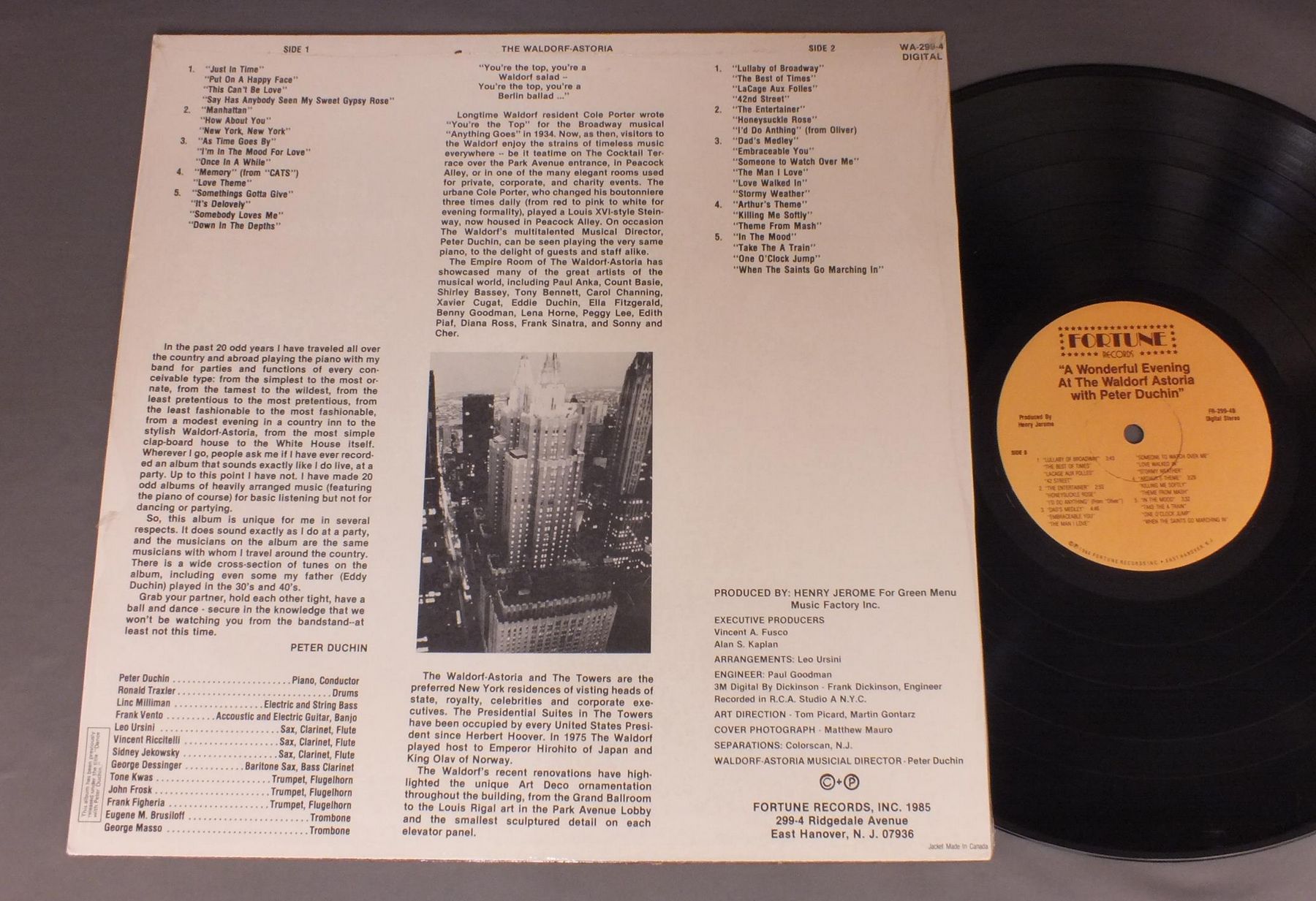 PETER DUCHIN AND HIS ORCHESTRA/WONDERFUL EVENING AT THE WALDORF-ASTORIA WA299 4 製造国:カナダ盤 / Media:LP外観:EX+盤の状態:EX+ 価格(税込):¥550(売約済) 送料 7inch:定形外郵便 360円~LP:定形外郵便 660円~送料は、注文の最終画面で確認頂けます。 > > PETER DUCHIN AND HIS ORCHESTRA/WONDERFUL EVENING AT THE WALDORF-ASTORIA 盤の状態 (EX+)特記事項:薄いスリキズ・スレ少し。一見してきれいな状態です。盤EX+の共通説明:盤面の極薄いスリキズ、スレ少し程度 音に出そうなものは無いように見える(極軽微なソフトティック音は除く)。 Tweet それぞれの画像をクリックすると、大きい写真が見られます こちらの商品もお勧めです 1,320円 LIONEL HAMPTON AND HIS GIANTS / LIVE IN EMMEN - HOLLAND 990円 FRANKIE CARLE / GOLDEN TOUCH 770円 LIONEL HAMPTON / BRAT OF THE BIG BANDS GOOD VIBES 550円 DICK HAYMES VIC DAMONE etc / POP SINGERS ON THE AIR! 770円 LES BROWN & HIS BAND OF RENOWN / SWINGIN` SOUND 660円 LOUIE BELLSON & HIS JAZZ ORCHESTRA / SAME TITLE 1,320円 YANK LAWSON AND BOB HAGGART / WORLD`S GREATEST JAZZ BAND 1,210円 JIMMY McPARTLAND - WILD BILL DAVISON etc / DIXIELAND AT CARNEGIE HALL