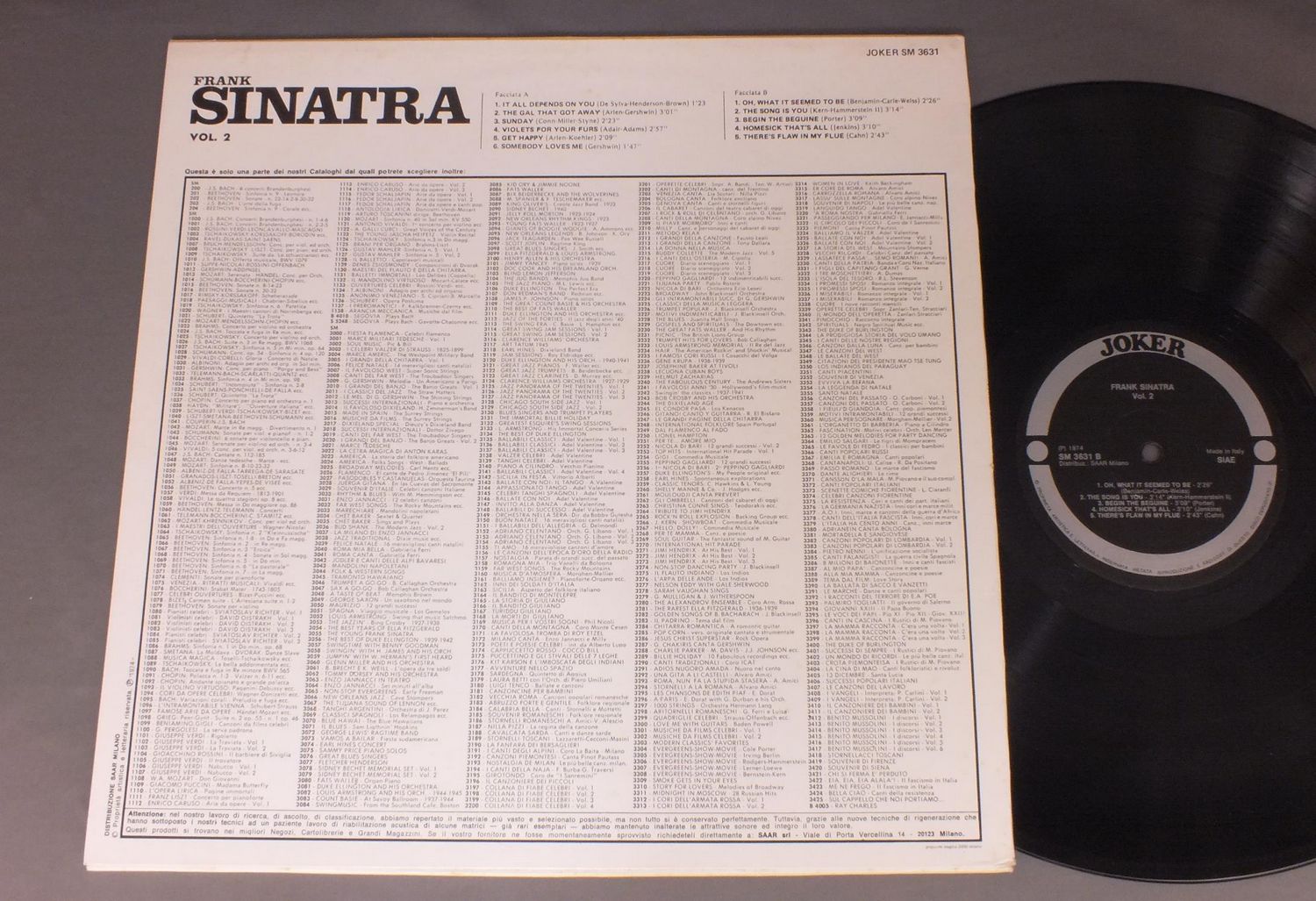 FRANK SINATRA/FRANK SINATRA VOL.2 SM3631 製造国:英国盤 / Media:LP外観:EX盤の状態:EX 価格(税込):¥550(売約済) 送料 7inch:定形外郵便 360円~LP:定形外郵便 660円~送料は、注文の最終画面で確認頂けます。 > > FRANK SINATRA/FRANK SINATRA VOL.2 外観 (EX)特記事項:ジャケ表面に薄いシミ少し有り。外観EXの共通説明:ダメージが限定的。中古品としては保存状態がよい方。シミ、ヨゴレ、スレ 少し~軽度。 盤の状態 (EX)特記事項:薄いスリキズ・スレ軽くある感じ。軽微なものの様子です。盤EXの共通説明:盤面のスリキズが薄いものが少し~軽度 音に出そうなものは無いように見える(軽微なソフトティック音は除く)。 Tweet それぞれの画像をクリックすると、大きい写真が見られます こちらの商品もお勧めです 770円 MILDRED BAILEY-TERRY ALLEN / RED NORVO&HIS ORCHESTRA 1938 1,100円 KING FAMILY / KING FAMILY ALBUM 1,210円 TERESA BREWER & THE WORLD`S GREATEST JAZZ BAND / GOOD NEWS (RALPH SUTTON AUTOGRAPHED)GOOD NEWS (RALPH SUTTONサイン付) 440円 DICK HAYMES / DICK HAYMES SINGS 660円 JOAN MORRIS WILLIAM BOLCOMジョーン・モリス- ウィリアム・ボルコム / AFTER THE BALL- A TREASURY OF TURN OF THE CENTURY POPULAR SONGS舞踏会のあとで アメリカン・ヒット・ソングの黎明期 550円 MEL TORME / `ROUND MIDNIGHT 770円 SWINGLE SINGERS / GOING BAROQUE SWINGING HITS OF HANDEL 1,210円 BILLY ECKSTINE / SWINGING MR.B