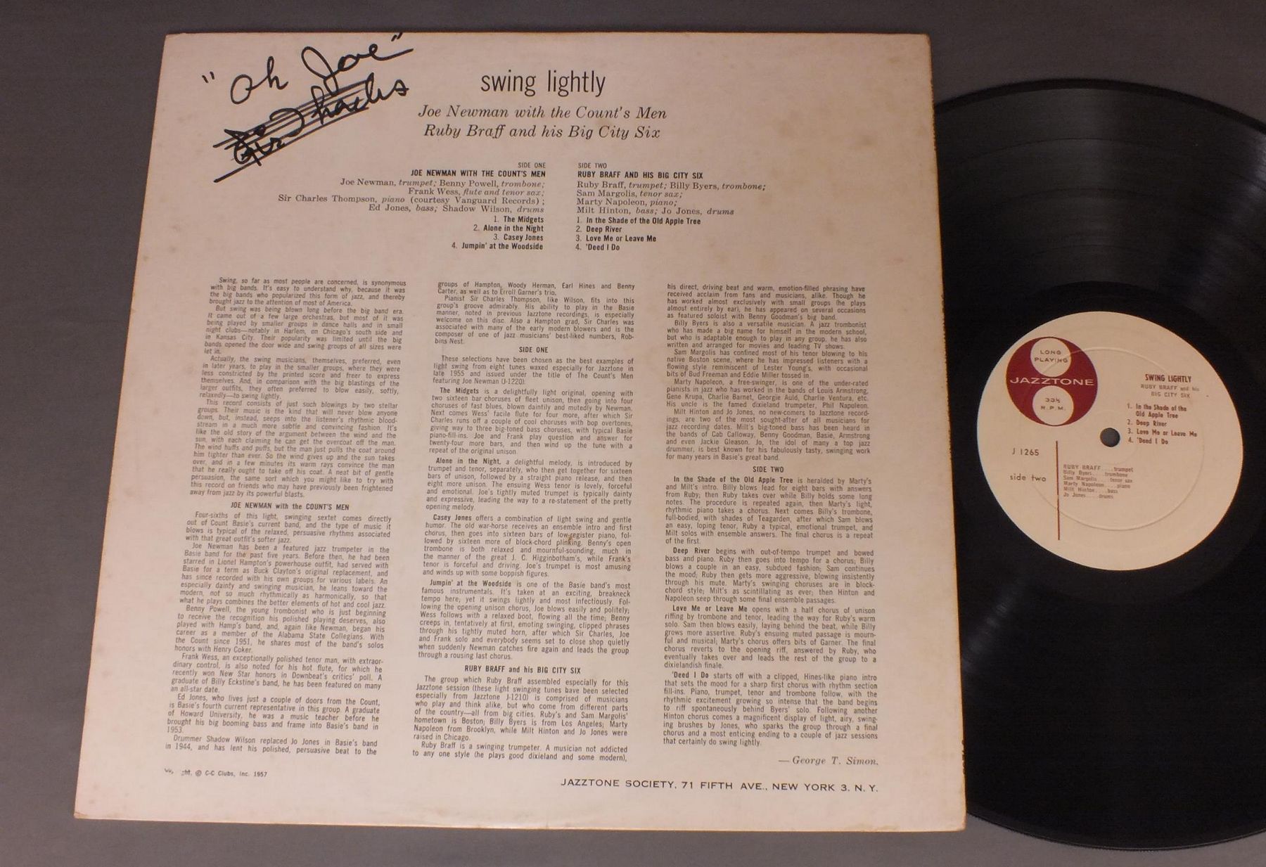 JOE NEWMAN & RUBY BRAFF/SWING LIGHTLYSIR CHARLES THOMPSONサイン付 J1265 製造国:米国盤 / Media:LP外観:EX-盤の状態:EX 価格(税込):¥1,980(売約済) 送料 7inch:定形外郵便 360円~LP:定形外郵便 660円~送料は、注文の最終画面で確認頂けます。 > > JOE NEWMAN & RUBY BRAFF/SWING LIGHTLY 外観 (EX-)特記事項:表ジャケはそうでも無いですが裏ジャケ側にシミ多いです。外観EX-の共通説明:ダメージ軽度~多少。 中古品としては普通の状態。シミ、ヨゴレ、スレなど軽く~多少。 盤の状態 (EX)特記事項:薄いスリキズ・スレ軽くある感じ。プチ出そうなところは少しだけで、ほとんどが軽微なものの様子です。盤EXの共通説明:盤面のスリキズが薄いものが少し~軽度 音に出そうなものは無いように見える(軽微なソフトティック音は除く)。 Tweet それぞれの画像をクリックすると、大きい写真が見られます こちらの商品もお勧めです 990円 BUCK CLAYTON / JAM SESSION VOL.1 AUTOGRAPHEDSIR CHARLESサイン付 1,100円 BENNY GOODMAN / ESSENTIAL 660円 SAMMY KAYE AND HIS ORCHESTRA / 22 ORIGINAL BIG BAND RECORDING 660円 DUKE ELLINGTON etc / GRANDI ORCHESTRE 770円 LIONEL HAMPTON / LIONEL HAMPTON&HIS BIG BAND `OUTRAGEOUS` 990円 FRANKIE CARLE / GOLDEN TOUCH 1,100円 LIONEL HAMPTON / ROCK ROCK ROCK 550円 BUNNY BERIGAN & ORIGINAL DIXIELAND JAZZ BAND / SATURDAY NIGHT SWING CLUB 1936
