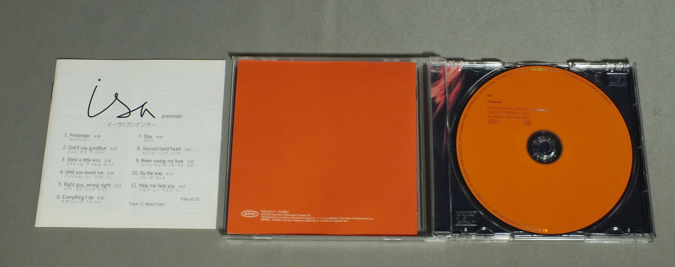 ISAイーサ/PRETENDERプリテンダー ESCA8137 製造国:日本盤 / Media:CD外観:EX+盤の状態:EX+ 価格(税込):¥330 送料 7inch:定形外郵便 360円~LP:定形外郵便 660円~送料は、注文の最終画面で確認頂けます。 レコード検索 > CLASSIC ORCH. > ISA/PRETENDER 外観 (EX+)特記事項:ヨレ、スレ少々。ヨゴレなども少しだけできれいな感じです。外観EX+の共通説明:中古としては美品、一見してきれいでダメージが軽微。シミ、ヨゴレ、スレ有っても僅か~少し。 盤の状態 (EX+)特記事項:微細なスリキズが少々。きれいな感じの盤面です。盤EX+の共通説明:盤面の極薄いスリキズ、スレ少し程度 音に出そうなものは無いように見える(極軽微なソフトティック音は除く)。 Tweet それぞれの画像をクリックすると、大きい写真が見られます こちらの商品もお勧めです 1,980円 JUDY COLLINSジュディ・コリンズ / BREAD & ROSESパンと薔薇の人生 1,650円 KATE BUSHケイト・ブッシュ / LION HEARTライオン・ハート 1,100円 KARLA BONOFFカーラ・ボノフ / RESTLESS NIGHTSささやく夜
