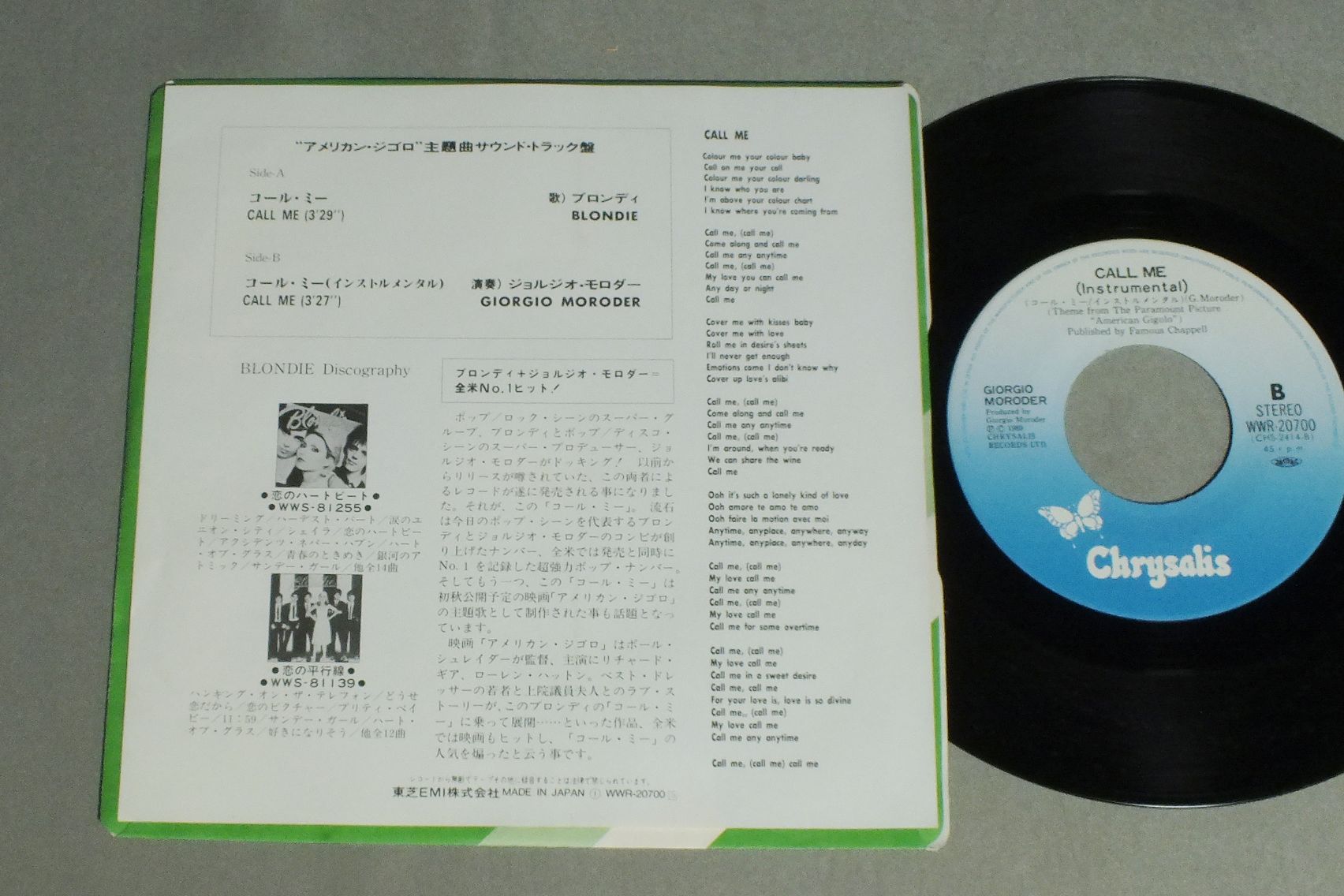 BLONDIEブロンディ/CALL MEコール・ミー WWR20700 製造国:日本盤 / Media:7inch外観:EX+盤の状態:EX 価格(税込):¥660 送料 7inch:定形外郵便 360円~LP:定形外郵便 660円~送料は、注文の最終画面で確認頂けます。 > > BLONDIE/CALL ME 外観 (EX+)特記事項:特記なし。外観EX+の共通説明:中古としては美品、一見してきれいでダメージが軽微。シミ、ヨゴレ、スレ有っても僅か~少し。 盤の状態 (EX)特記事項:薄いスリキズ・スレ軽くある感じ。殆どが軽微なものの様子です。盤EXの共通説明:盤面のスリキズが薄いものが少し~軽度 音に出そうなものは無いように見える(軽微なソフトティック音は除く)。 Tweet それぞれの画像をクリックすると、大きい写真が見られます こちらの商品もお勧めです 1,320円 KEVIN ROWL & DEXYS MIDNIGHT RUNNERSテキシーズ・ミッドナイト・ランナーズ / TOO-RYE-AY女の泪はワザモンだ!! 770円 BOOMTOWN RATSブームタウン・ラッツ / MONDO BONGOモンド・ボンゴ 1,210円 HARDCHOIRハードクワイア / HARDCHOIR華麗なる戦慄 1,320円 DEAD OR ALIVEデッド・オア・アライヴ / YOUTHQUAKEユースクエイク 1,320円 ELVIS COSTELLOエルヴィス・コステロ / GOODBYE CRUEL WORLDグッバイ・クルエル・ワールド 440円 TUBESチューブス / OUTSIDE INSIDEアウトサイド・インサイド 1,320円 ADAM AND THE ANTSアダム&ジ・アンツ / KINGS OF THE WILD FRONTIERアダムの王国 770円 ADAM AND THE ANTS / KINGS OF THE WILD FRONTIER