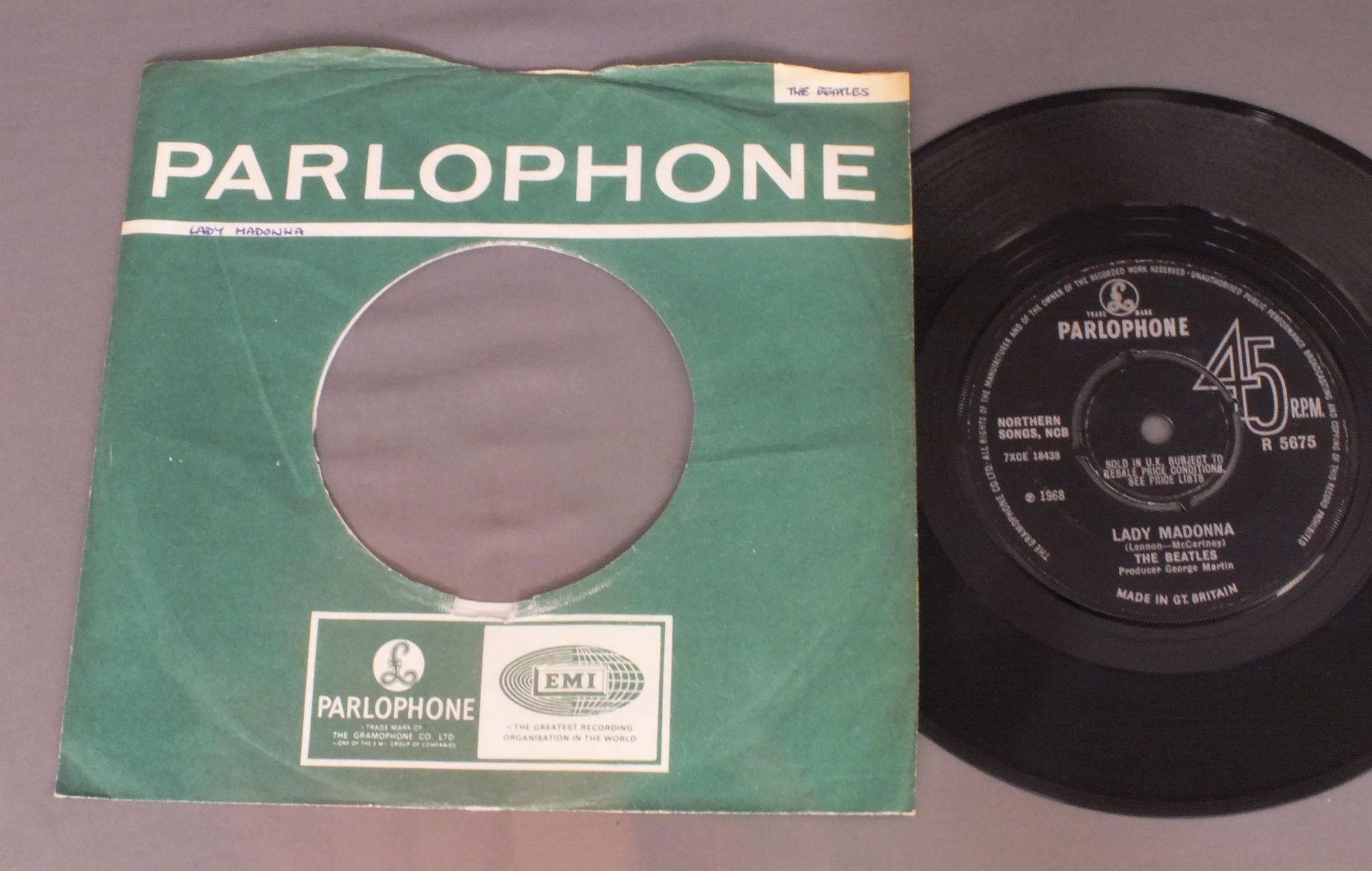 BEATLES/LADY MADONNA R5676 製造国:英国盤 / Media:7inchMatrix: -3/1/MG -2/5/AM外観:EX-盤の状態:EX 価格(税込):¥9,350(売約済) 送料 7inch:定形外郵便 360円~LP:定形外郵便 660円~送料は、注文の最終画面で確認頂けます。 レコード検索 > ALL Genre > BEATLES/LADY MADONNA 外観 (EX-)特記事項:PARLOPHNE社のカンパニースリーブ付。タイトルやレコード番号の書き込み有るのでオリジナルと思います。レコード取り出し口等にややヨレ有り。よごれなどは薄い感じ。片側に多少日焼け感ありますが、裏ジャケ側等よごれはあまり無いようです。コピーのファンクラブ申込書付。外観EX-の共通説明:ダメージ軽度~多少。 中古品としては普通の状態。シミ、ヨゴレ、スレなど軽く~多少。 盤の状態 (EX)特記事項:薄いスリキズ・スレ少しある程度。音に出そうなものもなく一見してきれいな状態です。曲間など、静かなところを中心に聴いて見ましたが、チリノイズ少ないきれいな再生具合でした。盤EXの共通説明:盤面のスリキズが薄いものが少し~軽度 音に出そうなものは無いように見える(軽微なソフトティック音は除く)。 Tweet それぞれの画像をクリックすると、大きい写真が見られます こちらの商品もお勧めです 5,500円 GEORGE HARRISON / THIRTY THREE & 1/3 5,500円 BEATLES / AT THE HOLLYWOOD BOWL 5,500円 GEORGE HARRISON / LIVING IN THE MATERIAL WORLD 5,500円 JOHN LENNON / SHAVED FISH 4,950円 JOHN & YOKO - PLASTIC ONO BANDF / SOME TIME IN NEW YORK CITY