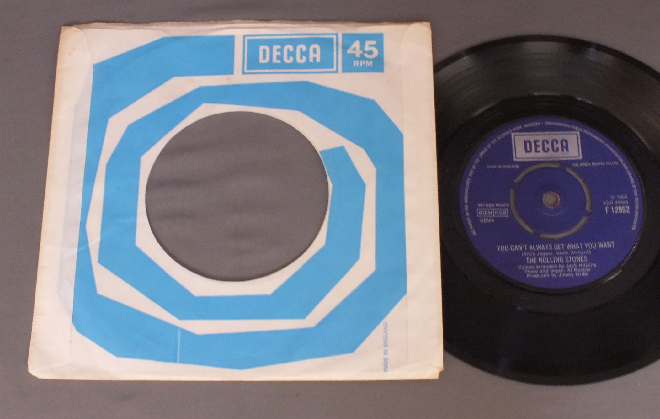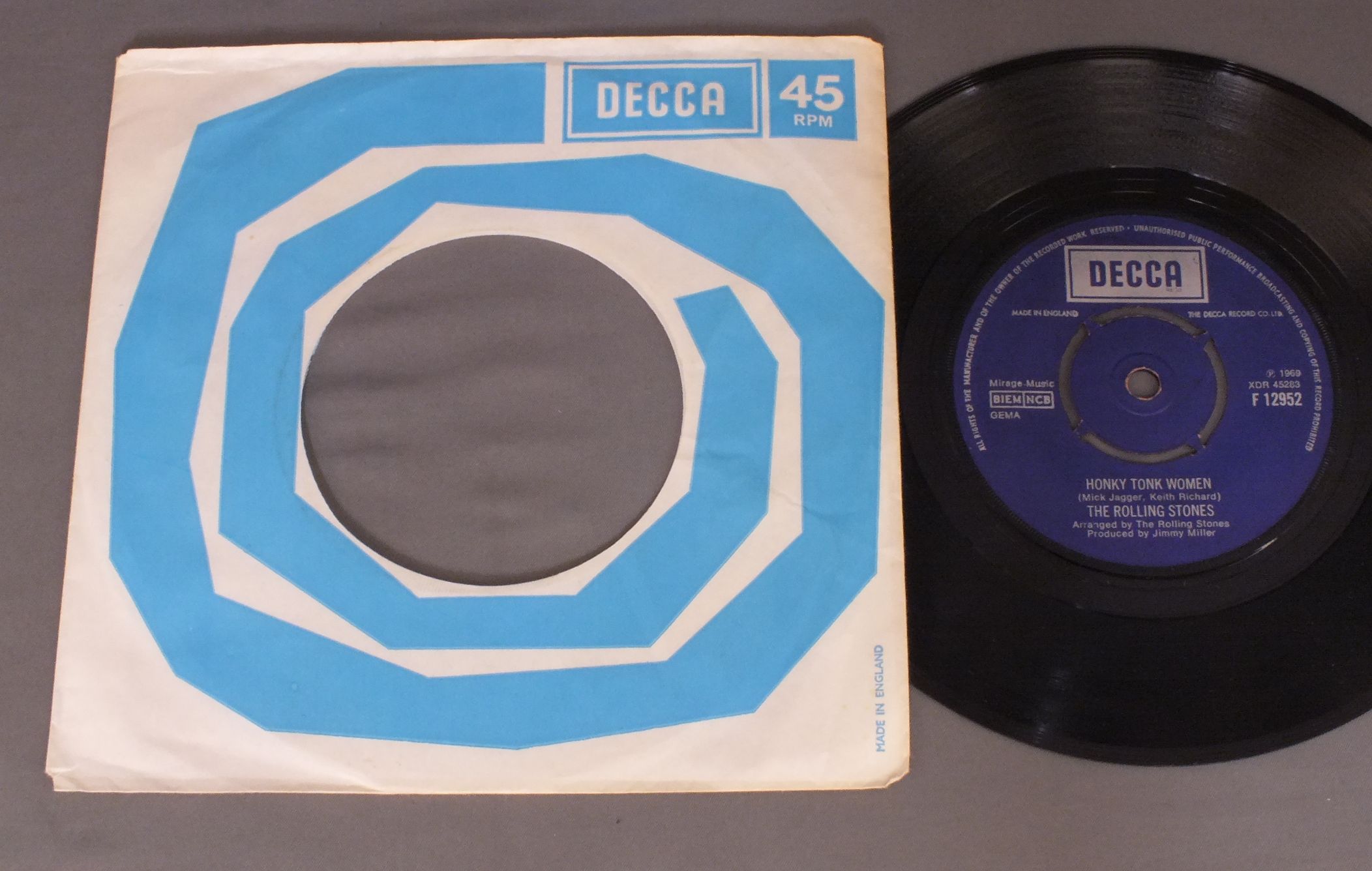 ROLLING STONES/HONKY TONK WOMEN F12953 製造国:英国盤 / Media:7inchMatrix:1C 2C外観:EX盤の状態:EX 価格(税込):¥6,050(売約済) 送料 7inch:定形外郵便 360円~LP:定形外郵便 660円~送料は、注文の最終画面で確認頂けます。 レコード検索 > ALL Genre > ROLLING STONES/HONKY TONK WOMEN 外観 (EX)特記事項:DECCA社のカンパニースリーブ付。片側に多少日焼け感軽有りますが、全体的にヨレやよごれ等あまり無いきれいな状態。外観EXの共通説明:ダメージが限定的。中古品としては保存状態がよい方。シミ、ヨゴレ、スレ 少し~軽度。 盤の状態 (EX)特記事項:薄いスリキズ・スレ軽く有る感じ。殆どが軽微なものの様子で、きれいな印象。曲間など、静かなところを中心に聴いて見ましたが、チリノイズ少ないきれいな再生具合でした。盤EXの共通説明:盤面のスリキズが薄いものが少し~軽度 音に出そうなものは無いように見える(軽微なソフトティック音は除く)。 Tweet それぞれの画像をクリックすると、大きい写真が見られます こちらの商品もお勧めです 2,750円 ROLLING STONES / EMOTIONAL RESCUE + POSTEREMOTIONAL RESCUE ポスター付