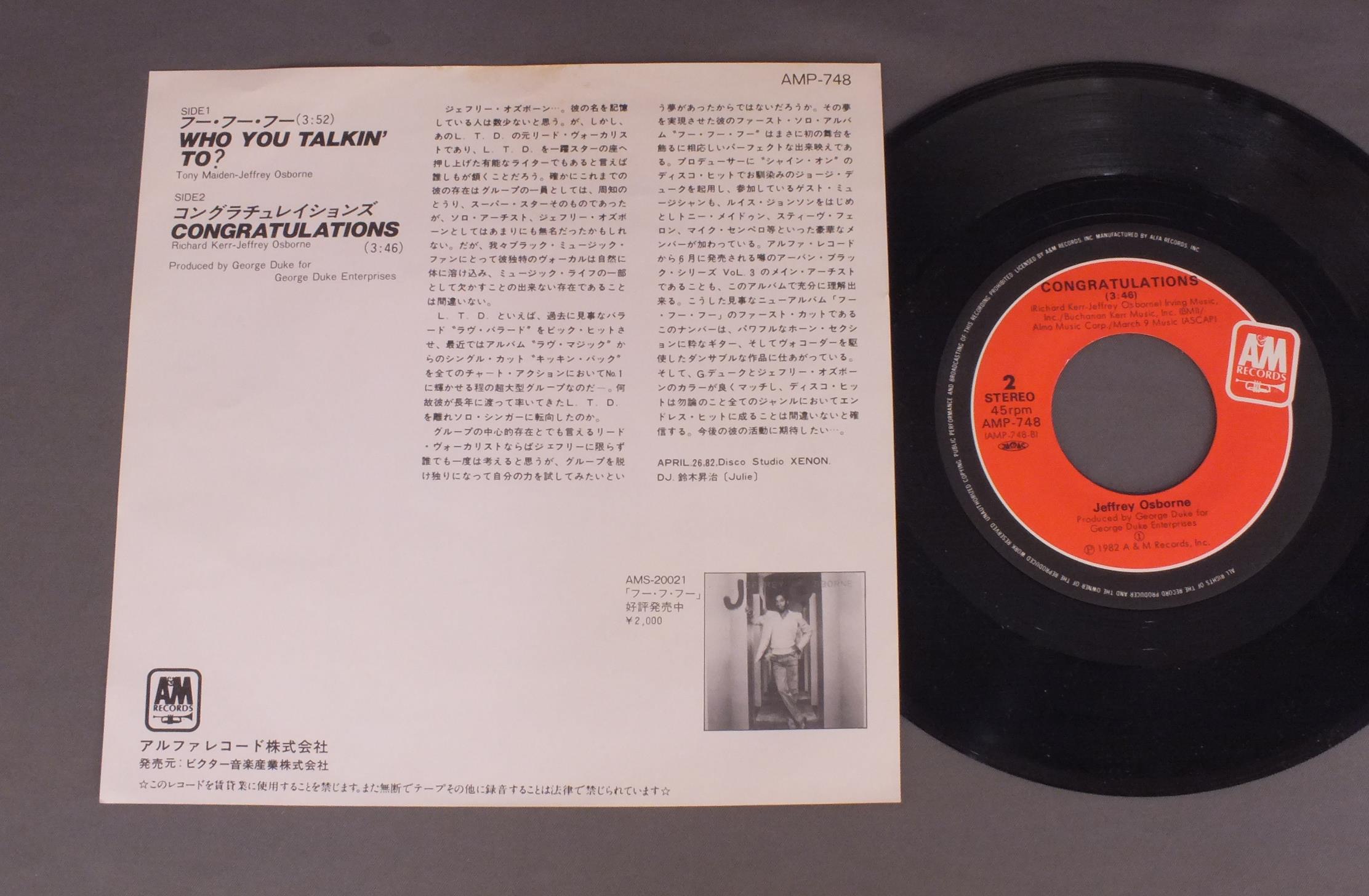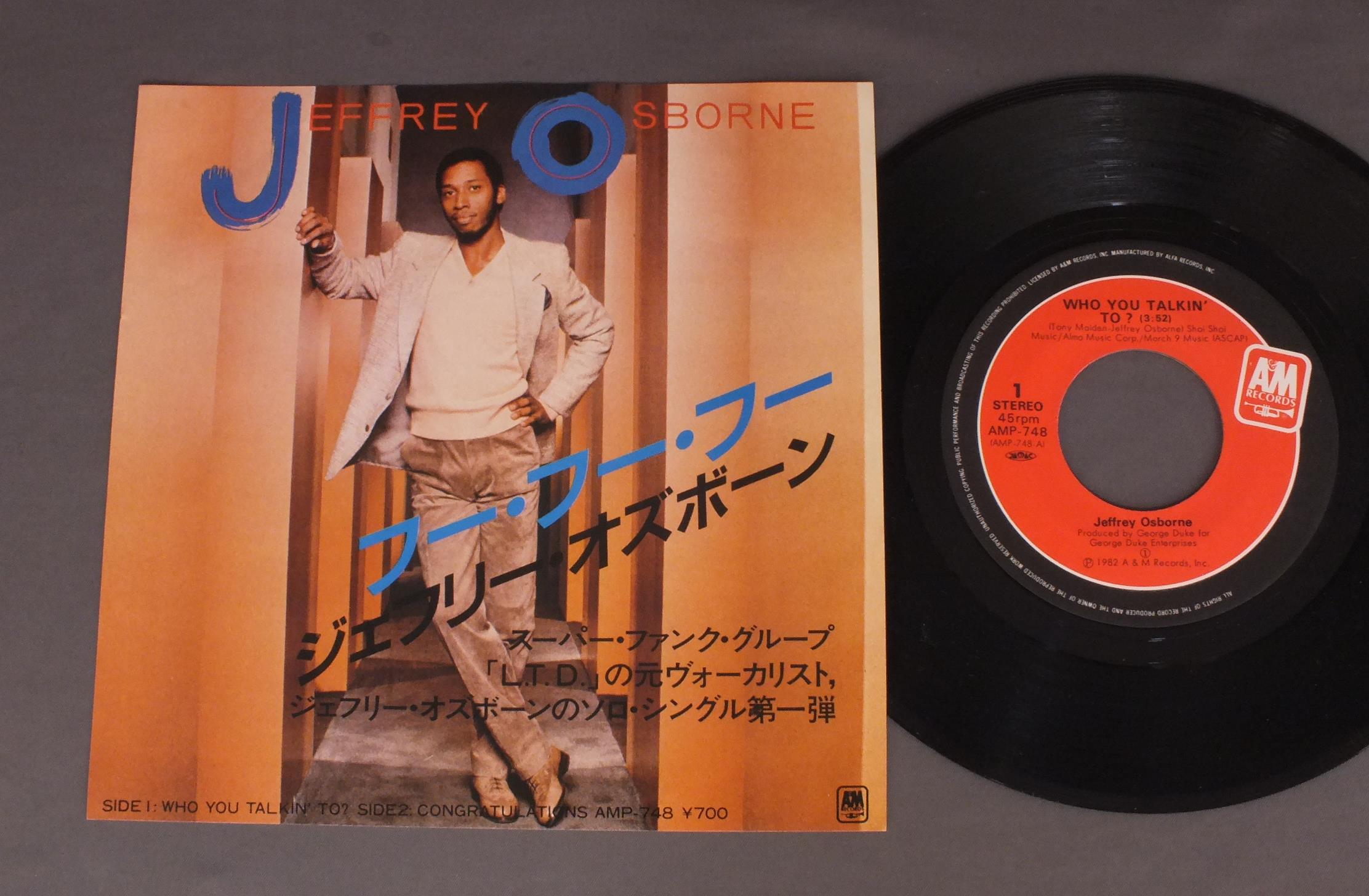 JEFFREY OSBORNEジェフリー・オズボーン/WHO YOU TALKIN` TO ?フー・フー・フー AMP748 製造国:日本盤 / Media:7inch外観:EX+盤の状態:EX+ 価格(税込):¥660 送料 7inch:定形外郵便 360円~LP:定形外郵便 660円~送料は、注文の最終画面で確認頂けます。 レコード検索 > SOUL > JEFFREY OSBORNE/WHO YOU TALKIN` TO ? 外観 (EX+)特記事項:特記なし。外観EX+の共通説明:中古としては美品、一見してきれいでダメージが軽微。シミ、ヨゴレ、スレ有っても僅か~少し。 盤の状態 (EX+)特記事項:薄いスリキズ・スレ少し。一見してきれいな状態です。盤EX+の共通説明:盤面の極薄いスリキズ、スレ少し程度 音に出そうなものは無いように見える(極軽微なソフトティック音は除く)。 Tweet それぞれの画像をクリックすると、大きい写真が見られます こちらの商品もお勧めです 1,210円 TEMPTATIONSテンプテーションズ / REUNION再会 1,320円 SMOKEY ROBINSONスモーキー・ロビンソン / BEING WITH YOUビーイング・ウィズ・ユー 1,210円 FOUR TOPSフォー・トップス / BACK WHERE I BELONGバック・ホェア・アイ・ビロング 1,320円 GRAND MASTER FLASHグランド・マスター・フラッシュ / THEY SAID IT COULDN`T BE DONEサイン・オブ・ザ・タイムス 660円 AL GREENアル・グリーン / I`LL RISE AGAINアイル・ライズ・アゲイン 770円 DAZZ BAND / ON THE ONE 1,320円 EARTH. WIND & FIREアース・ウインド & ファイアー / FACESフェイセス 880円 SMOKEY ROBINSONスモーキー・ロビンソン / TOUCH THE SKYタッチ・ザ・スカイ