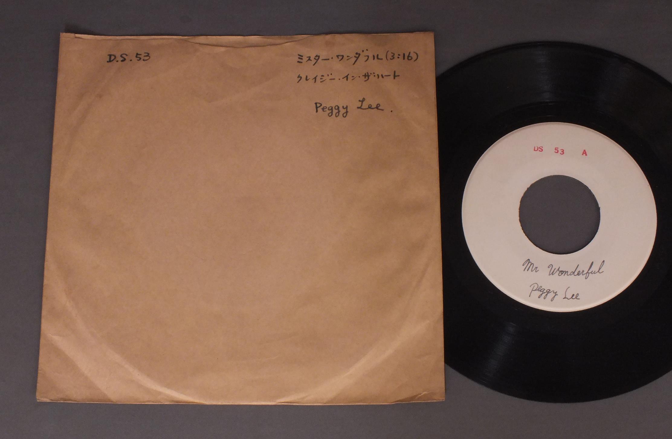 PEGGY LEE/MR. WONDERFULミスター・ワンダフル DS53 製造国:米国盤 / Media:7inch盤の状態:EX 価格(税込):¥330(売約済) 送料 7inch:定形外郵便 360円~LP:定形外郵便 660円~送料は、注文の最終画面で確認頂けます。 > > PEGGY LEE/MR. WONDERFUL 盤の状態 (EX)特記事項:薄いスリキズ・スレ軽くある感じ。軽微なものの様子です。盤EXの共通説明:盤面のスリキズが薄いものが少し~軽度 音に出そうなものは無いように見える(軽微なソフトティック音は除く)。 Tweet それぞれの画像をクリックすると、大きい写真が見られます こちらの商品もお勧めです 440円 DICK HAYMES / DICK HAYMES SINGS 880円 MARIO LANZA / LANZA SINGS CARUSO 990円 CARMAN MCRAE / ALFIE 550円 POINTER SISTERS / CONTACT 550円 BING CROSBY / EARLY BING CROSBY PLUS THE BING CROSBY SHOW 550円 JEANETTE MacDONALD & NELSON EDDY / SAME TITLE 1,870円 FAY DE WITT / THROUGH SICK AND SIN 990円 LES BROWN AND HIS ORCHESTRA WITH DORIS DAY / SENTIMENTAL JOURNEY