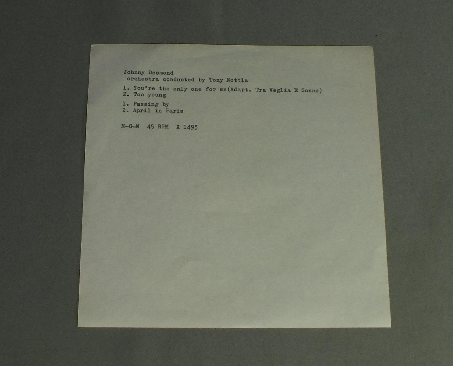 JOHNNY DESMOND/YOU`RE THE ONLY ONE FOR ME X1495 製造国:米国盤 / Media:7inch盤の状態:EX 価格(税込):¥550 送料 7inch:定形外郵便 360円~LP:定形外郵便 660円~送料は、注文の最終画面で確認頂けます。 > > JOHNNY DESMOND/YOU`RE THE ONLY ONE FOR ME 盤の状態 (EX)特記事項:薄いスリキズ・スレ軽くある感じ。軽微なものの様子です。盤EXの共通説明:盤面のスリキズが薄いものが少し~軽度 音に出そうなものは無いように見える(軽微なソフトティック音は除く)。 Tweet それぞれの画像をクリックすると、大きい写真が見られます こちらの商品もお勧めです 880円 MARIO LANZA / LANZA SINGS CARUSO 770円 SWINGLE SINGERS / GOING BAROQUE SWINGING HITS OF HANDEL 660円 JOAN MORRIS WILLIAM BOLCOMジョーン・モリス- ウィリアム・ボルコム / AFTER THE BALL- A TREASURY OF TURN OF THE CENTURY POPULAR SONGS舞踏会のあとで アメリカン・ヒット・ソングの黎明期 3,850円 LUANN SIMMS / AT SEPARATE TABLES (AUTOGRAPHED)AT SEPARATE TABLES サイン付 990円 CARMAN MCRAE / ALFIE 990円 LES BROWN AND HIS ORCHESTRA WITH DORIS DAY / SENTIMENTAL JOURNEY 550円 JEANETTE MacDONALD & NELSON EDDY / SAME TITLE 770円 LARRY CARR / SINGS VERSE & CHORUS
