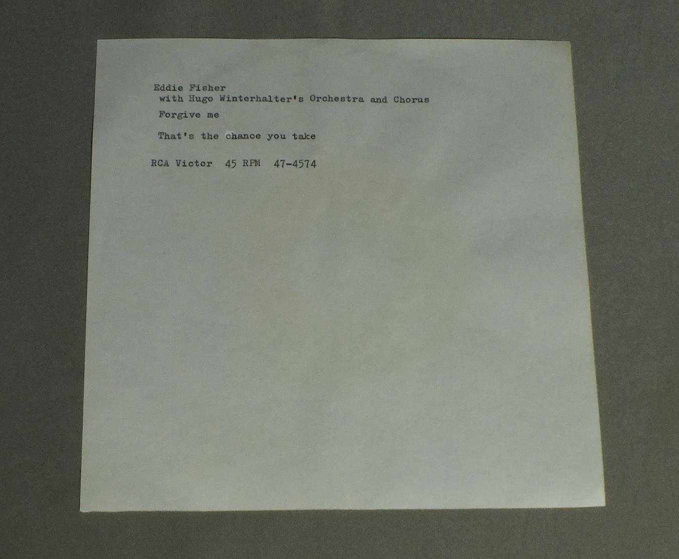 EDDIE FISHER/FORGIVE ME 47 4574 製造国:米国盤 / Media:7inch盤の状態:VG 価格(税込):¥550 送料 7inch:定形外郵便 360円~LP:定形外郵便 660円~送料は、注文の最終画面で確認頂けます。 レコード検索 > J-POP > EDDIE FISHER/FORGIVE ME 盤の状態 (VG)特記事項:スリキズ、スレ多め。プチ出そうなものも多少有り。盤VGの共通説明:盤面にスリキズがやや有り、音に出そうなものも所々有る。 その他:レーベルに破れやテープ跡。 Tweet それぞれの画像をクリックすると、大きい写真が見られます こちらの商品もお勧めです 1,210円 BILLY ECKSTINE / SWINGING MR.B 770円 ROSEMARY CLOONEY / MIXED EMOTIONS 3,850円 LUANN SIMMS / AT SEPARATE TABLES (AUTOGRAPHED)AT SEPARATE TABLES サイン付 990円 LES BROWN AND HIS ORCHESTRA WITH DORIS DAY / SENTIMENTAL JOURNEY 550円 BING CROSBY / EARLY BING CROSBY PLUS THE BING CROSBY SHOW 770円 LARRY CARR / SINGS VERSE & CHORUS 1,650円 JULIE WILSON / SINGS KURT WEILL SONGBOOK 550円 POINTER SISTERS / CONTACT