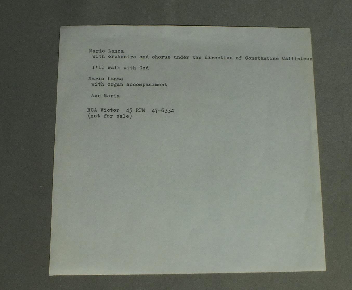 MARIO LANZA/I`LL WALK WITH GOD 47 6334 製造国:米国盤 / Media:7inch盤の状態:VG 価格(税込):¥550 送料 7inch:定形外郵便 360円~LP:定形外郵便 660円~送料は、注文の最終画面で確認頂けます。 レコード検索 > CLASSIC CHAMBER > MARIO LANZA/I`LL WALK WITH GOD 盤の状態 (VG)特記事項:スリキズ、スレ多め。プチ出そうなものも多少有り。盤VGの共通説明:盤面にスリキズがやや有り、音に出そうなものも所々有る。 その他:レーベルに書込み。 Tweet それぞれの画像をクリックすると、大きい写真が見られます こちらの商品もお勧めです 550円 JEANETTE MacDONALD & NELSON EDDY / FAVORITES 770円 SWINGLE SINGERS / GOING BAROQUE SWINGING HITS OF HANDEL 1,210円 BILLY ECKSTINE / SWINGING MR.B 1,650円 JULIE WILSON / SINGS KURT WEILL SONGBOOK 550円 BING CROSBY / EARLY BING CROSBY PLUS THE BING CROSBY SHOW 1,320円 BING CROSBY / BING CROSBY 440円 HELEN O`CONNELL WITH JIMMY DORSEY & HIS ORCHESTRA / BIG BAND VOCALIST HELEN O`CONNELL. VOLUME 2 770円 JOHN GARY / CATCH A RISING STAR