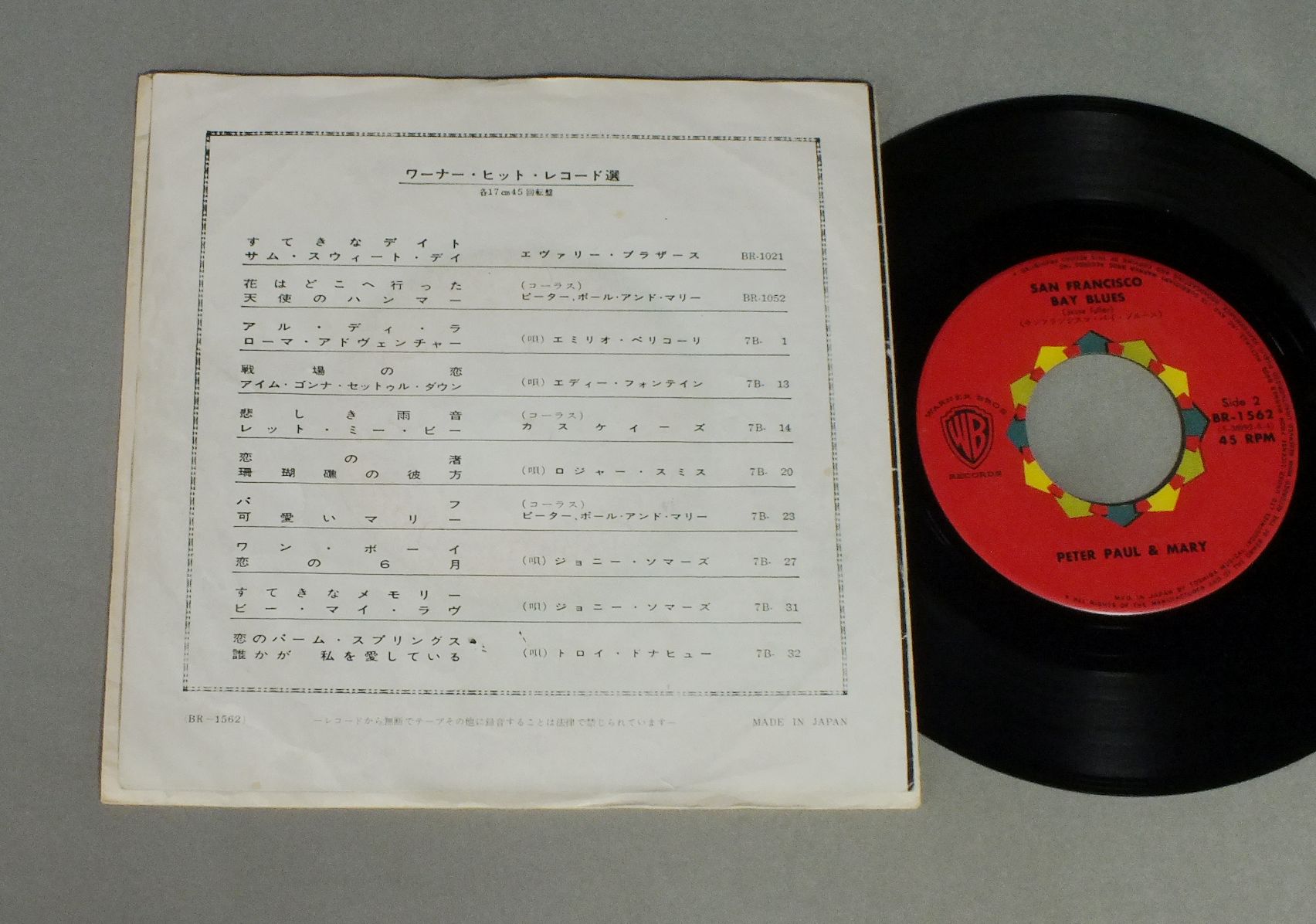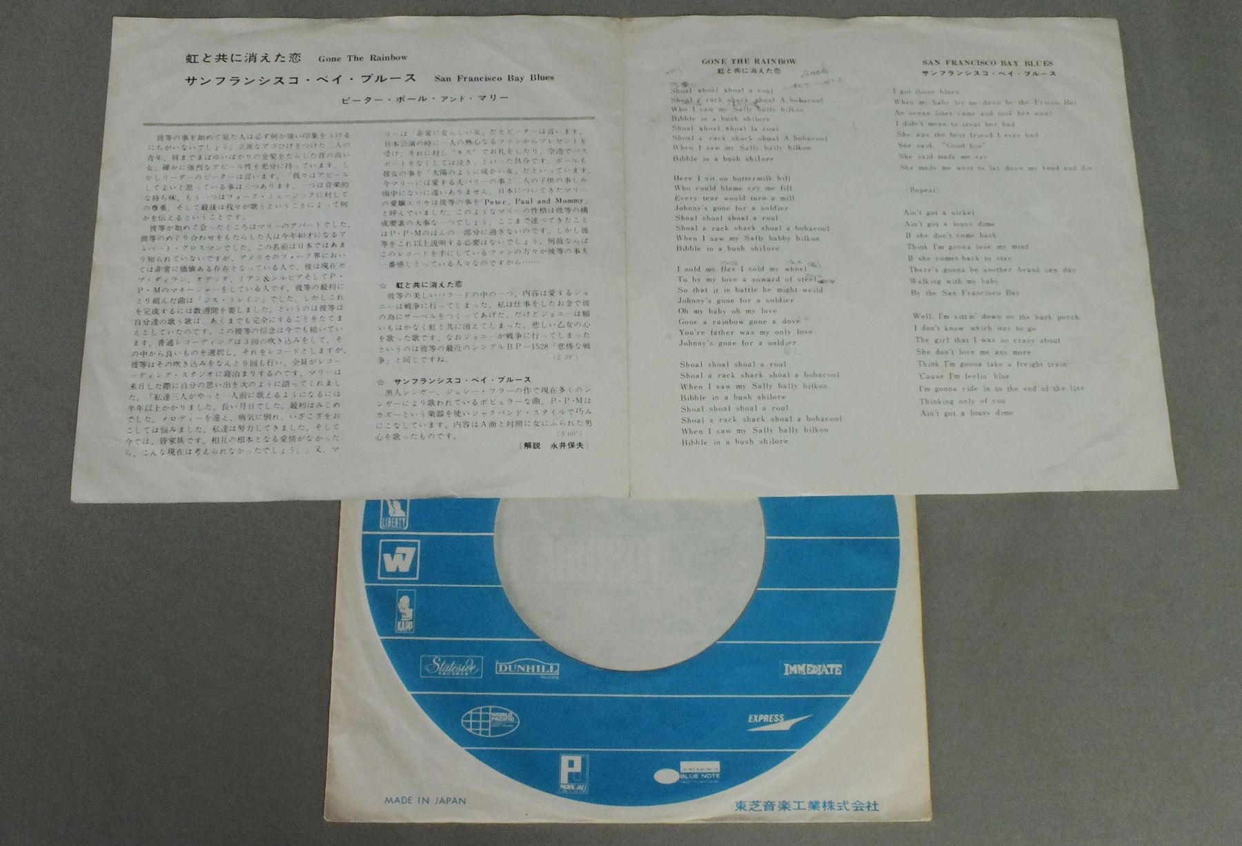 PETER PAUL & MARYピーター・ポール・アンド・マリー/GONE THE RAINBOW虹と共に消えた恋 BR1562 製造国:日本盤 / Media:7inch外観:VG+盤の状態:EX- 価格(税込):¥550 送料 7inch:定形外郵便 360円~LP:定形外郵便 660円~送料は、注文の最終画面で確認頂けます。 レコード検索 > QUEEN > PETER PAUL & MARY/GONE THE RAINBOW 外観 (VG+)特記事項:背の上下に破れ小。ヨレ有り。見開きに書込み。外観VG+の共通説明:ダメージやや有り。シミ、ヨゴレ、スレなど多少~やや多め。 盤の状態 (EX-)特記事項:プレスミスか、盤に薄いくもり有り。スクラッチ系のノイズは静かな所で有る様子。音はクリアーです。盤EX-の共通説明:盤面のスリキズが多少有り。音に出そうなものは殆ど無いように見える~さほど気にならないぐらいの軽いプチ数カ所程度。 Tweet それぞれの画像をクリックすると、大きい写真が見られます こちらの商品もお勧めです 770円 BROTHERS FOURブラザース・フォア / HONEY WIND BLOWSビッグ・フォーク・ヒッツ 第3集 770円 NITTY GRITTY DIRT BANDニッティー・グリッティー・ダート・バンド / UNCLE CHARLIE & HIS DOG TEDDYアンクル・チャーリーと愛犬テディー 1,320円 JOAN BAEZジョーン・バエズ / GULF WINDSガルフ・ウィンズ 990円 PETER PAUL & MARYピーター・ポール&マリー / IN CONCERT 660円 JOAN BAEZジョーン・バエズ / JOAN自由の女神 990円 KITTY WELLSキティ・ウェルズ / DUST ON THE BIBLEダスト・オン・ザ・バイブル 990円 BANJO BARONSバンジョー・バロンズ / IT`S A FOLK FOLK FOLK FOLK WORLDバンジョー. フォーク・ソングの世界 ペラジャケ 770円 PETER PAUL&MARYピーター・ポール&マリー / LATE AGAINレイト・アゲイン